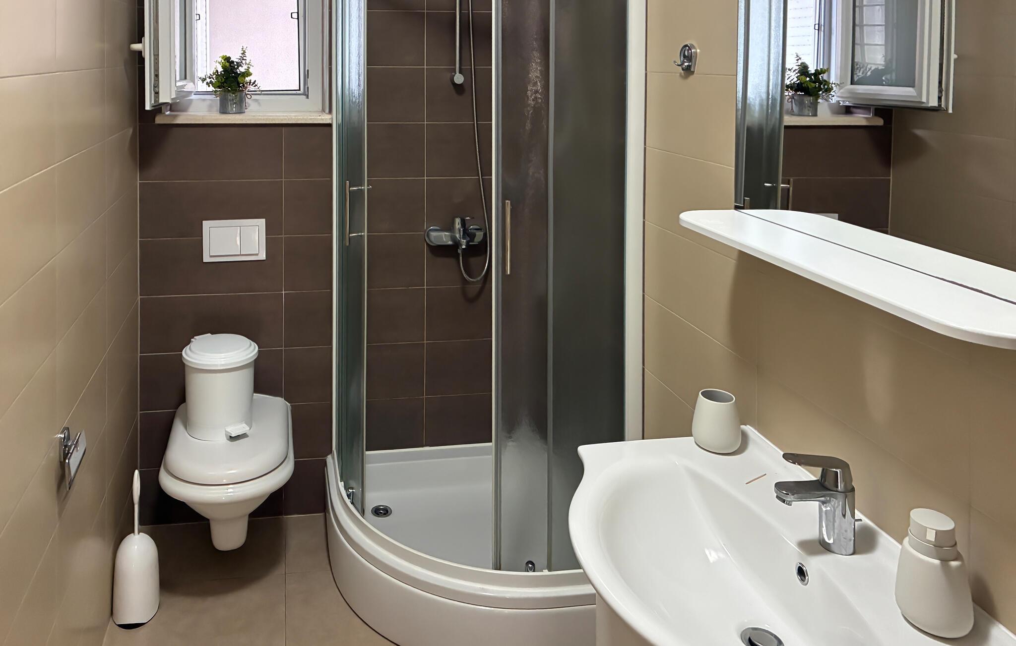 Denne lejlighed er perfekt til en afslappende ferie ved havet. I vil ikke kun nyde en vidunderlig udsigt over det blå Adriaterhav, men også alle de faciliteter, I har brug for til en ubekymret ferie. Slap af i den komfortable sofa med en kop kaffe, stream den nyeste serie eller tilbered frisk fisk og skaldyr i køkkenet.