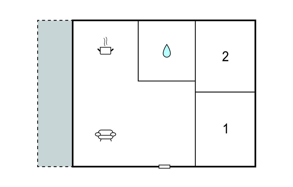 Opholdsstue/køkken 12m2 - 1 Soveplads. (Sofa, madras eller lignende).