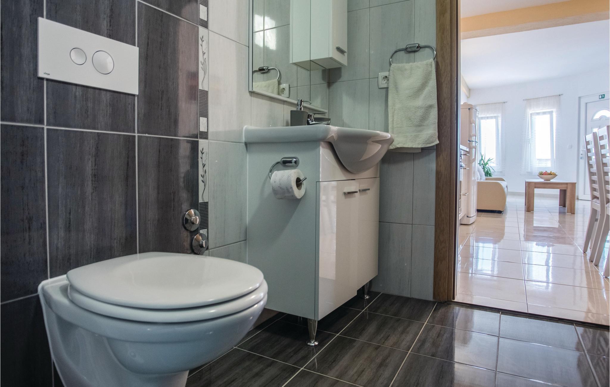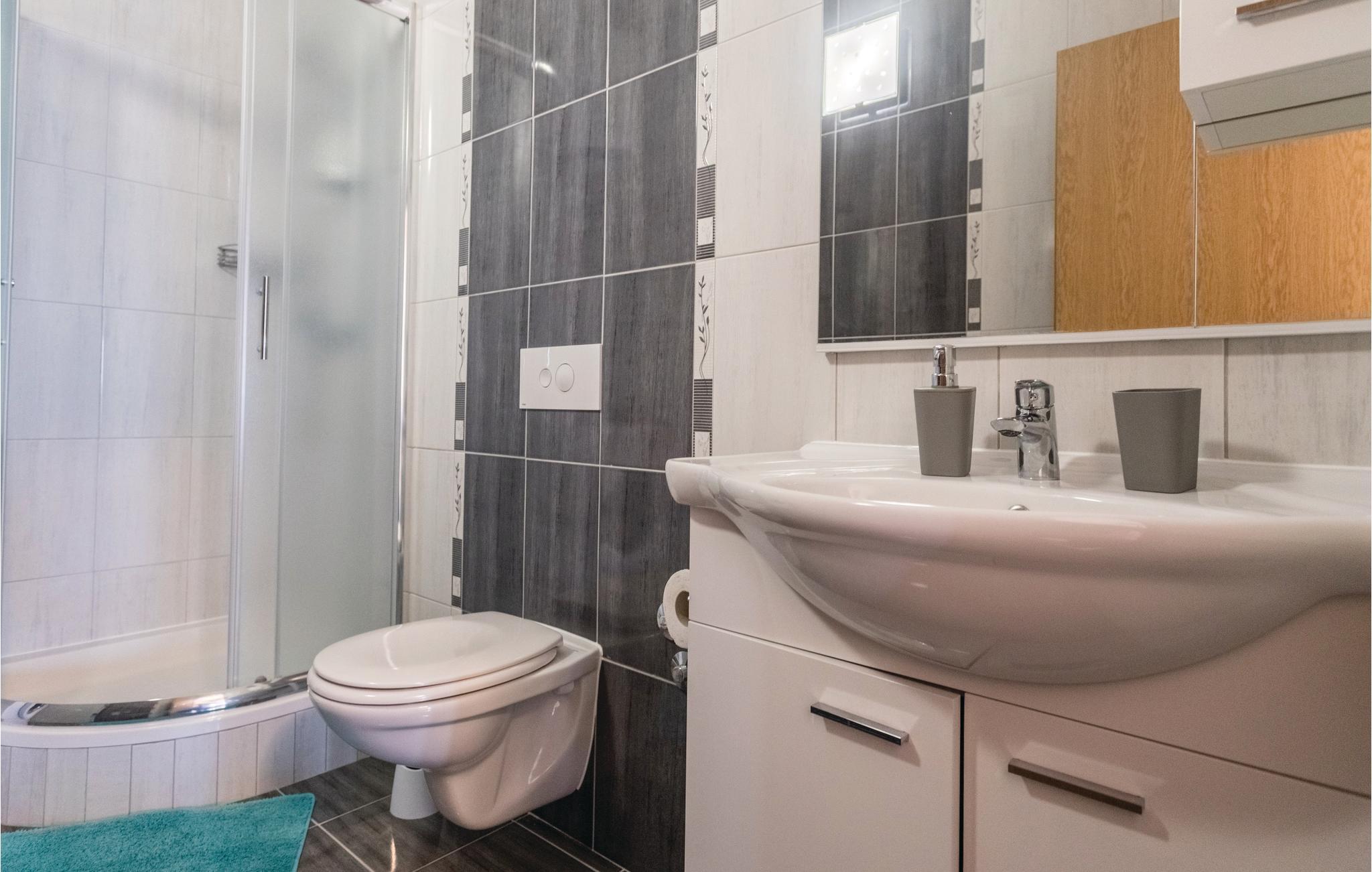 Badeværelse (nr. 1) - WC. Varmt og koldt vand. Bruser