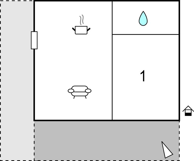 Opholdsstue/køkken 24m2 - 2 Sovepladser. (Sofa, madras eller lignende).