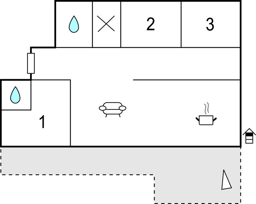 Badeværelse 4m2 (nr. 1) - WC. Varmt og koldt vand. Håndbruser