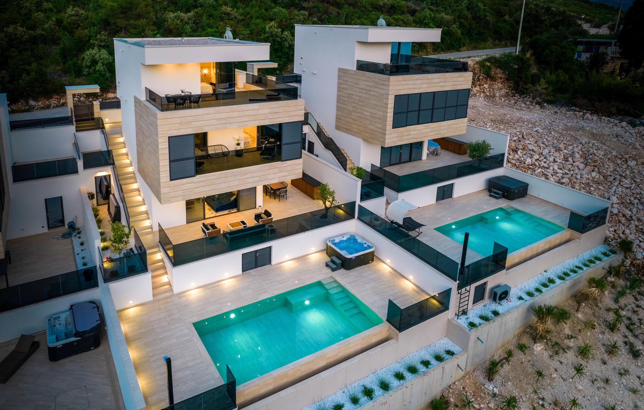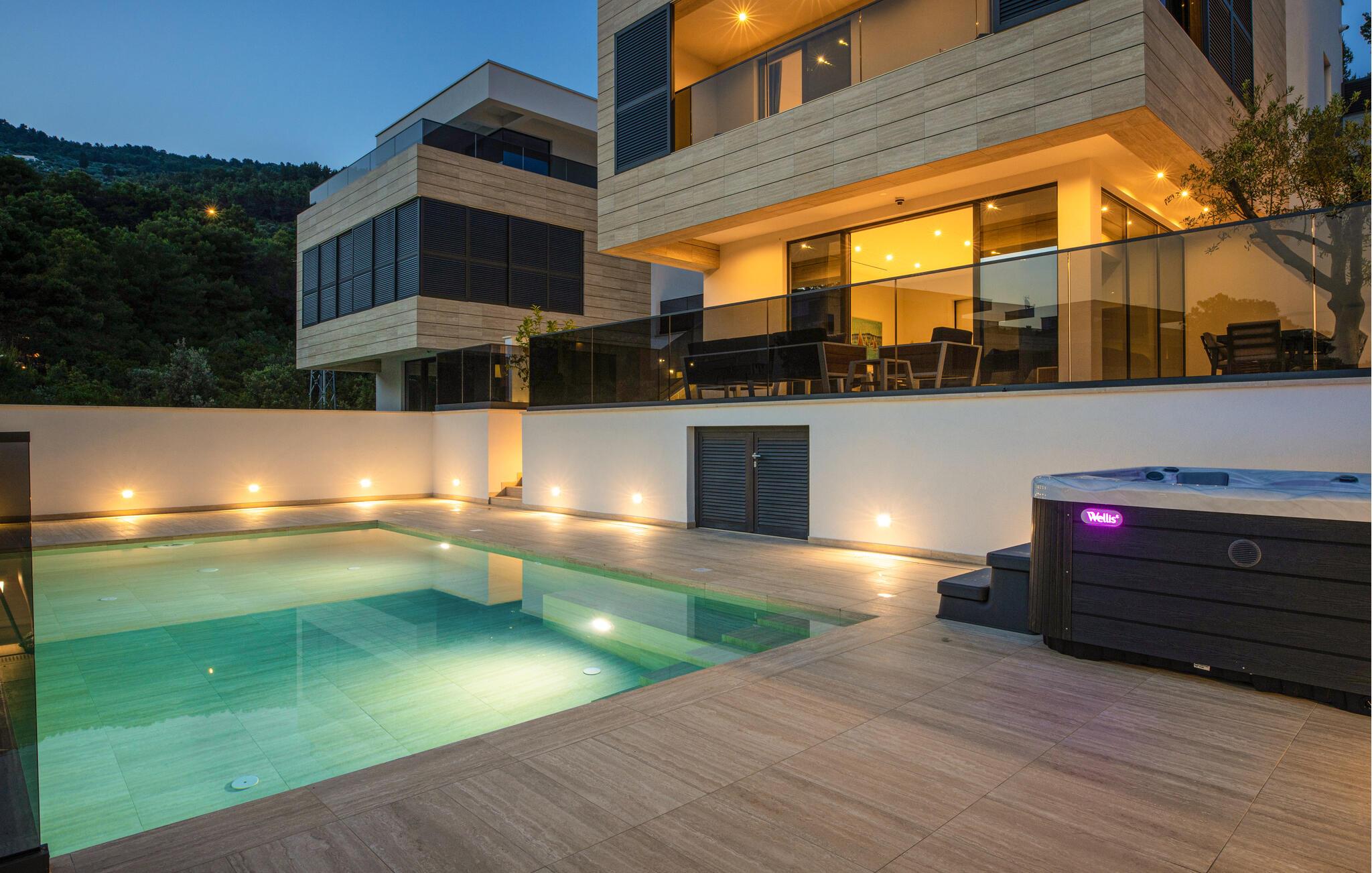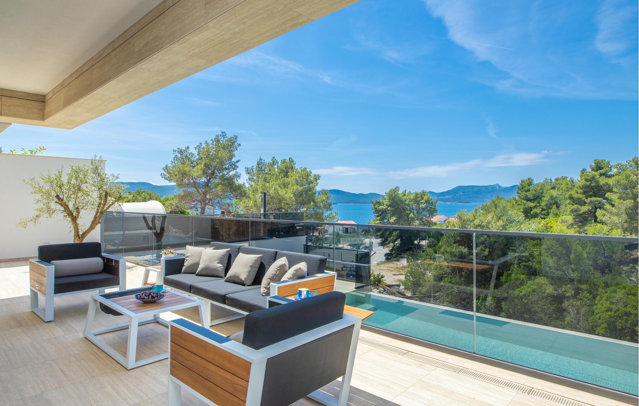 Se frem til en ferie i absolut topklasse i denne luksusvilla med pool, spabad og en vidunderlig udsigt over havet.
