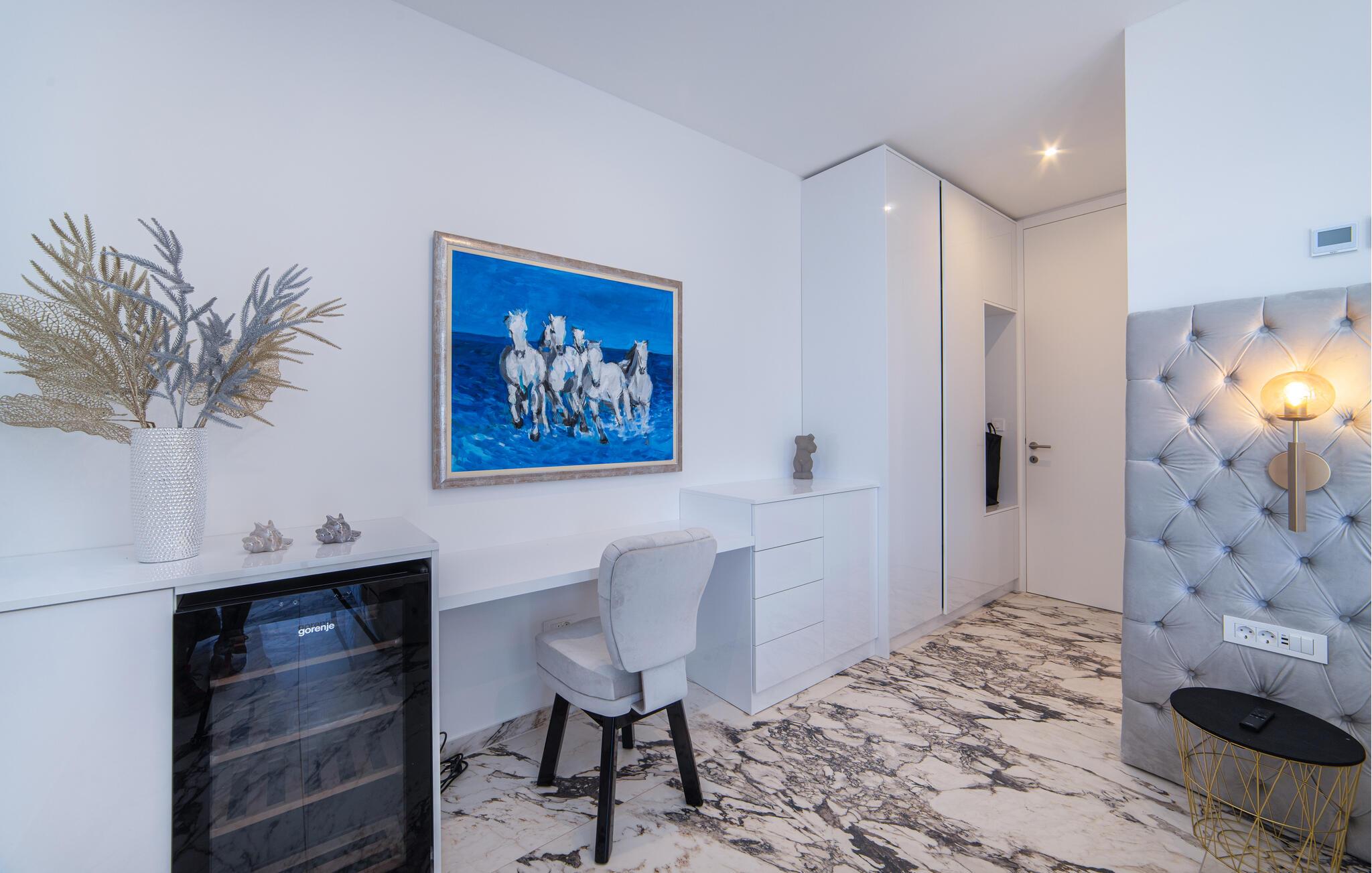 Velkommen til dette ekstravagante hus, der med sine mange kvadratmeter og endog meget komfortable faciliteter danner rammen om en absolut drømmeferie tæt på kysten. Indretningen fremtræder flot og stilsikkert over hele linjen, og måltiderne kan nydes med en fantastisk udsigt over havet, inden I trækker over i stuen med en god film på tv'et og lidt lækre snacks på siden.