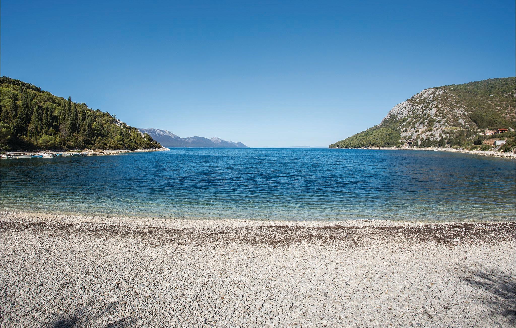 Denne moderne villa, der er bygget i den typisk dalmatiske stil, ligger i den lille by Kremena og er det rigtige valg for en afslappet ferie. Huset strækker sig over to etager, der er forbundet både med en indendørs vindeltrappe og en udendørs trappe. I stueetagen ligger opholdsområdet med køkken og spisestue samt et toilet og et badeværelse med douche. På den øverste etage ligger der tre soveværelser og et badeværelse. Den skønne, store terrasse med pool og den flotte panoramaudsigt over havet gør ferien perfekt. Ved siden af huset er der også en legeplads og en overdækket terrasse med grill. Kisel- og klippestranden når I på 5 minutter i bil. Det kan anbefales at tage dagsture til Dubrovnik og Korcula, der har et rigt kulturliv.