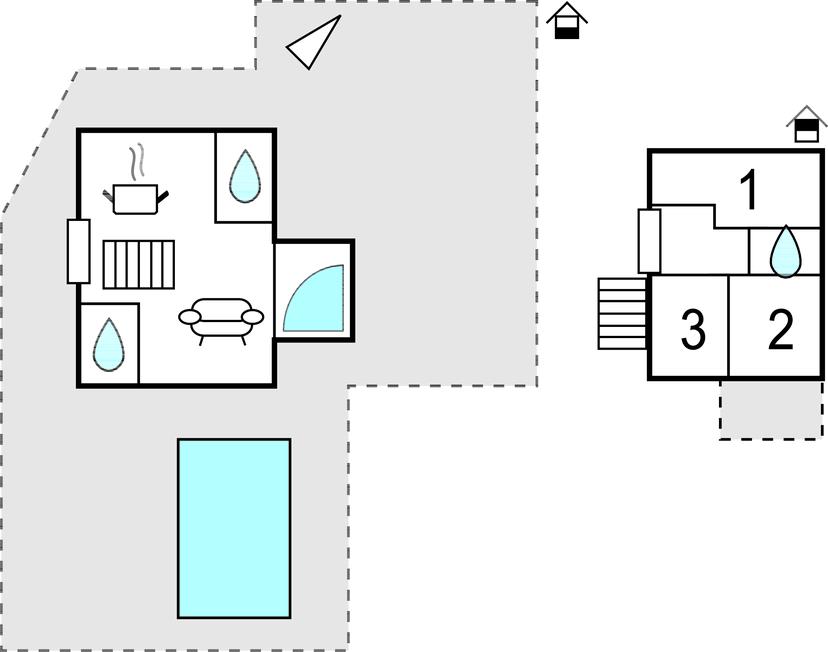 Badeværelse (nr. 1) - WC. Varmt og koldt vand. Bruser