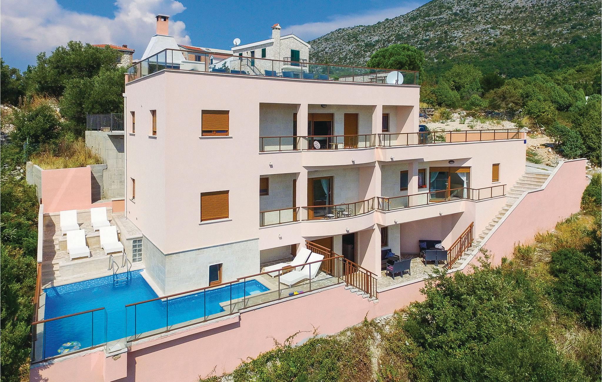 Bo i dette moderne indrettede feriehus i Kremena og nyd den herlige udsigt til havet og landskabet. Denne fremragende feriebolig ligger på en bakke og rummer tre etager med inder- og ydertrapper. Salp af i hobby- og wellnessområdet med billard og sauna i stueetagen, mens der venter fire soveværelser med badeværelser på jer på 1. sal. På 2. sal har I et generøst dagligområde med køkken, spiseområde og ekstra toilet til rådighed. Endnu et highlight af denne enestående bolig er swimmingpoolen og den overdækkede terrasse med loungemøbler og liggestole. Der er kun få minutters kørsel til den nærmeste kies- og klippestrand. Tag på udflugter til flotte og seværdige byer som Dubrovnik, Korcula, Mostar og Medjugorje.