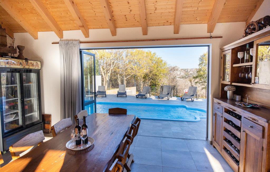 En stor del af jeres ferie kommer uden tvivl til at foregå ved poolen, som I kan plaske rundt i og sole jer ved fra liggestolene. På den delvist overdækkede terrasse kan I nyde jeres feriemåltider og et godt glas vin om aftenen til den dejlige udsigt over landskabet. Til børnenes underholdning er der gynge, legehus, rutchebane og trampolin på grunden, og hele familien kan spille basketball og fodbold. Omgivelserne indbyder til lange, afslappede gåture.