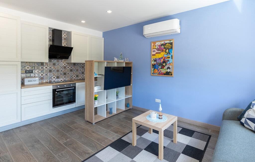Velkommen til denne attraktive lejlighed, der ligger i absolut dejlige omgivelser, og hvor I får den ideelle ramme for årets ferie med den lille familie. Indretningen fremtræder flot og stilsikkert med behagelige møbler og rare farveskalaer, der gør det nemt at slappe af med det samme, I ankommer. Køkkenet er ganske veludstyret, så tillad jer blot lidt ambitioner i madlavningen, inden I flader ud med snacks og en god film i sofaen efter en aktiv feriedag.
