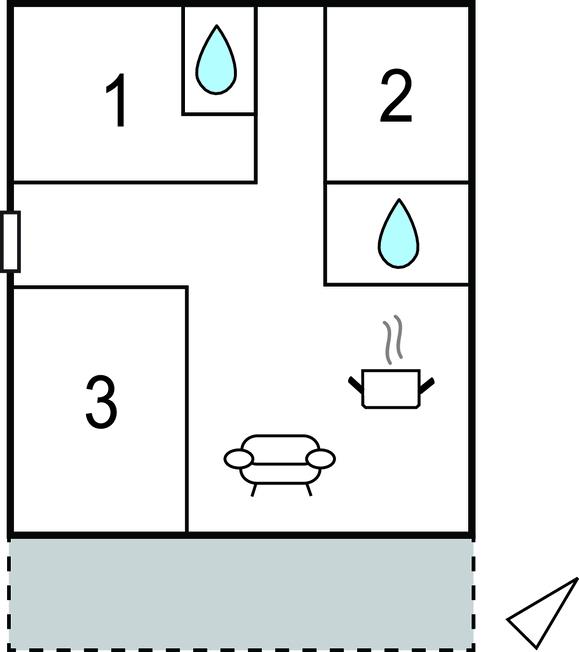 Badeværelse 4m2 (nr. 1) - WC. Varmt og koldt vand. Håndbruser