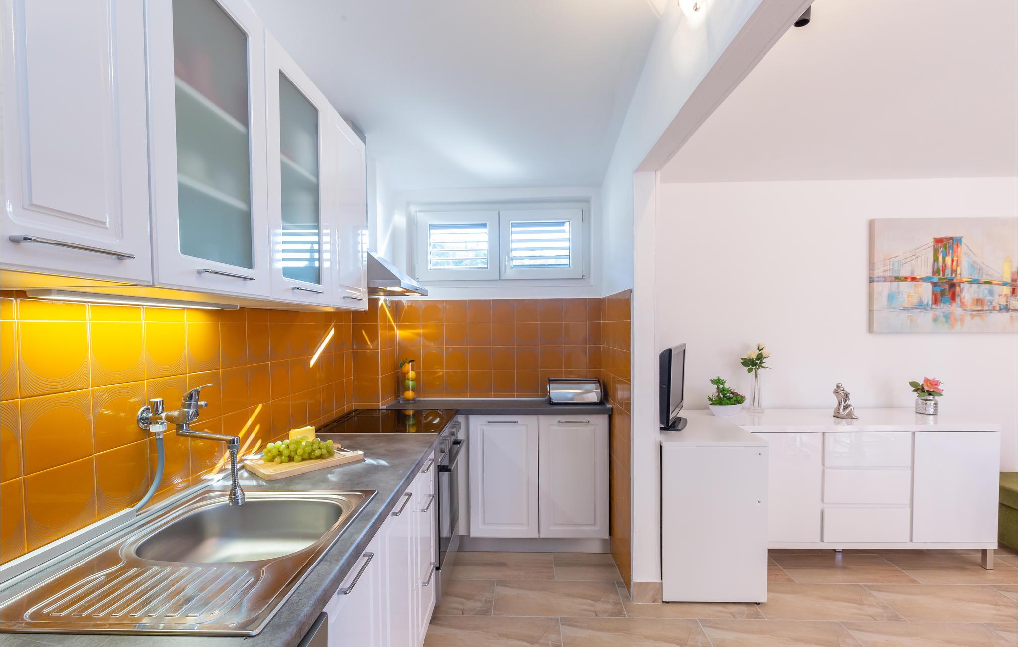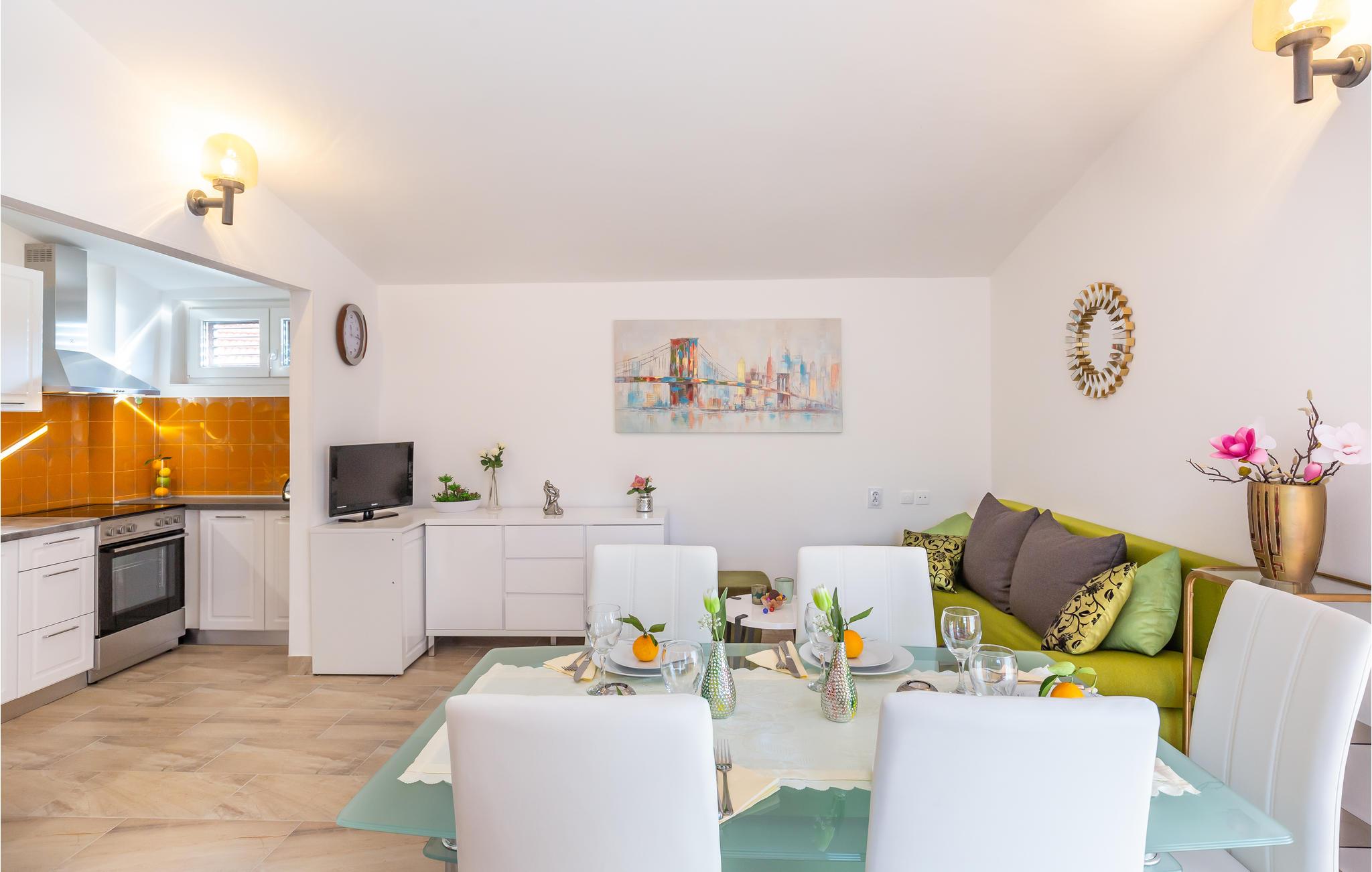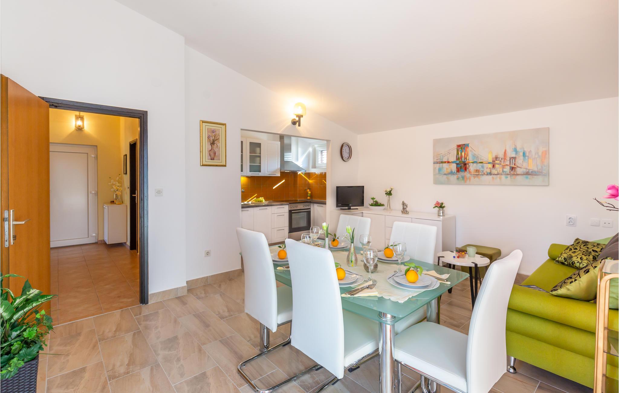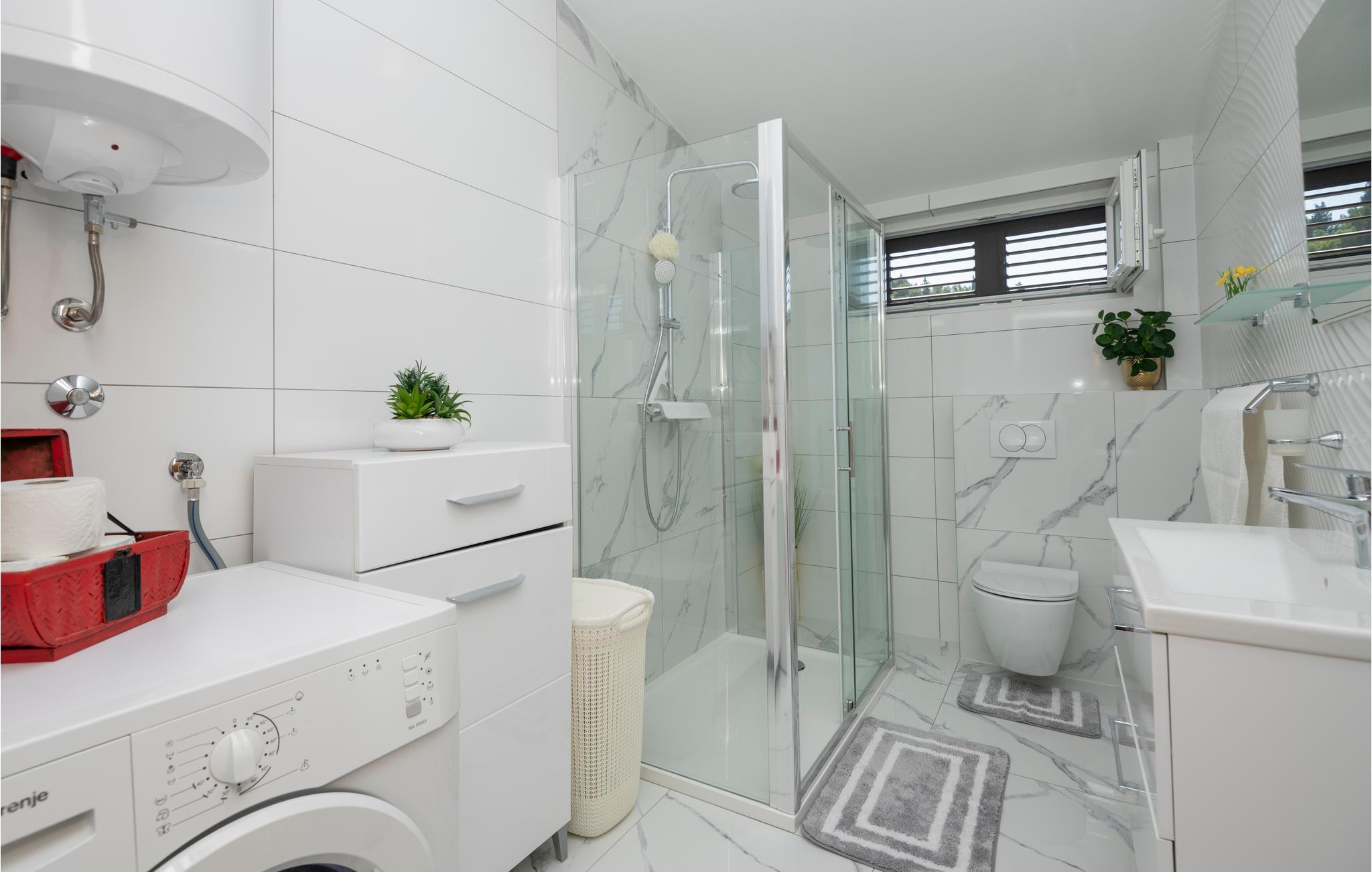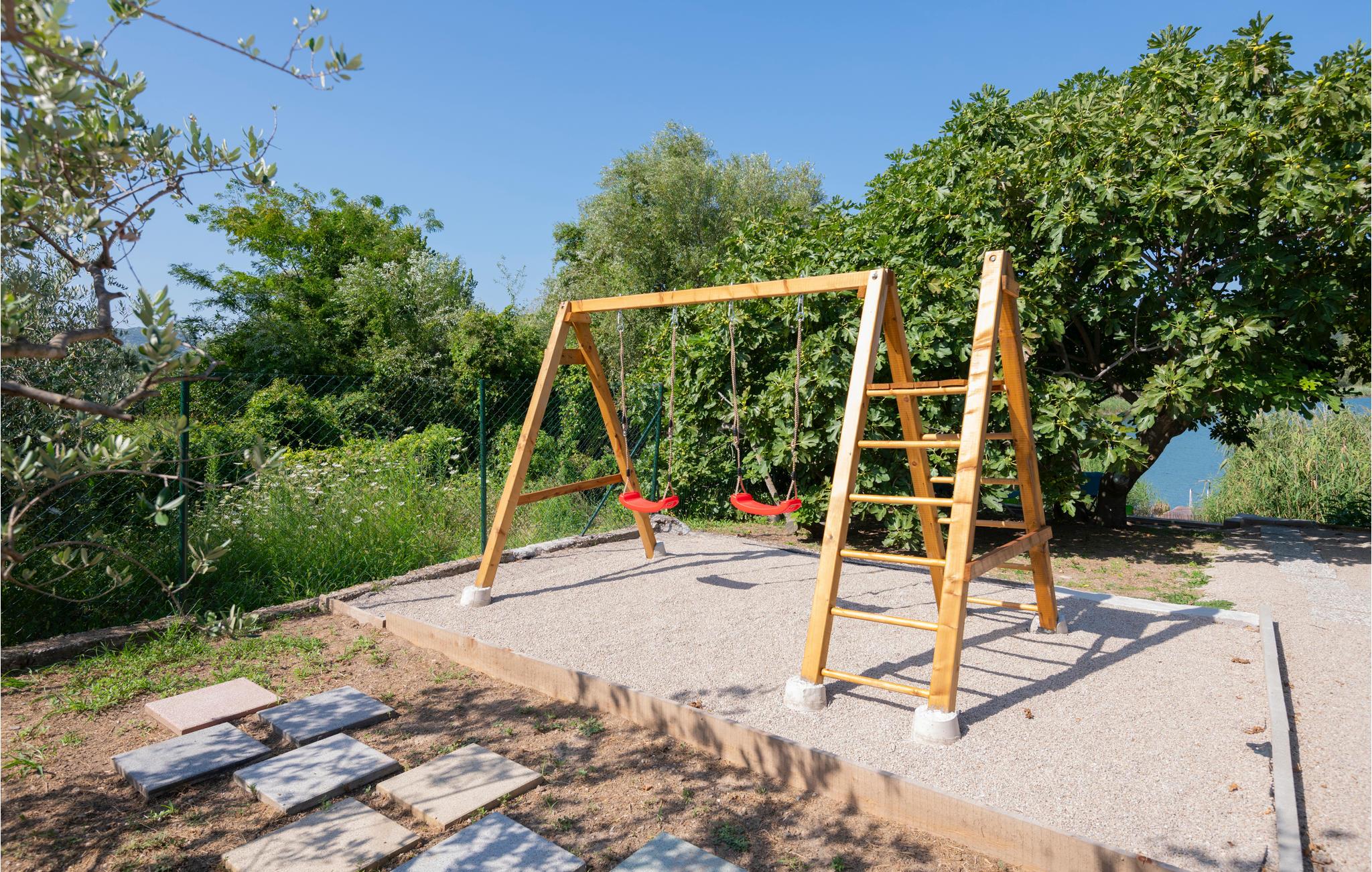 Velkommen til Istrien og denne hyggelige lejlighed, som ligger på 2. sal i en bygning, der vender lige ud til en af ??de syv Bacina-søer. Her kan I nyde alle dagens små pauser i en lys og venlig bolig med moderne faciliteter og gode rammer til at slappe af. Lejlighedens store trumfkort er terrassen, hvor I har udsigt over søen og bjergene længere ude. Over for huset er der en indhegnet grund med en stor terrasse, hvor der står et spabad, som I frit kan benytte jer af. Sæt jer til rette med en god bog i solen, mens jeres børn har det sjovt på legeredskaberne, hvis I ikke alle sammen skal ned at have en frisk dukkert i søen. Om aftenen kan I grille i haven og nyde det lune klima.