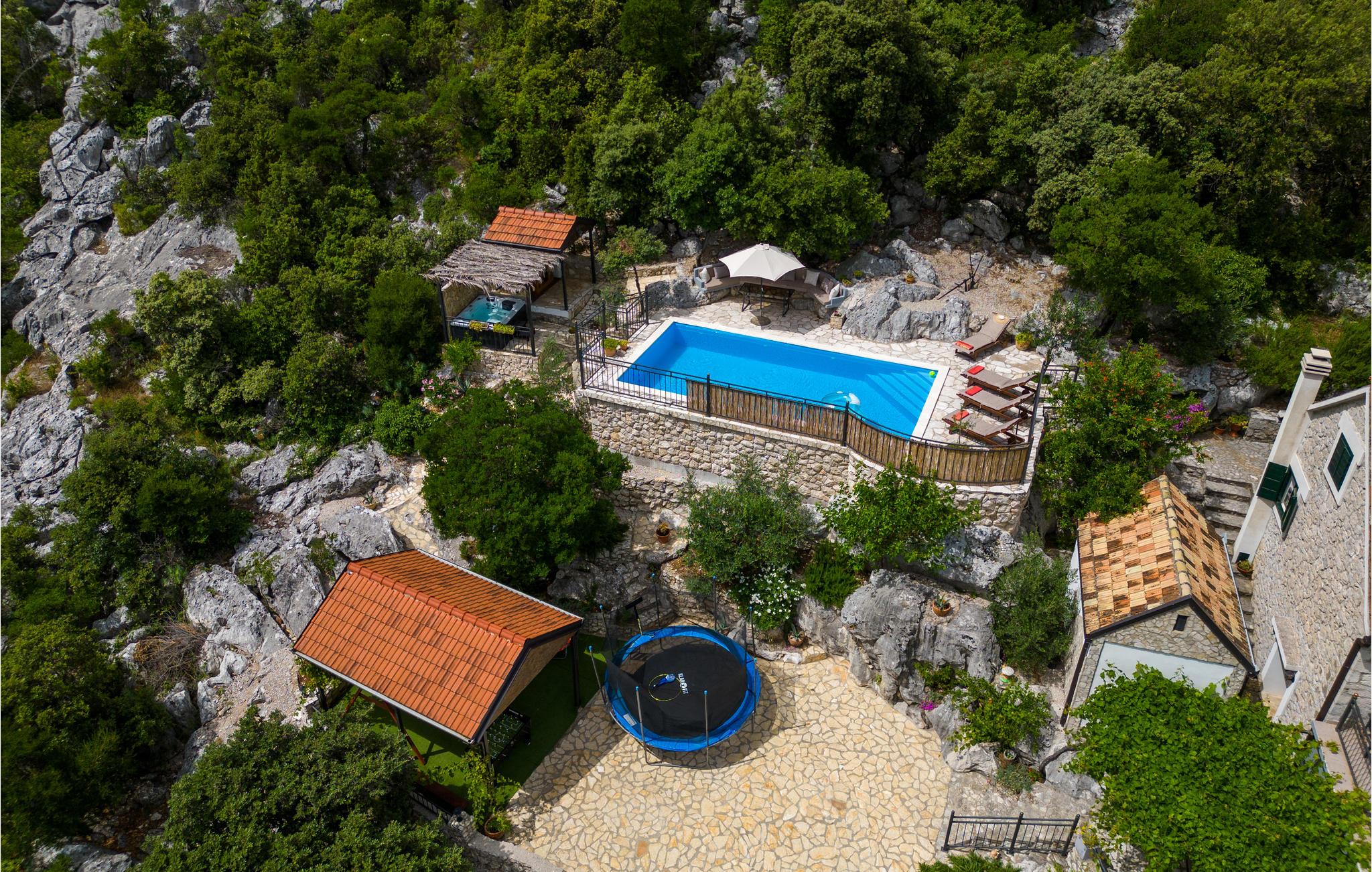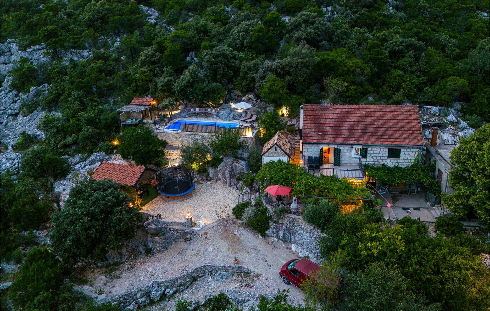 I kystbyen Ploces bagland, i den lille by Štrbici ligger dette skønne feriehus, der er helt perfekt til ferie for en lille familie, der gerne vil slappe af, langt væk fra hverdagens stress. I stueplan er der et åbent køkken mod opholdsrummet med spiseafdeling, samt et soveværelse og et toilet. Stejle trapper fører op til den åbne tagetage, hvor der er dobbeltseng, en enkeltseng og badeværelse. Udendørs er der swimmingpool med terrasse til solbad, samt en hyggelig Konoba med kamin ved siden af huset. Nyd de idylliske og grønne omgiveler, hvor der er en naturlig mangfoldighed og mange gode restauranter og spisesteder. Huset ligger som et godt udgangspunkt når I vil opleve Dubrovnik, Korcula, Mostar og Medugorje.