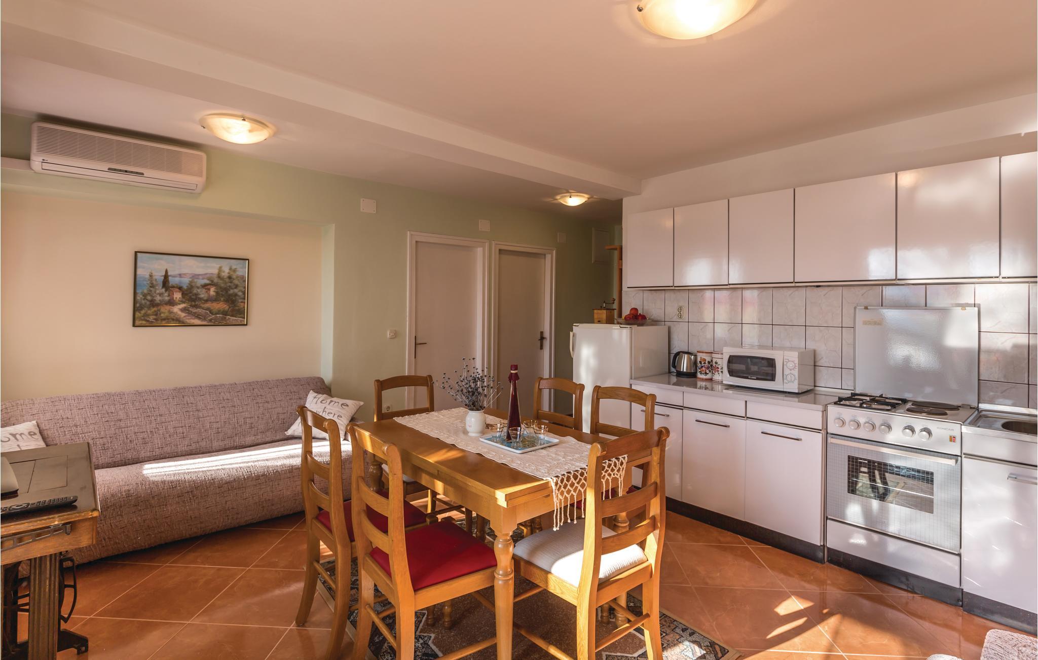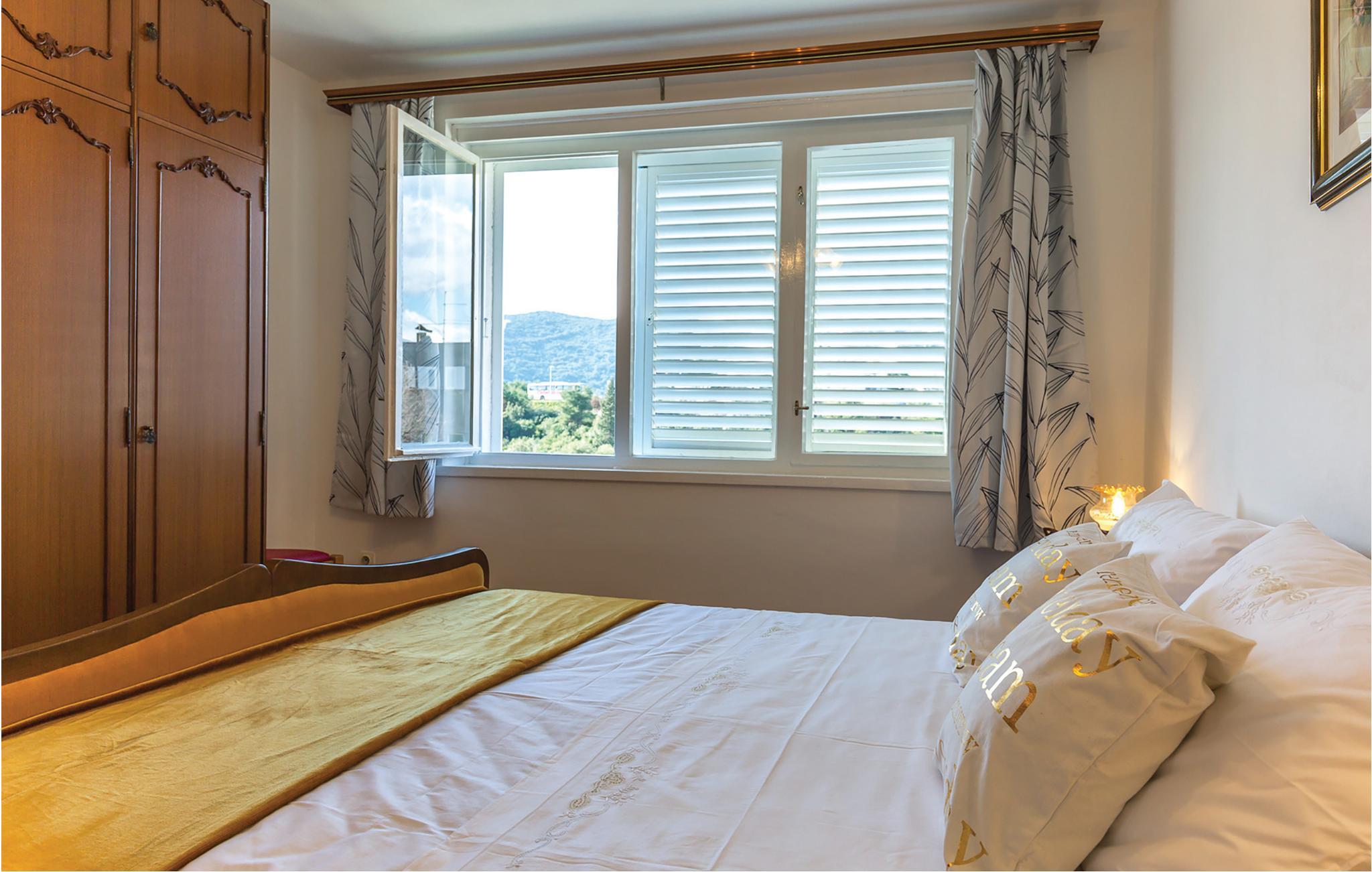 Tæt på Ploces bymidte, på anden sal i en privat ejendom, ligger denne skønne ferielejlighed. Den består af to soveværelser, et badeværelse, køkkenalrum samt en lang altan. Her kan I tilbriunge ferien i nærheden af restauranter og et rigt udvalg af underholdningsmuligheder. Den nærmeste plateaustrand ligger lige i nærheden, mens I må gå 15 min for at nå den nærmeste stenstrand. Kystbyen Ploce er en typisk dalmatisk by, der er velegnet for børnefamilier. Det kan kun anbefales at I tager på udflugter til landsbyerne langs kysten, og især den smukke middelalderby Dubrovnik.