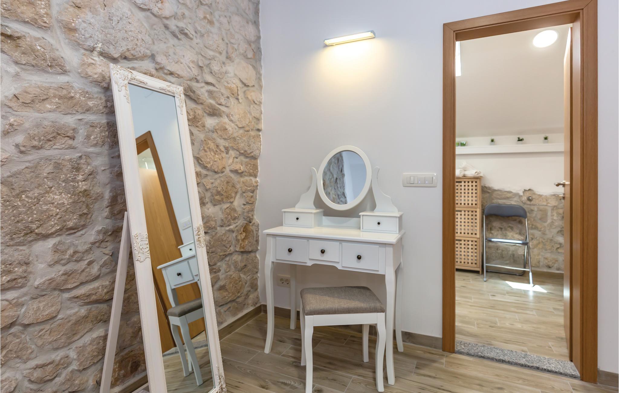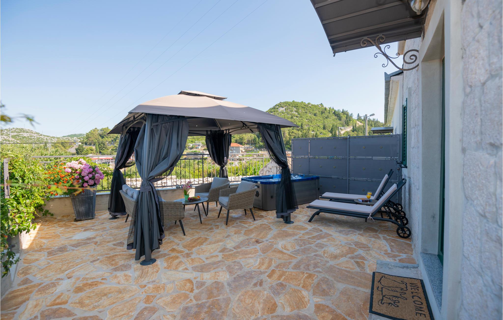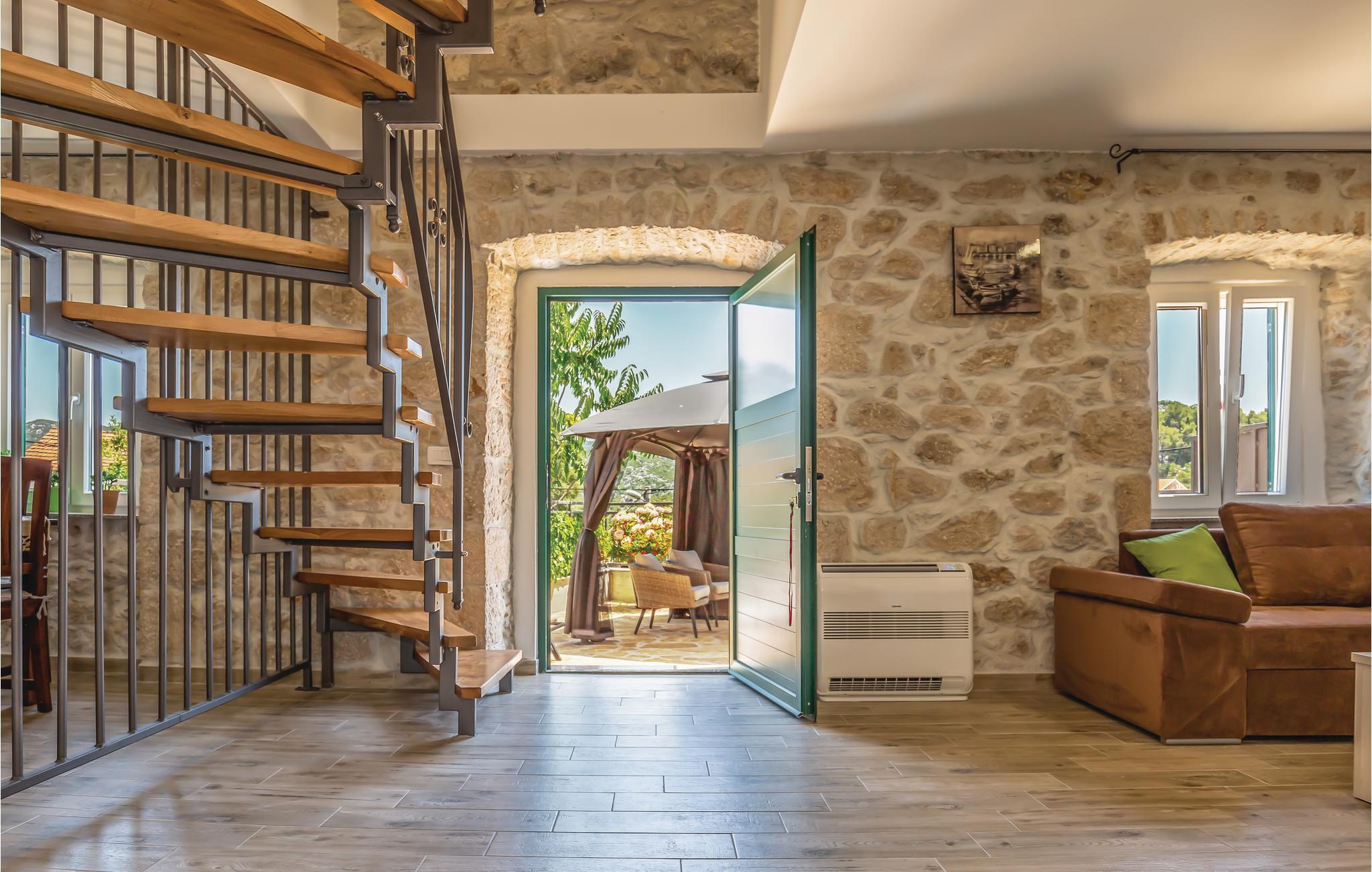 Dette feriehus af sten fra det 19. århundrede, har gennemgået en total renovering, men med bevaring af den dalmatiske byggetradition og stil. Feriehuset ligger omgivet af natur. På første sal ligger den rummelige opholds- og spisestue, køkkenet og et soveværelse og badeværelse. Øverst, med skrå vægge, er der to yderligere soveværelser, hvert med eget badeværelse. I kan glæde jer til den smukke terrasse med grill, desuden er der cykler og en båd til rådighed, til ture ud på det nærliggende hav. Feriehuset er smukt og stilrent indrettet, moderne, men så I tydeligt mærker boligens lange historie. Slap af i whrilpoolen og lad de ømme muskler massere af tusinder af blide bobler.