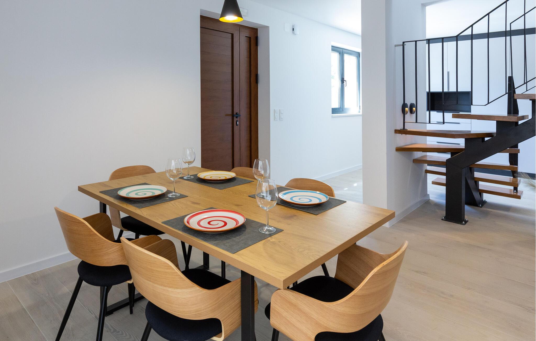 Velkommen til dette skønne hus, der ligger tæt på Ploce og danner rammen om en vaskeægte drømmeferie med familien. Omgivelserne er grønne og fredelige, udsigten er vidunderlig og indvendigt fremtræder huset flot og moderne over flere etager med gode møbler og alle de faciliteter, I behøver for at kunne slappe af med det samme, I ankommer. Kræs om livretterne i det veludstyrede køkken, lad hyggen udfolde sig med en god film i stuen og nyd jeres nattesøvn i de komfortable soveværelser.