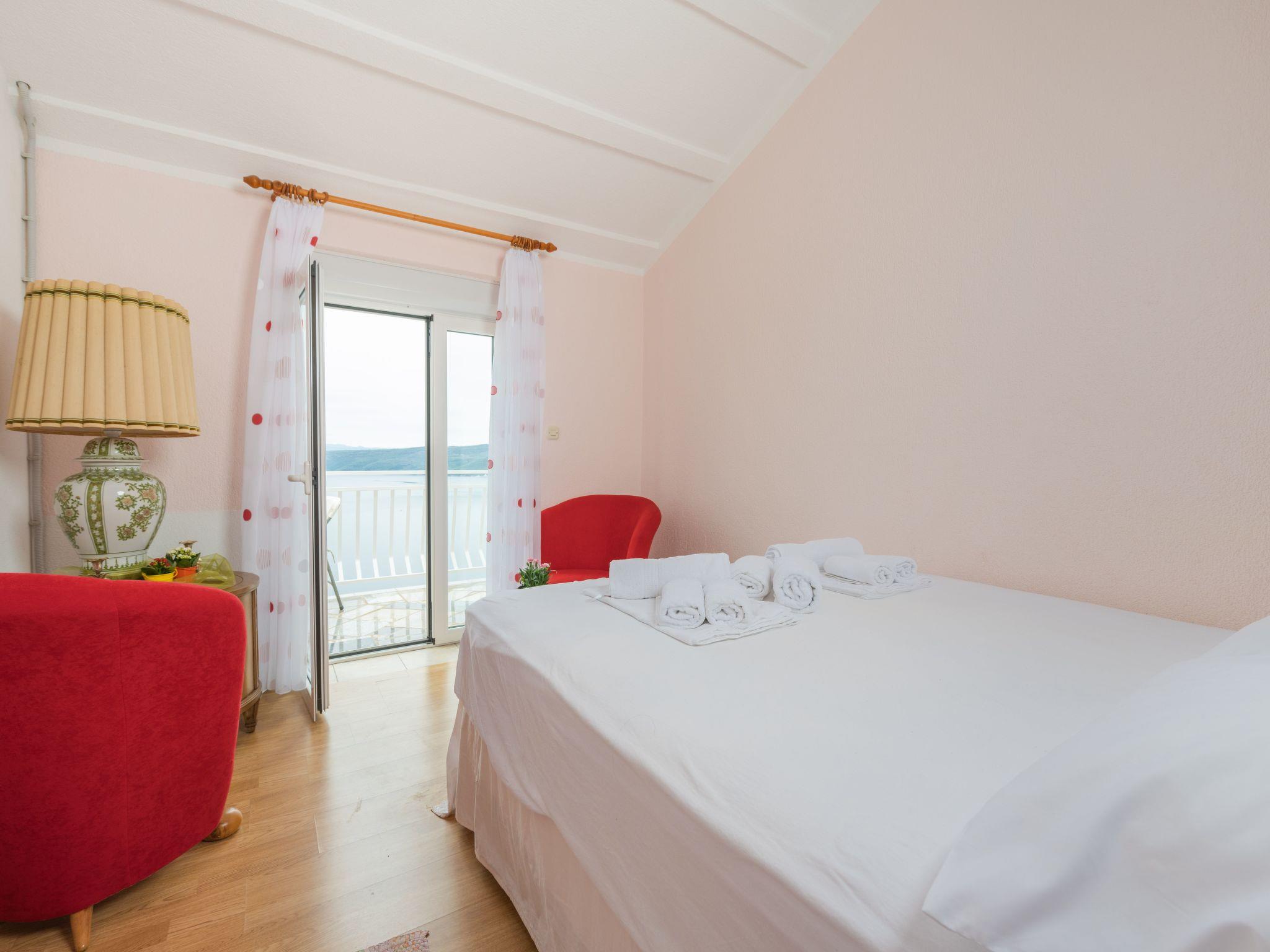 The upper floor has a bedroom with a double bed, a bathroom, a kitchen and a living area with a terrace and a fantastic sea view. On the lower floor there is also a bedroom with a double bed, a bathroom, a kitchen, a living area and a terrace with sea views.