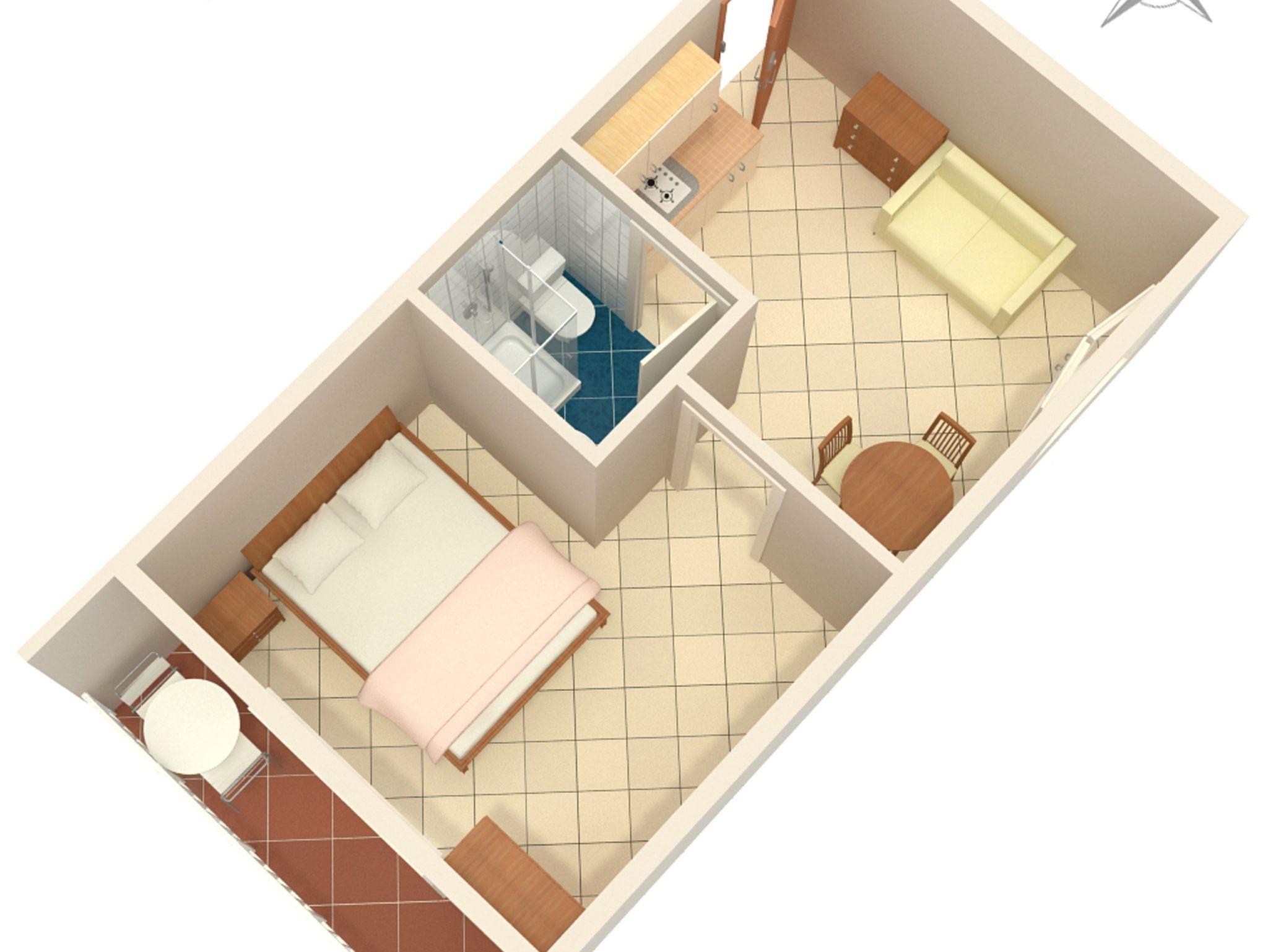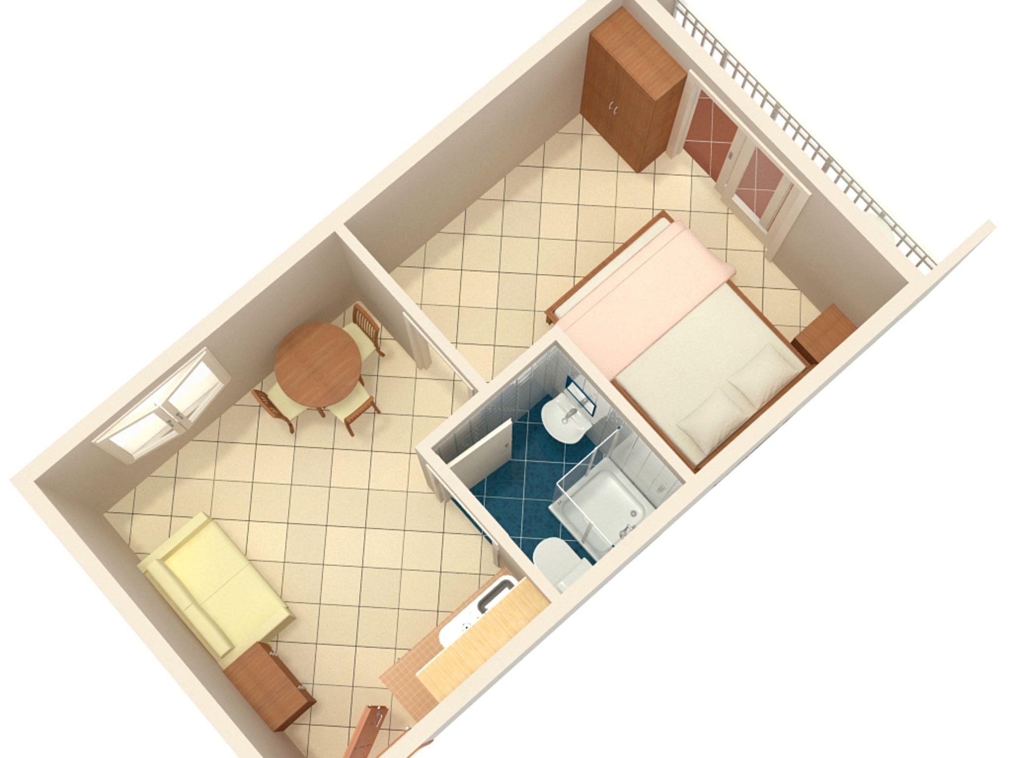 Studio bietet Platz für 4 Gäste. Die Betten sind in Schlafzimmern, die es 1 gibt, und in Esszimmer, innerhalb einer Gesamtfläche von 27m2, angeordnet. Die Gäste haben einen eigenen Balkon zur Verfügung, auf der sie in warmen Sommernächten genießen können. Das Studio-Apartment bietet Meerblick. Es ist erlaubt, Speisen auf dem Gemeinschafts-Grill vorzubereiten. IM PREIS INBEGRIFFEN: Kurtaxe, Endreinigung, Klimatisierung, Parkplatz, Internet, Kinderbett, tragbarer Grill. VERBINDLICHE ZUSÄTZLICHE KOSTEN: Aufzahlung für Kurzaufenthalte (prozentualer Zuschlag pro Nächtigungsanzahl: 30% - 1, 20% - 2, 10% - 3). UNVERBINDLICHE ZUSÄTZLICHE KOSTEN: Wäschewaschen (5,00 € Waschen). Die Verfügbarkeit zusätzlicher Dienstleistungen in Ihrem reservierten Termin und die Preise derselben (falls nicht aufgeführt) müssen im Voraus überprüft werden. Zusätzliche Dienstleistungen die in der Zahlungsaufforderung nicht aufgeführt sind werden direkt beim Vermieter bezahlt, angenommen der Gast nutzt auch diese. Ermäßigung auf den Grundpreis: Gratistag 21=19 (bei einem Aufenthalt von 21 Tagen oder mehr erhalten Sie 2 Gratistage für den Aufenthalt bis 31.12.26).
