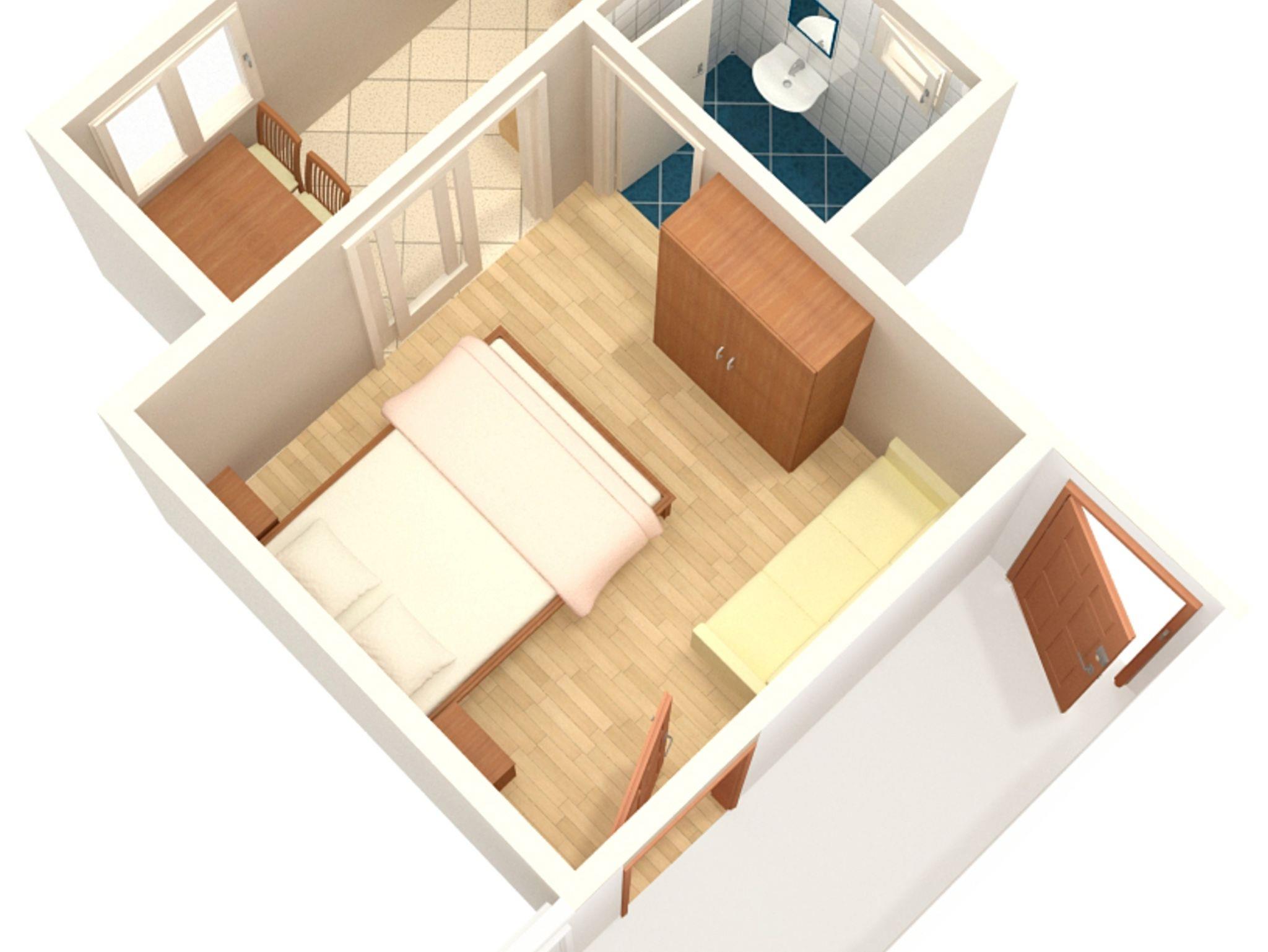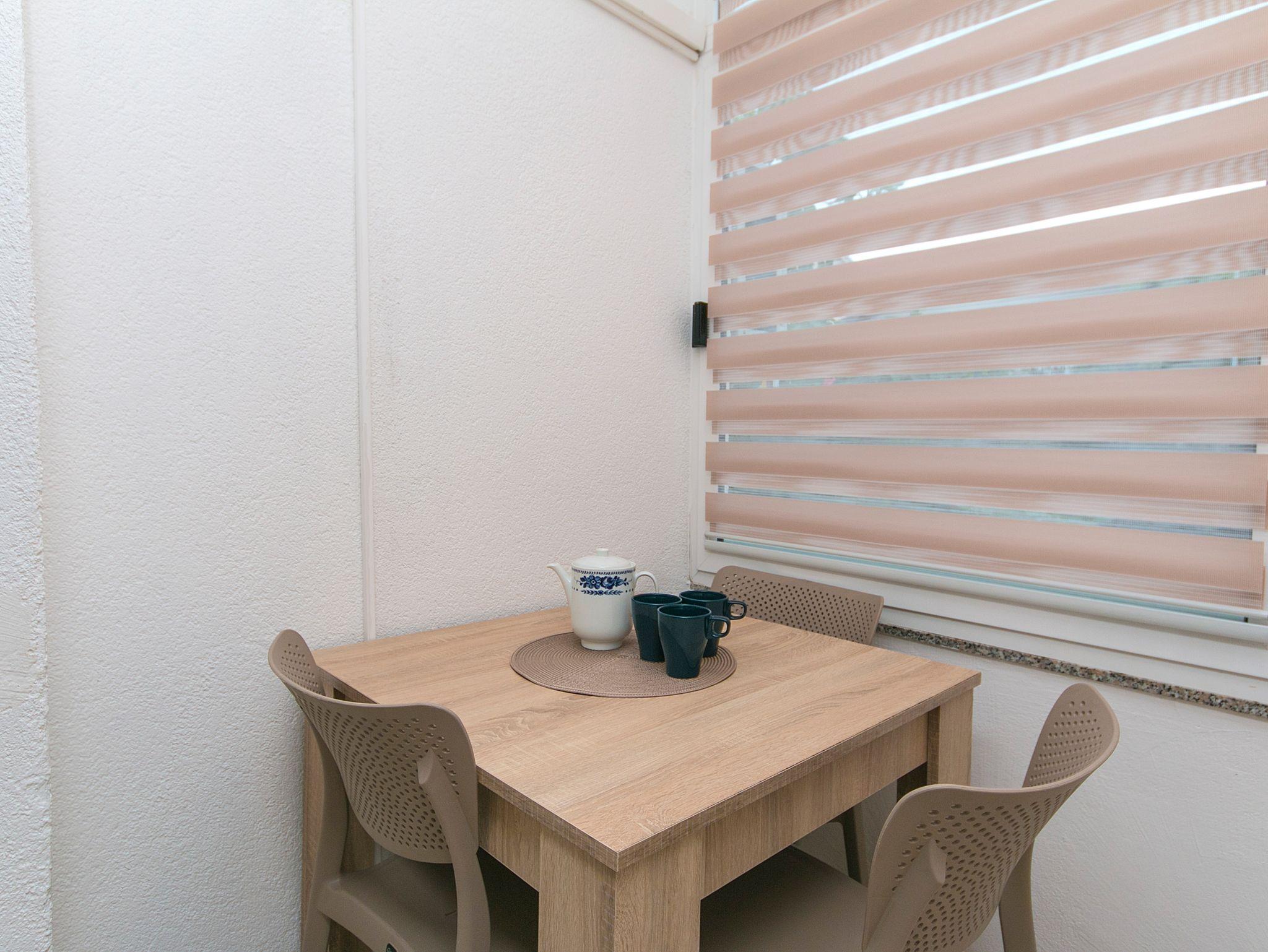 Studio bietet Platz für 3 Gäste. Die Betten sind in Schlafzimmern, die es 1 gibt, innerhalb einer Gesamtfläche von 19m2, angeordnet. Es ist erlaubt, Speisen auf dem Gemeinschafts-Grill vorzubereiten. Die reservierte Unterkunftseinheit hat keinen Balkon und keine Terrasse. IM PREIS INBEGRIFFEN: Kurtaxe, Endreinigung, Klimatisierung, Parkplatz, Internet, Bügeleisen, Bügelbrett, Föhn, tragbarer Grill. VERBINDLICHE ZUSÄTZLICHE KOSTEN: Aufzahlung für Kurzaufenthalte (prozentualer Zuschlag pro Nächtigungsanzahl: 30% - 1, 20% - 2, 10% - 3). UNVERBINDLICHE ZUSÄTZLICHE KOSTEN: Wäschewaschen (7,00 € Waschen), Zusatzbett (6,00 € pro Nacht). Die Verfügbarkeit zusätzlicher Dienstleistungen in Ihrem reservierten Termin und die Preise derselben (falls nicht aufgeführt) müssen im Voraus überprüft werden. Zusätzliche Dienstleistungen die in der Zahlungsaufforderung nicht aufgeführt sind werden direkt beim Vermieter bezahlt, angenommen der Gast nutzt auch diese. Ermäßigung auf den Grundpreis: Gratistag 28=25 (bei einem Aufenthalt von 28 oder mehr Tagen erhalten Sie 3 kostenlose Tage für den Aufenthalt bis 31.12.26).