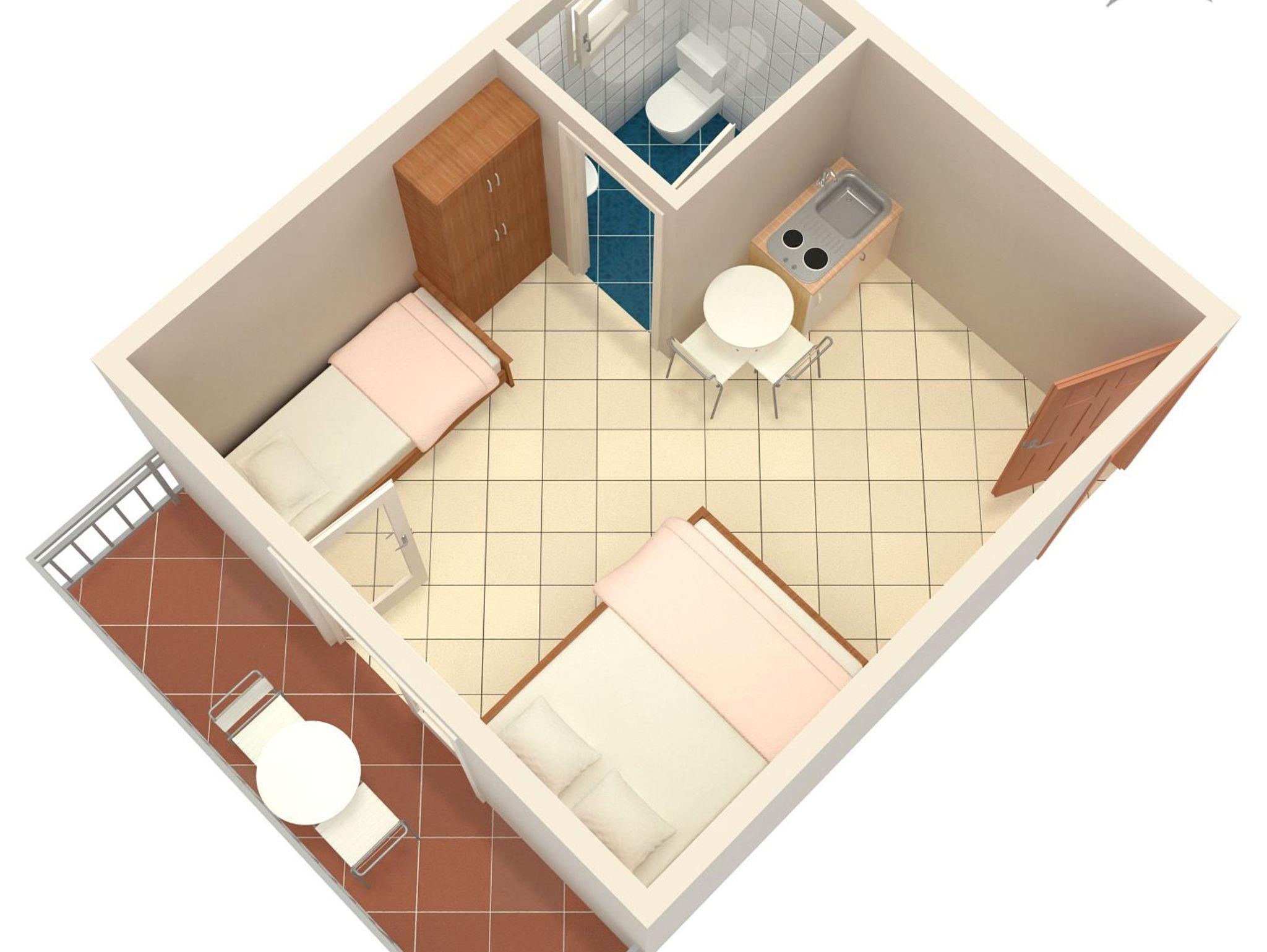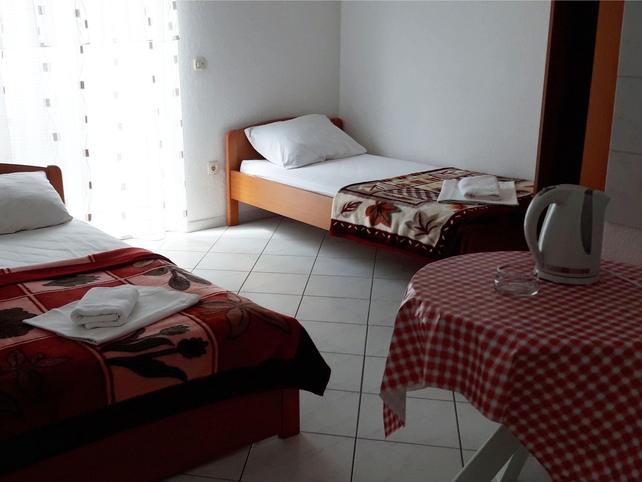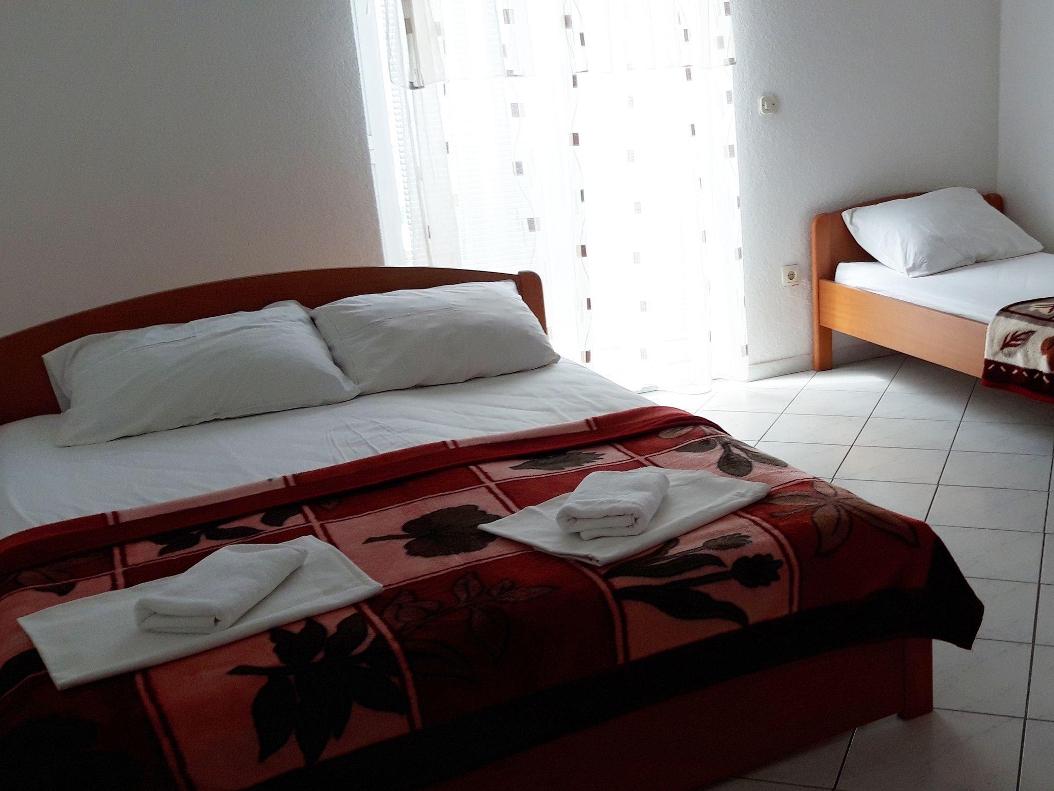 Studio bietet Platz für 3 Gäste. Die Betten sind in Schlafzimmern, die es 1 gibt, innerhalb einer Gesamtfläche von 20m2, angeordnet. Die Gäste haben einen eigenen Balkon zur Verfügung, auf der sie in warmen Sommernächten genießen können. Das Studio-Apartment bietet Meerblick. IM PREIS INBEGRIFFEN: Kurtaxe, Endreinigung, Klimatisierung, Parkplatz, Internet, Bügeleisen, Bügelbrett, Föhn. VERBINDLICHE ZUSÄTZLICHE KOSTEN: Aufzahlung für Kurzaufenthalte (prozentualer Zuschlag pro Nächtigungsanzahl: 30% - 1, 20% - 2, 10% - 3). Die Verfügbarkeit zusätzlicher Dienstleistungen in Ihrem reservierten Termin und die Preise derselben (falls nicht aufgeführt) müssen im Voraus überprüft werden. Zusätzliche Dienstleistungen die in der Zahlungsaufforderung nicht aufgeführt sind werden direkt beim Vermieter bezahlt, angenommen der Gast nutzt auch diese. Ermäßigung auf den Grundpreis: Gratistag 14=13 (bei einem Aufenthalt von 14 Tagen oder mehr erhalten Sie einen Gratistag für den Aufenthalt bis 31.12.26).