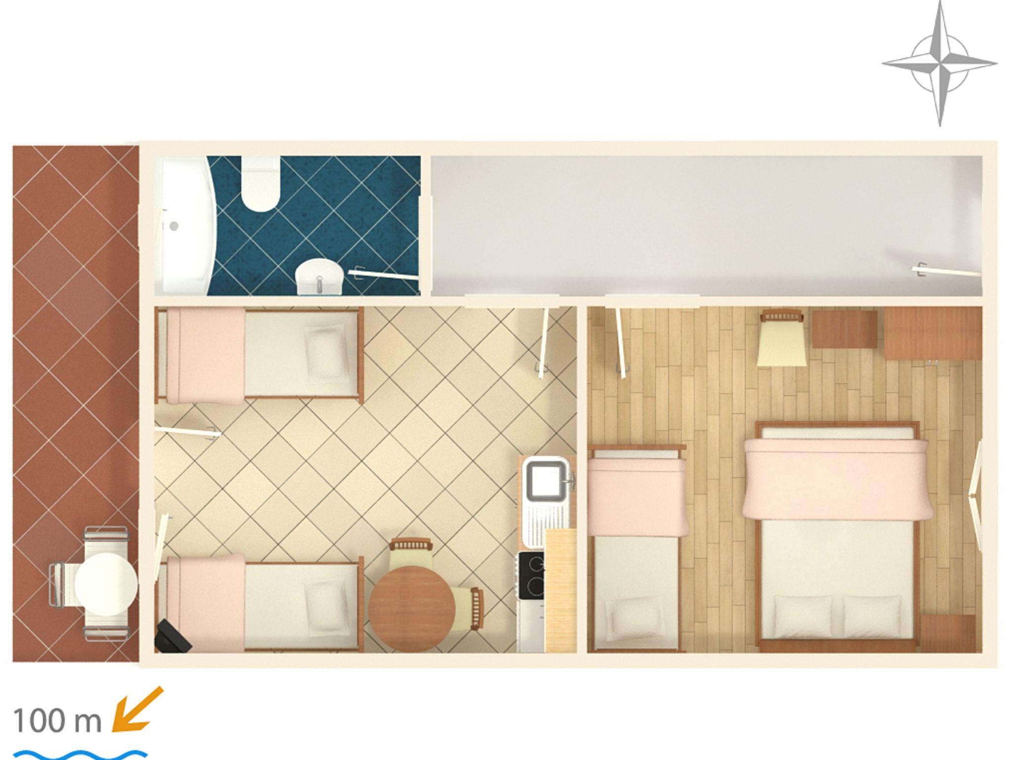 Ferienwohnung bietet Platz für 5 Gäste. Die Betten sind in Schlafzimmern, die es 1 gibt, und in Wohnzimmer, innerhalb einer Gesamtfläche von 24m2, angeordnet. Die Gäste haben einen eigenen Balkon zur Verfügung, auf der sie in warmen Sommernächten genießen können. Das Apartment bietet Meerblick. Es ist erlaubt, Speisen auf dem Gemeinschafts-Grill vorzubereiten. Unterkunftseinheit hat Räume, die von dem Rest der Einheit abgetrennt werden. IM PREIS INBEGRIFFEN: Kurtaxe, Endreinigung, Parkplatz, Internet, Wäschewaschen. VERBINDLICHE ZUSÄTZLICHE KOSTEN: Aufzahlung für Kurzaufenthalte (prozentualer Zuschlag pro Nächtigungsanzahl: 30% - 1, 20% - 2, 10% - 3). Die Verfügbarkeit zusätzlicher Dienstleistungen in Ihrem reservierten Termin und die Preise derselben (falls nicht aufgeführt) müssen im Voraus überprüft werden. Zusätzliche Dienstleistungen die in der Zahlungsaufforderung nicht aufgeführt sind werden direkt beim Vermieter bezahlt, angenommen der Gast nutzt auch diese. Ermäßigung auf den Grundpreis: Gratistag 14=13 (bei einem Aufenthalt von 14 Tagen oder mehr erhalten Sie einen Gratistag für den Aufenthalt bis 31.12.26).