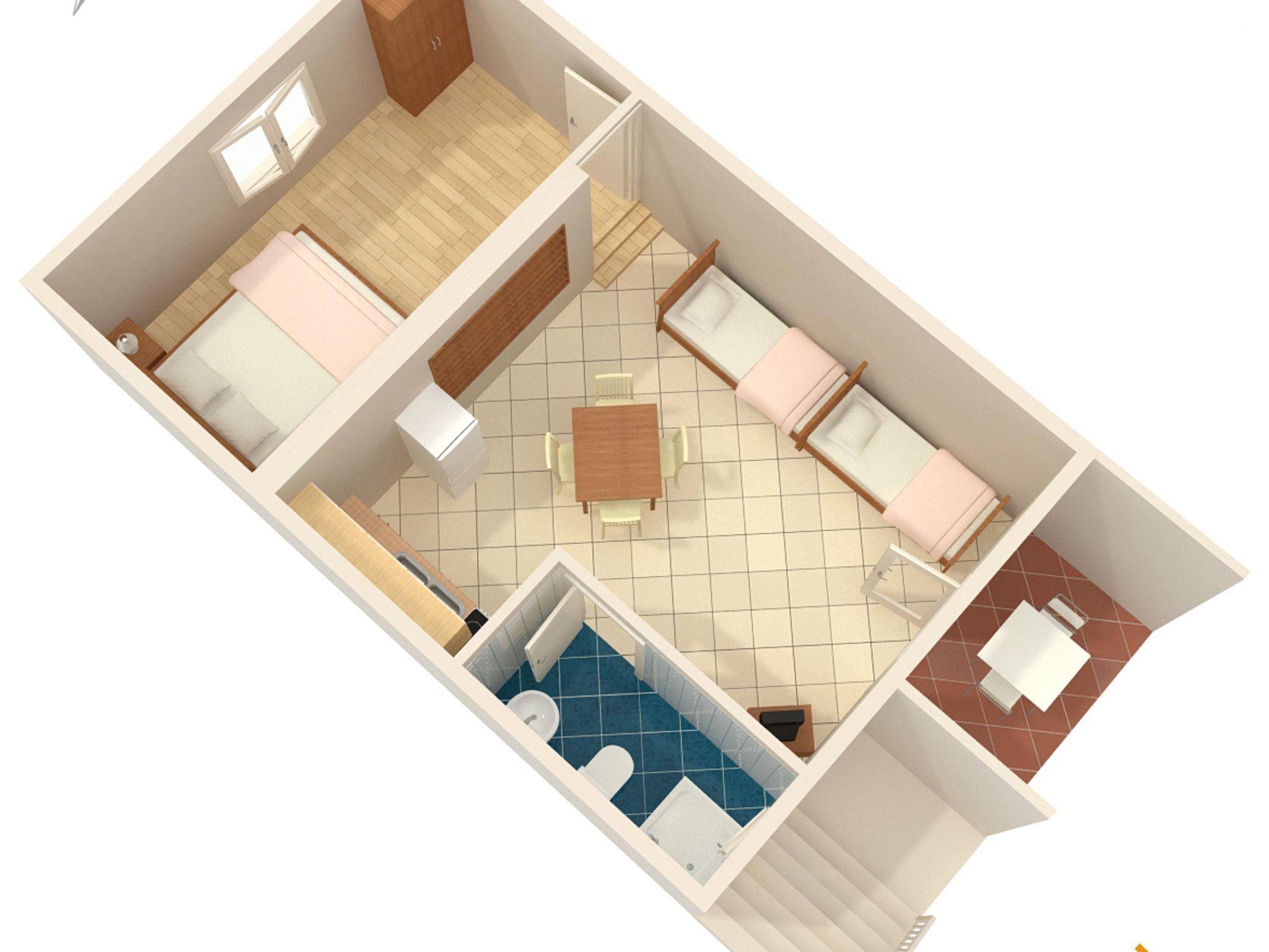 Ferienwohnung bietet Platz für 4 Gäste. Die Betten sind in Schlafzimmern, die es 1 gibt, und in Esszimmer, innerhalb einer Gesamtfläche von 48m2, angeordnet. Die Gäste haben eine eigene Terrasse zur Verfügung, auf der sie in warmen Sommernächten genießen können. Das Apartment bietet Meerblick. IM PREIS INBEGRIFFEN: Kurtaxe, Endreinigung, Parkplatz, Internet, Kinderbett, Bügeleisen, Bügelbrett, Föhn, Sonnenschirm, Liegestühle. VERBINDLICHE ZUSÄTZLICHE KOSTEN: Aufzahlung für Kurzaufenthalte (prozentualer Zuschlag pro Nächtigungsanzahl: 30% - 1, 20% - 2, 10% - 3). UNVERBINDLICHE ZUSÄTZLICHE KOSTEN: Klimatisierung (8,00 € pro Nacht), Zusatzbett (10,00 € pro Nacht). Die Verfügbarkeit zusätzlicher Dienstleistungen in Ihrem reservierten Termin und die Preise derselben (falls nicht aufgeführt) müssen im Voraus überprüft werden. Zusätzliche Dienstleistungen die in der Zahlungsaufforderung nicht aufgeführt sind werden direkt beim Vermieter bezahlt, angenommen der Gast nutzt auch diese. Ermäßigung auf den Grundpreis: Gratistag 14=13 (bei einem Aufenthalt von 14 Tagen oder mehr erhalten Sie einen Gratistag für den Aufenthalt bis 31.12.26).