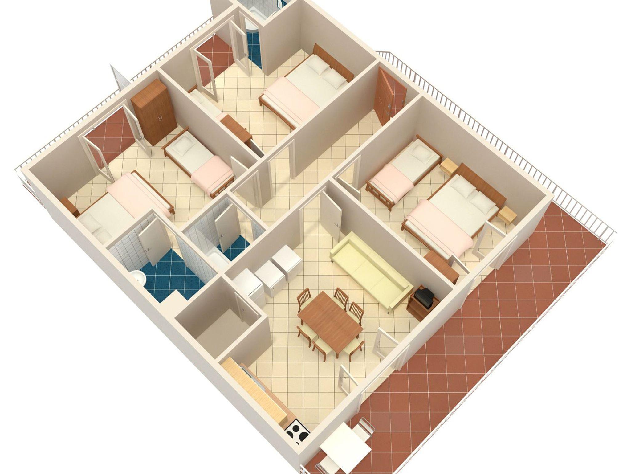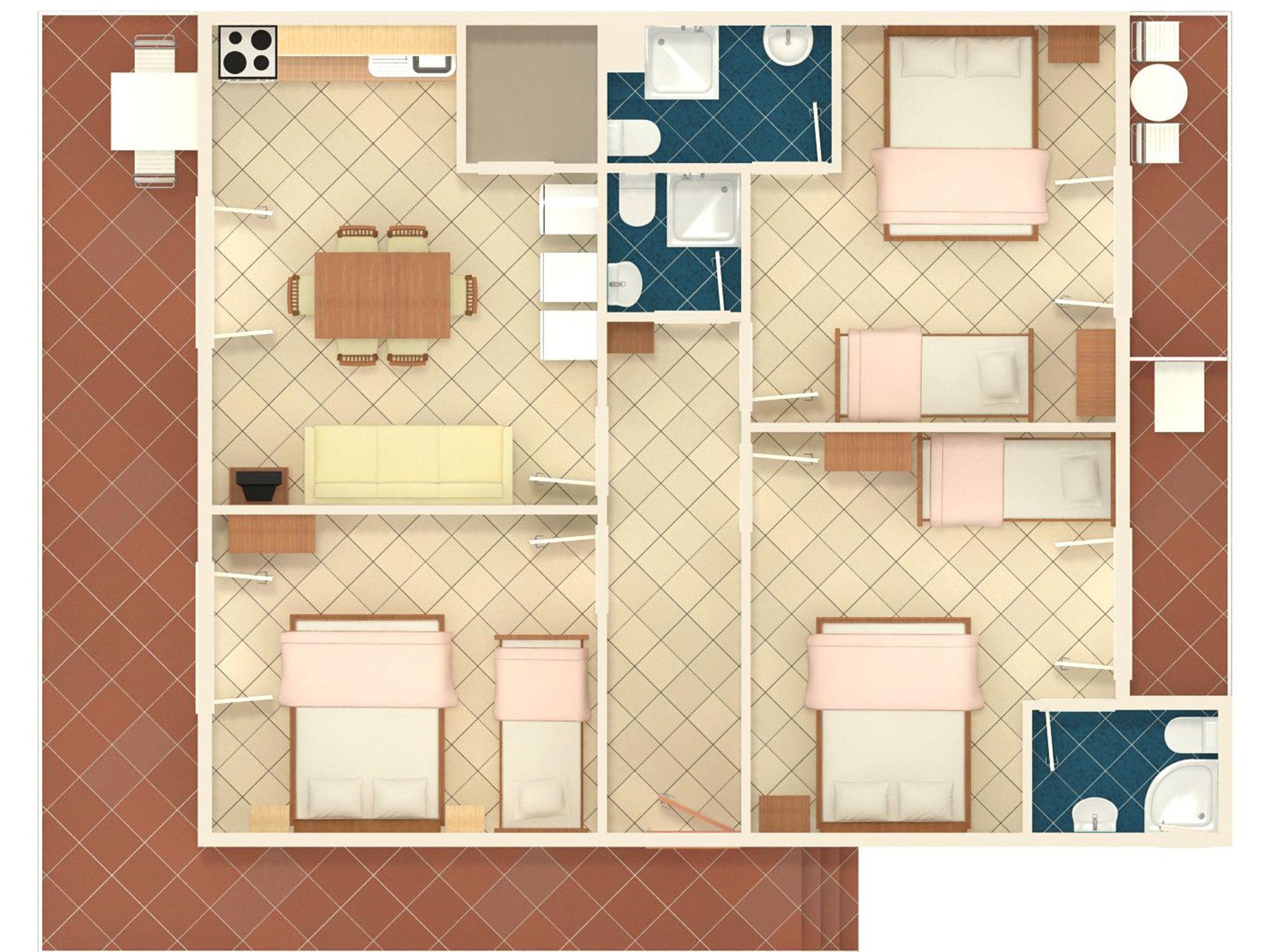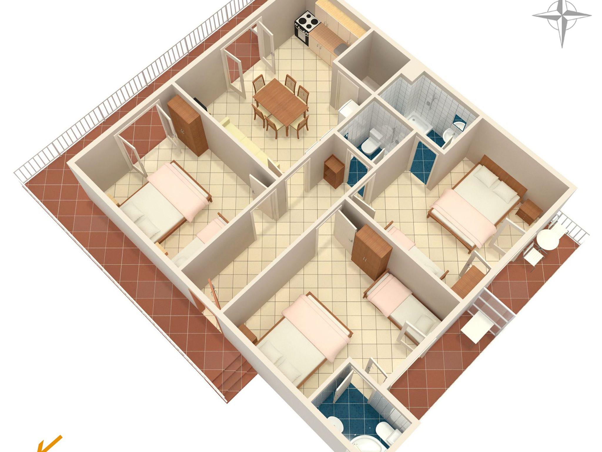 Ferienwohnung bietet Platz für 8 Gäste. Die Betten sind in Schlafzimmern, die es 3 gibt, innerhalb einer Gesamtfläche von 67m2, angeordnet. Die Gäste haben einen eigenen Balkon zur Verfügung, auf der sie in warmen Sommernächten genießen können. Das Apartment bietet Meerblick. Es ist erlaubt, Speisen auf dem Gemeinschafts-Grill vorzubereiten. IM PREIS INBEGRIFFEN: Kurtaxe, Endreinigung, Klimatisierung, Parkplatz, Internet, Bügeleisen, Bügelbrett, Föhn. VERBINDLICHE ZUSÄTZLICHE KOSTEN: Aufzahlung für Kurzaufenthalte (prozentualer Zuschlag pro Nächtigungsanzahl: 30% - 1, 20% - 2, 10% - 3). Die Verfügbarkeit zusätzlicher Dienstleistungen in Ihrem reservierten Termin und die Preise derselben (falls nicht aufgeführt) müssen im Voraus überprüft werden. Zusätzliche Dienstleistungen die in der Zahlungsaufforderung nicht aufgeführt sind werden direkt beim Vermieter bezahlt, angenommen der Gast nutzt auch diese.