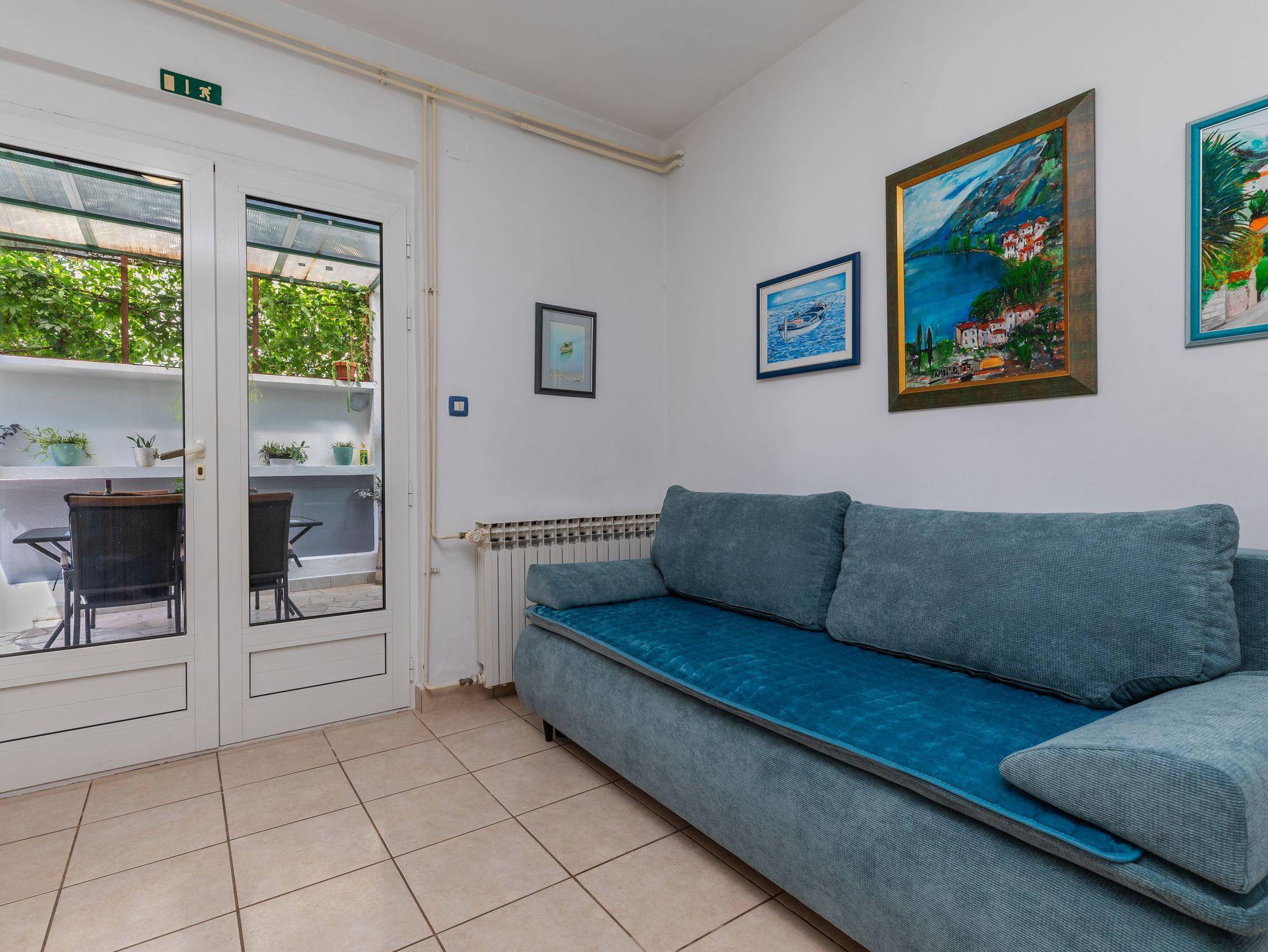 Ferienwohnung bietet Platz für 4 Gäste. Die Betten sind in Schlafzimmern, die es 1 gibt, und in Wohnzimmer, innerhalb einer Gesamtfläche von 39m2, angeordnet. Die Gäste haben eine eigene Terrasse zur Verfügung, auf der sie in warmen Sommernächten genießen können. Das Apartment bietet Meerblick. Es ist erlaubt, Speisen auf dem Gemeinschafts-Grill vorzubereiten. IM PREIS INBEGRIFFEN: Kurtaxe, Endreinigung, Klimatisierung, Parkplatz, Internet, Föhn, tragbarer Grill. Die Verfügbarkeit zusätzlicher Dienstleistungen in Ihrem reservierten Termin und die Preise derselben (falls nicht aufgeführt) müssen im Voraus überprüft werden. Zusätzliche Dienstleistungen die in der Zahlungsaufforderung nicht aufgeführt sind werden direkt beim Vermieter bezahlt, angenommen der Gast nutzt auch diese.