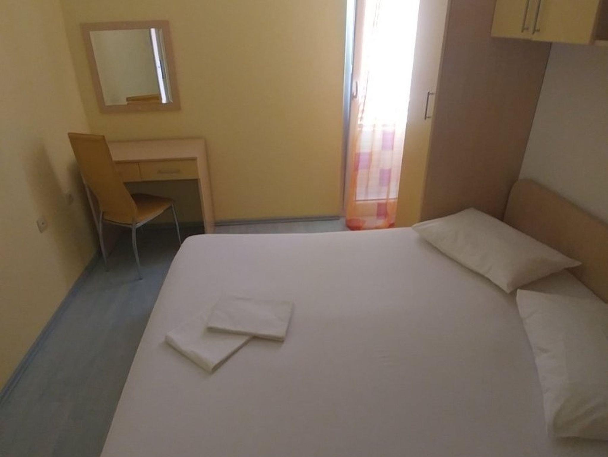 Ferienwohnung bietet Platz für 5 Gäste. Die Betten sind in Schlafzimmern, die es 2 gibt, und in Wohnzimmer, innerhalb einer Gesamtfläche von 56m2, angeordnet. Die Gäste haben einen eigenen Balkon zur Verfügung, auf der sie in warmen Sommernächten genießen können. Das Apartment bietet Meerblick. IM PREIS INBEGRIFFEN: Kurtaxe, Endreinigung, Klimatisierung, Parkplatz, Internet, Föhn. VERBINDLICHE ZUSÄTZLICHE KOSTEN: Aufzahlung für Kurzaufenthalte (prozentualer Zuschlag pro Nächtigungsanzahl: 30% - 1, 20% - 2, 10% - 3). Die Verfügbarkeit zusätzlicher Dienstleistungen in Ihrem reservierten Termin und die Preise derselben (falls nicht aufgeführt) müssen im Voraus überprüft werden. Zusätzliche Dienstleistungen die in der Zahlungsaufforderung nicht aufgeführt sind werden direkt beim Vermieter bezahlt, angenommen der Gast nutzt auch diese.
