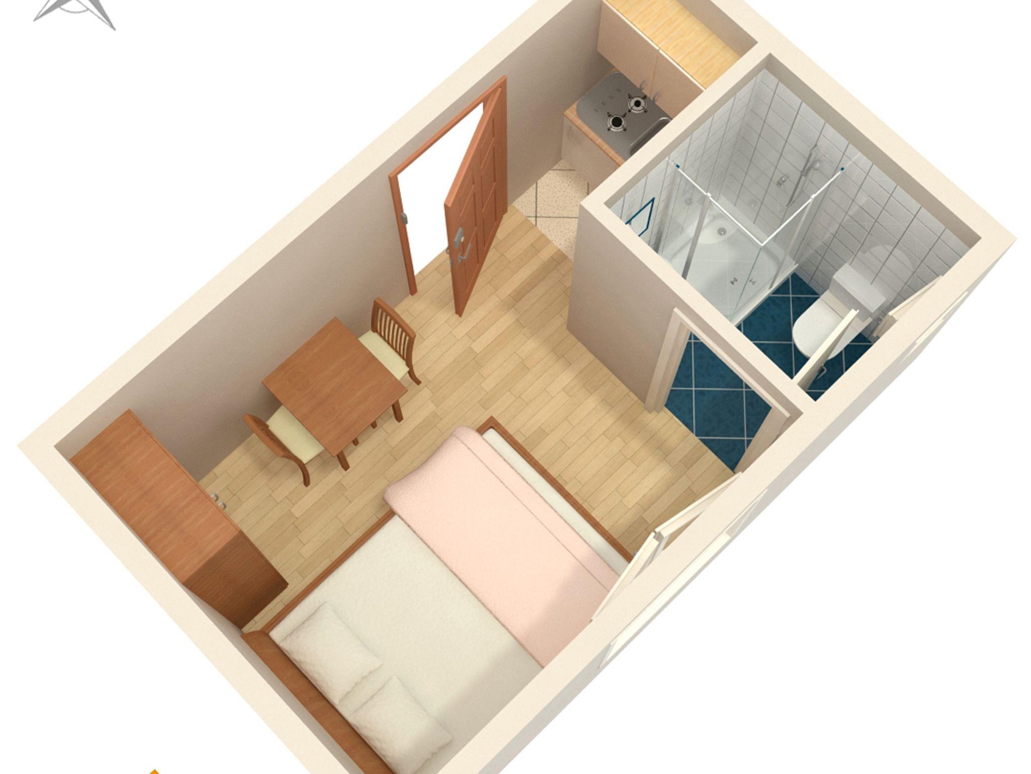 Studio bietet Platz für 1 Gäste. Die Betten sind in Schlafzimmern, die es 1 gibt, innerhalb einer Gesamtfläche von 11m2, angeordnet. Die Gäste haben einen eigenen Balkon zur Verfügung, auf der sie in warmen Sommernächten genießen können. Es ist erlaubt, Speisen auf dem Gemeinschafts-Grill vorzubereiten. IM PREIS INBEGRIFFEN: Kurtaxe, Endreinigung, Klimatisierung, Parkplatz, Internet, Bügeleisen, Bügelbrett, Föhn. VERBINDLICHE ZUSÄTZLICHE KOSTEN: Aufzahlung für Kurzaufenthalte (prozentualer Zuschlag pro Nächtigungsanzahl: 30% - 1, 20% - 2, 10% - 3). Die Verfügbarkeit zusätzlicher Dienstleistungen in Ihrem reservierten Termin und die Preise derselben (falls nicht aufgeführt) müssen im Voraus überprüft werden. Zusätzliche Dienstleistungen die in der Zahlungsaufforderung nicht aufgeführt sind werden direkt beim Vermieter bezahlt, angenommen der Gast nutzt auch diese. Ermäßigung auf den Grundpreis: Gratistag 28=25 (bei einem Aufenthalt von 28 oder mehr Tagen erhalten Sie 3 kostenlose Tage für den Aufenthalt bis 31.12.26).
