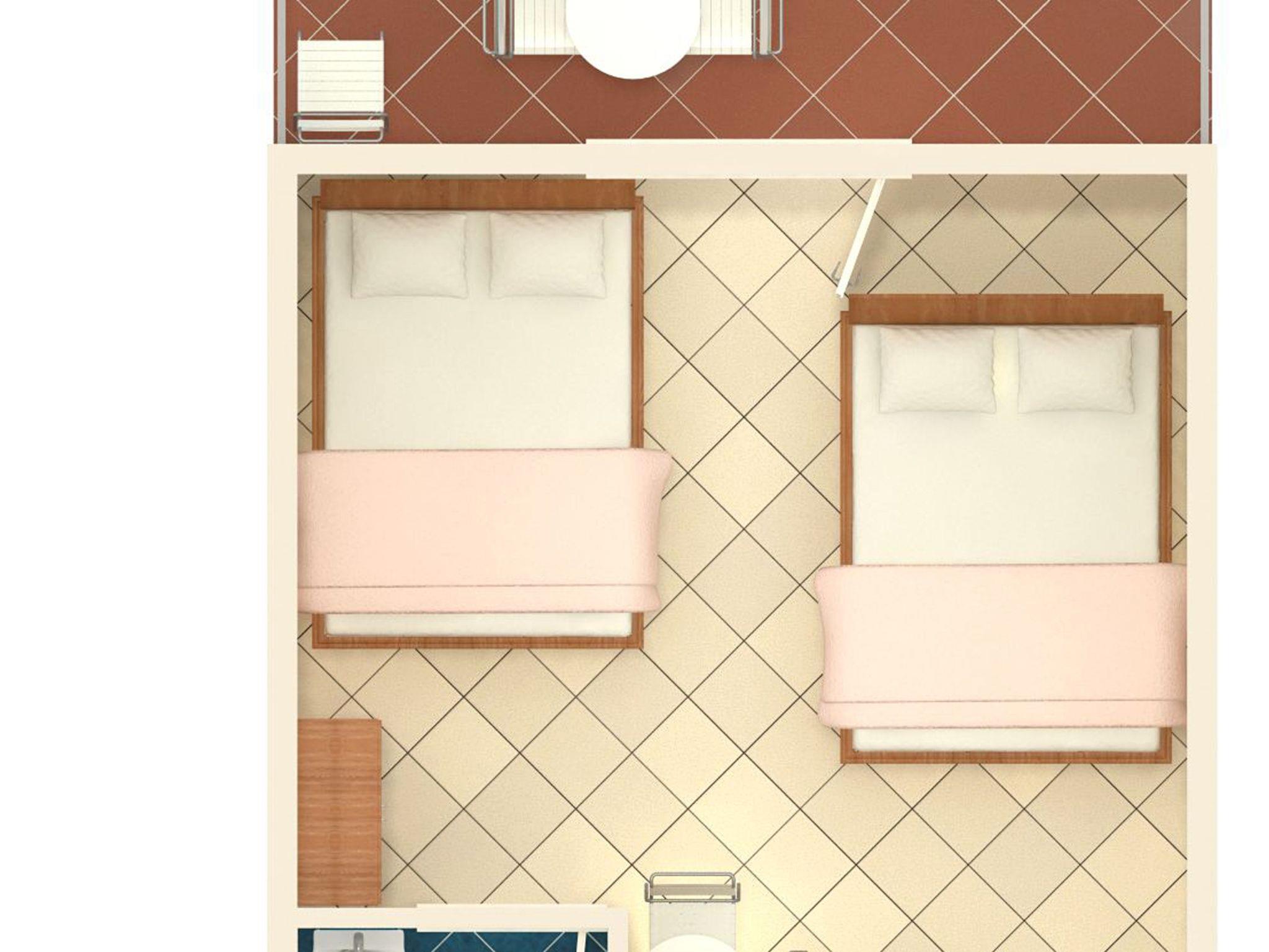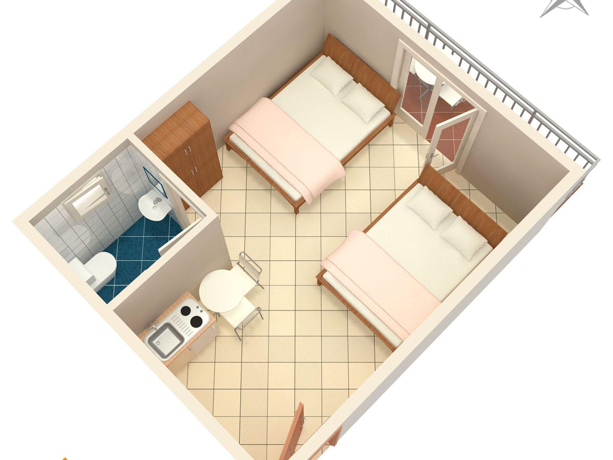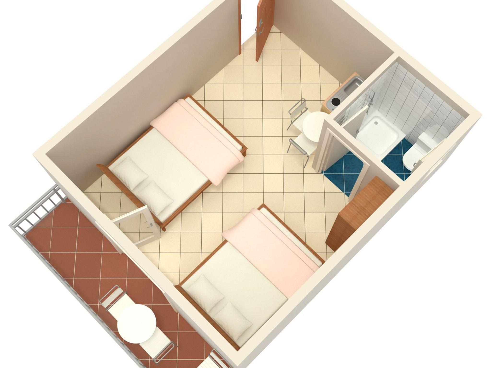 Studio bietet Platz für 4 Gäste. Die Betten sind in Schlafzimmern, die es 1 gibt, innerhalb einer Gesamtfläche von 23m2, angeordnet. Die Gäste haben einen eigenen Balkon zur Verfügung, auf der sie in warmen Sommernächten genießen können. IM PREIS INBEGRIFFEN: Kurtaxe, Endreinigung, Klimatisierung, Parkplatz, Internet, Bügeleisen, Bügelbrett, Föhn. VERBINDLICHE ZUSÄTZLICHE KOSTEN: Aufzahlung für Kurzaufenthalte (prozentualer Zuschlag pro Nächtigungsanzahl: 30% - 1, 20% - 2, 10% - 3). Die Verfügbarkeit zusätzlicher Dienstleistungen in Ihrem reservierten Termin und die Preise derselben (falls nicht aufgeführt) müssen im Voraus überprüft werden. Zusätzliche Dienstleistungen die in der Zahlungsaufforderung nicht aufgeführt sind werden direkt beim Vermieter bezahlt, angenommen der Gast nutzt auch diese. Ermäßigung auf den Grundpreis: Gratistag 14=13 (bei einem Aufenthalt von 14 Tagen oder mehr erhalten Sie einen Gratistag für den Aufenthalt bis 31.12.26).
