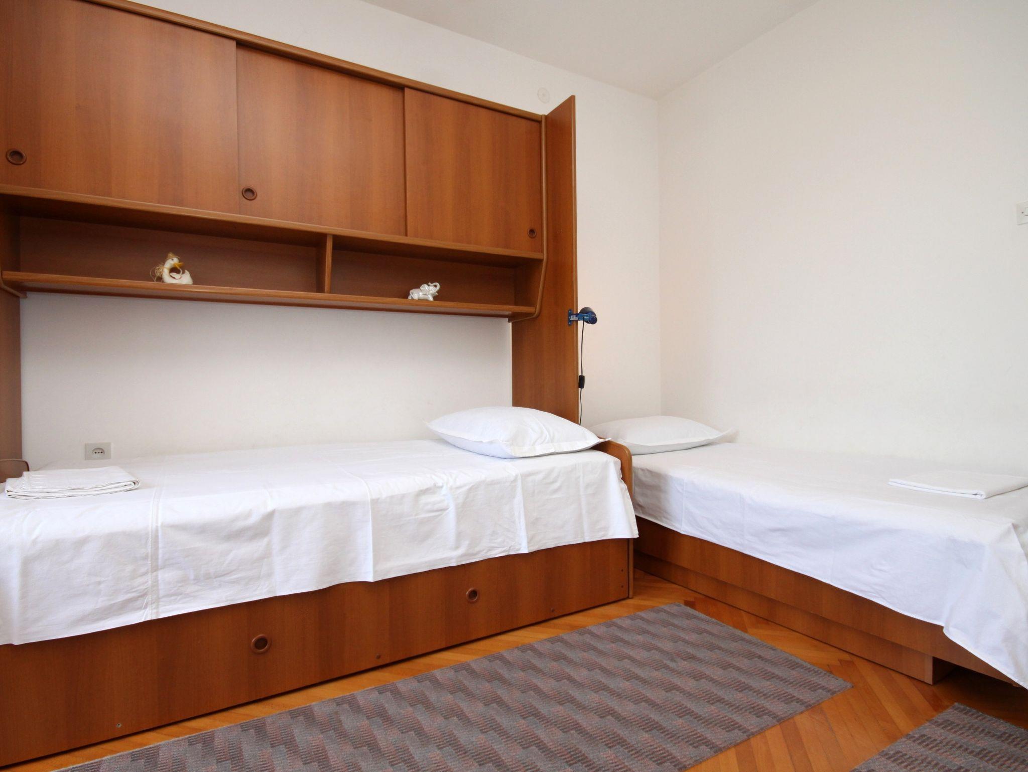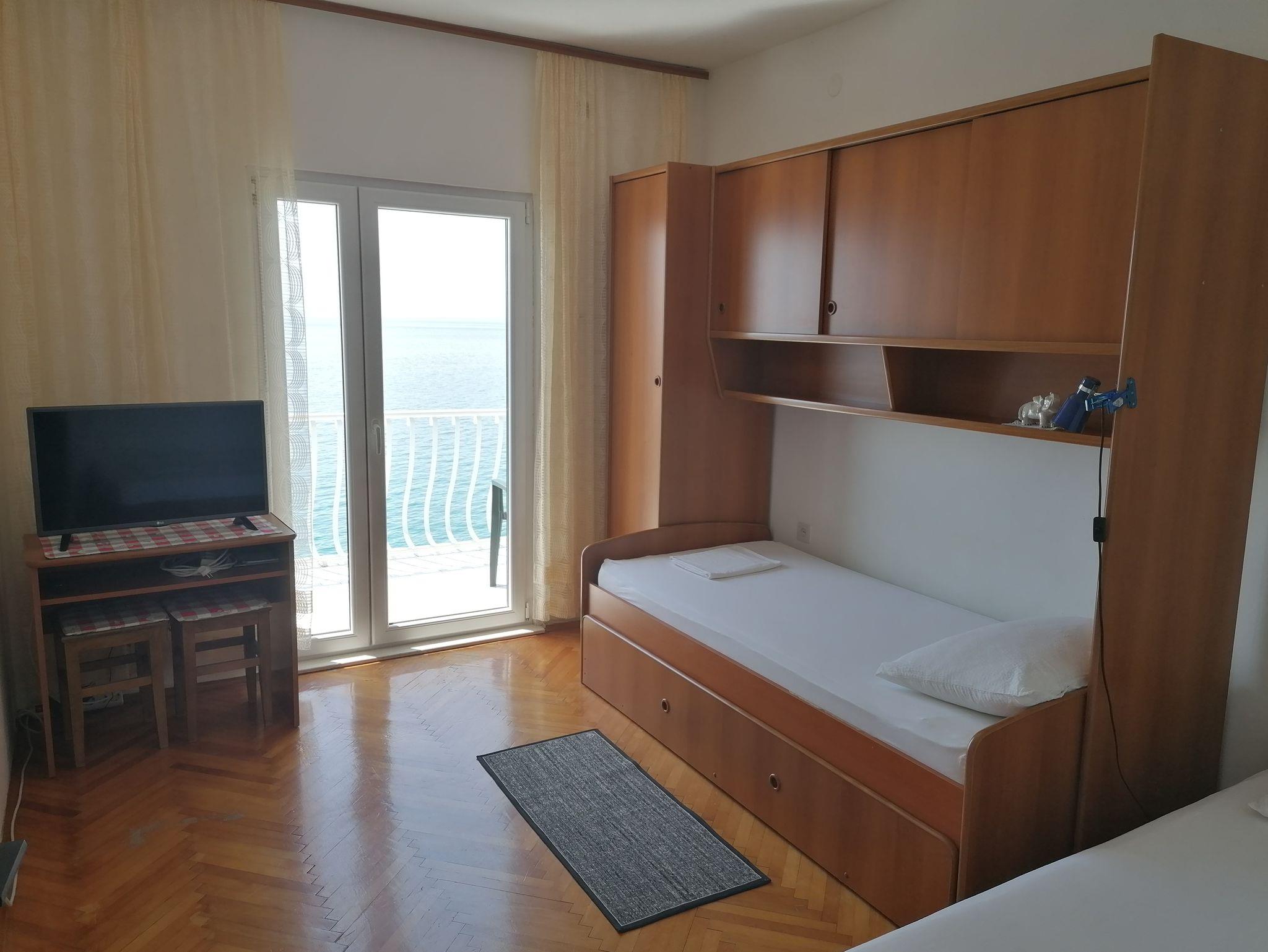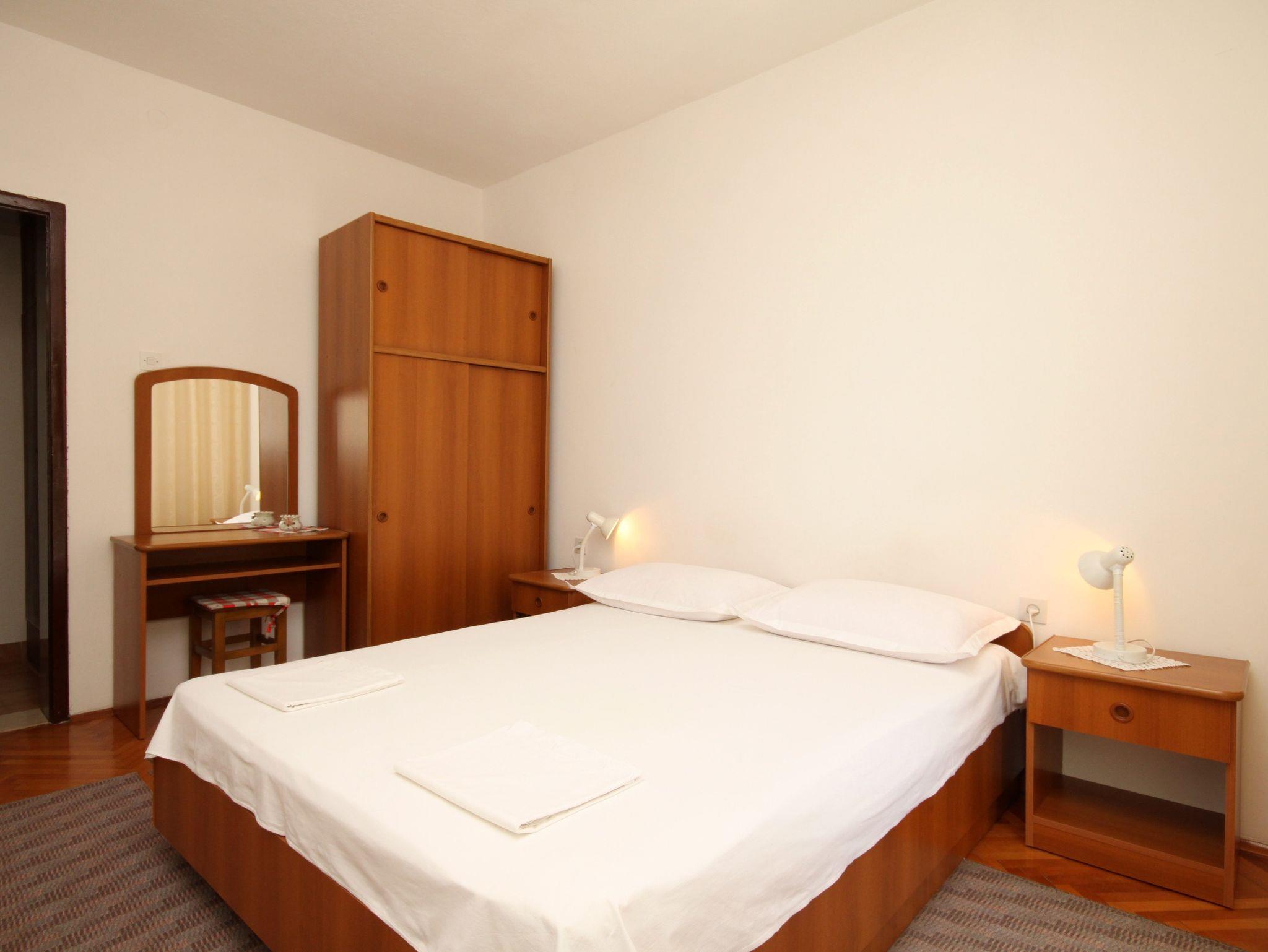 Ferienwohnung bietet Platz für 4 Gäste. Die Betten sind in Schlafzimmern, die es 2 gibt, innerhalb einer Gesamtfläche von 42m2, angeordnet. Die Gäste haben einen eigenen Balkon zur Verfügung, auf der sie in warmen Sommernächten genießen können. Das Apartment bietet Meerblick. Es ist erlaubt, Speisen auf dem Gemeinschafts-Grill vorzubereiten. IM PREIS INBEGRIFFEN: Kurtaxe, Endreinigung, Klimatisierung, Parkplatz, Internet. VERBINDLICHE ZUSÄTZLICHE KOSTEN: Aufzahlung für Kurzaufenthalte (prozentualer Zuschlag pro Nächtigungsanzahl: 30% - 1, 20% - 2, 10% - 3). Die Verfügbarkeit zusätzlicher Dienstleistungen in Ihrem reservierten Termin und die Preise derselben (falls nicht aufgeführt) müssen im Voraus überprüft werden. Zusätzliche Dienstleistungen die in der Zahlungsaufforderung nicht aufgeführt sind werden direkt beim Vermieter bezahlt, angenommen der Gast nutzt auch diese. Ermäßigung auf den Grundpreis: Gratistag 14=13 (bei einem Aufenthalt von 14 Tagen oder mehr erhalten Sie einen Gratistag für den Aufenthalt bis 31.12.26).