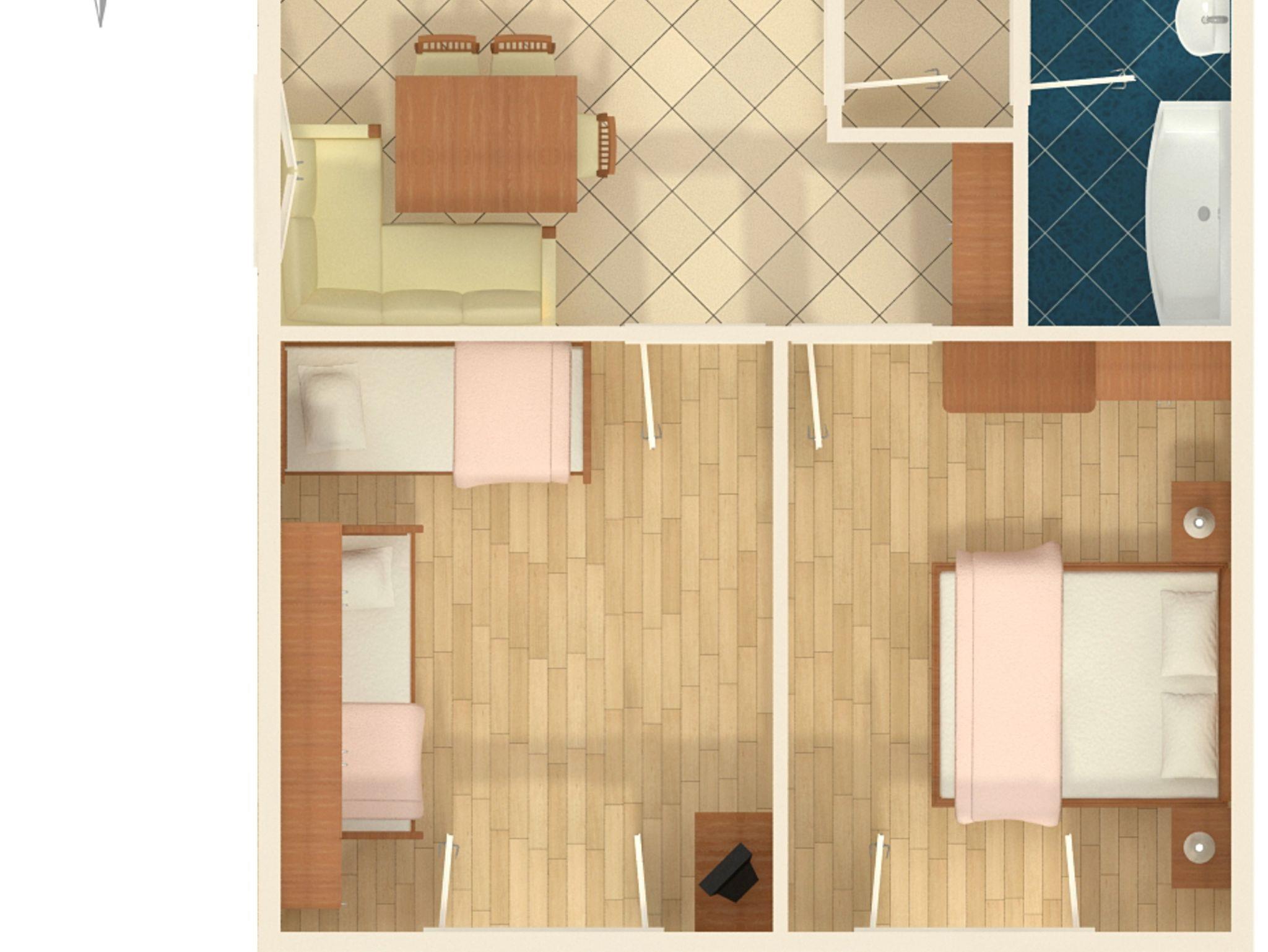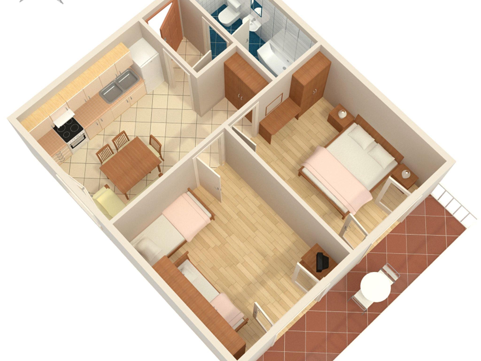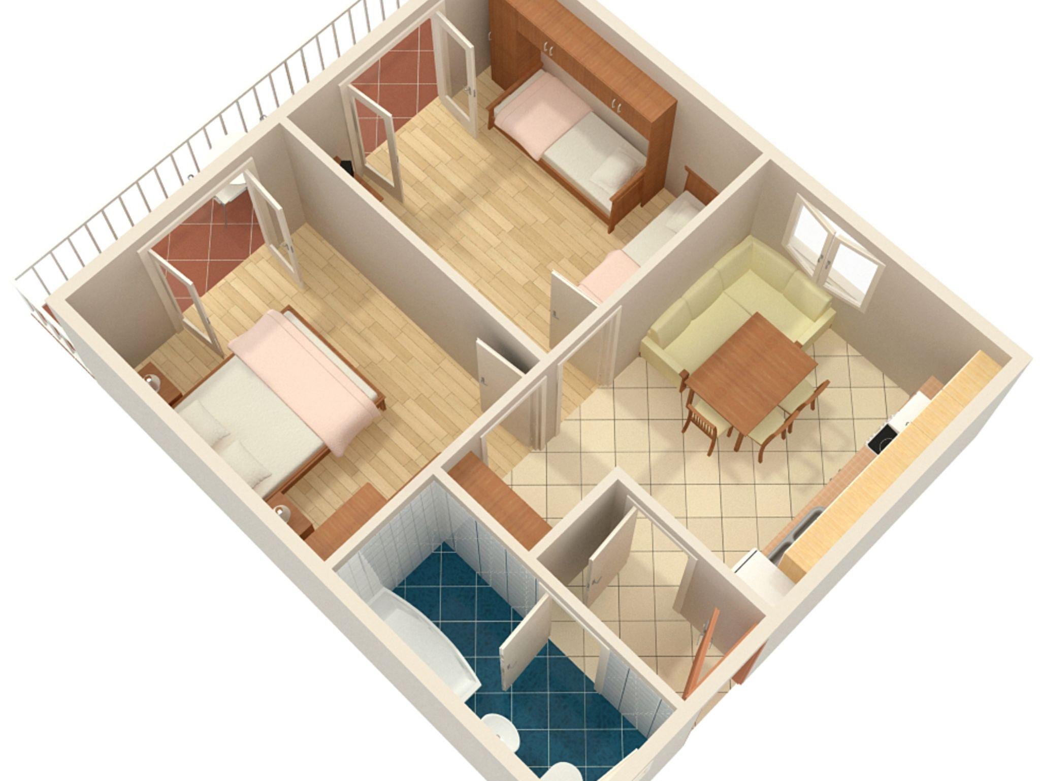 Ferienwohnung bietet Platz für 4 Gäste. Die Betten sind in Schlafzimmern, die es 2 gibt, innerhalb einer Gesamtfläche von 42m2, angeordnet. Die Gäste haben einen eigenen Balkon zur Verfügung, auf der sie in warmen Sommernächten genießen können. Das Apartment bietet Meerblick. Es ist erlaubt, Speisen auf dem Gemeinschafts-Grill vorzubereiten. IM PREIS INBEGRIFFEN: Kurtaxe, Endreinigung, Klimatisierung, Parkplatz, Internet. VERBINDLICHE ZUSÄTZLICHE KOSTEN: Aufzahlung für Kurzaufenthalte (prozentualer Zuschlag pro Nächtigungsanzahl: 30% - 1, 20% - 2, 10% - 3). Die Verfügbarkeit zusätzlicher Dienstleistungen in Ihrem reservierten Termin und die Preise derselben (falls nicht aufgeführt) müssen im Voraus überprüft werden. Zusätzliche Dienstleistungen die in der Zahlungsaufforderung nicht aufgeführt sind werden direkt beim Vermieter bezahlt, angenommen der Gast nutzt auch diese. Ermäßigung auf den Grundpreis: Gratistag 14=13 (bei einem Aufenthalt von 14 Tagen oder mehr erhalten Sie einen Gratistag für den Aufenthalt bis 31.12.26).
