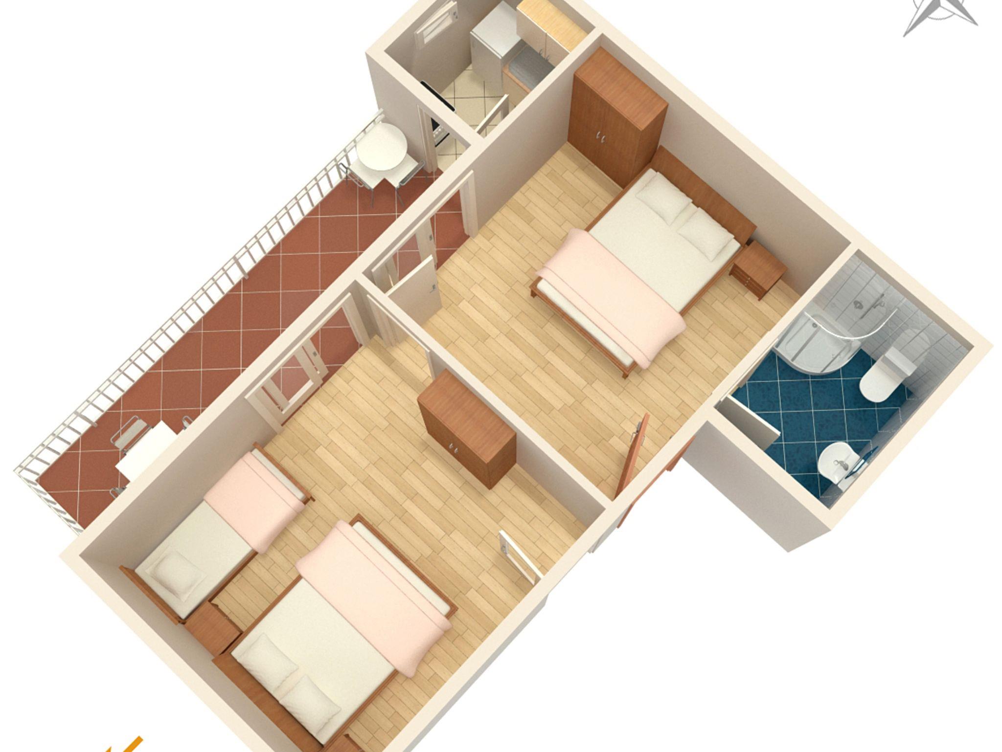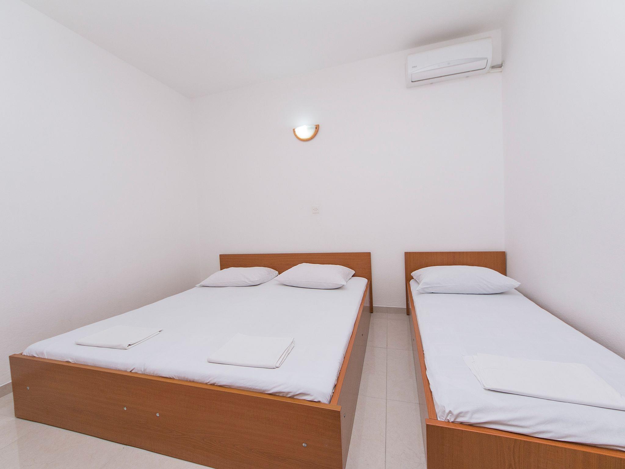 Ferienwohnung bietet Platz für 5 Gäste. Die Betten sind in Schlafzimmern, die es 2 gibt, innerhalb einer Gesamtfläche von 29m2, angeordnet. Die Gäste haben einen eigenen Balkon zur Verfügung, auf der sie in warmen Sommernächten genießen können. Es ist erlaubt, Speisen auf dem Gemeinschafts-Grill vorzubereiten. Unterkunftseinheit hat Räume, die von dem Rest der Einheit abgetrennt werden. IM PREIS INBEGRIFFEN: Kurtaxe, Endreinigung, Klimatisierung, Parkplatz, Internet, Bügeleisen, Bügelbrett, Föhn, tragbarer Grill. VERBINDLICHE ZUSÄTZLICHE KOSTEN: Aufzahlung für Kurzaufenthalte (prozentualer Zuschlag pro Nächtigungsanzahl: 30% - 1, 20% - 2, 10% - 3). UNVERBINDLICHE ZUSÄTZLICHE KOSTEN: Wäschewaschen (7,00 € Waschen), Zusatzbett (6,00 € pro Nacht). Die Verfügbarkeit zusätzlicher Dienstleistungen in Ihrem reservierten Termin und die Preise derselben (falls nicht aufgeführt) müssen im Voraus überprüft werden. Zusätzliche Dienstleistungen die in der Zahlungsaufforderung nicht aufgeführt sind werden direkt beim Vermieter bezahlt, angenommen der Gast nutzt auch diese. Ermäßigung auf den Grundpreis: Gratistag 28=25 (bei einem Aufenthalt von 28 oder mehr Tagen erhalten Sie 3 kostenlose Tage für den Aufenthalt bis 31.12.26).
