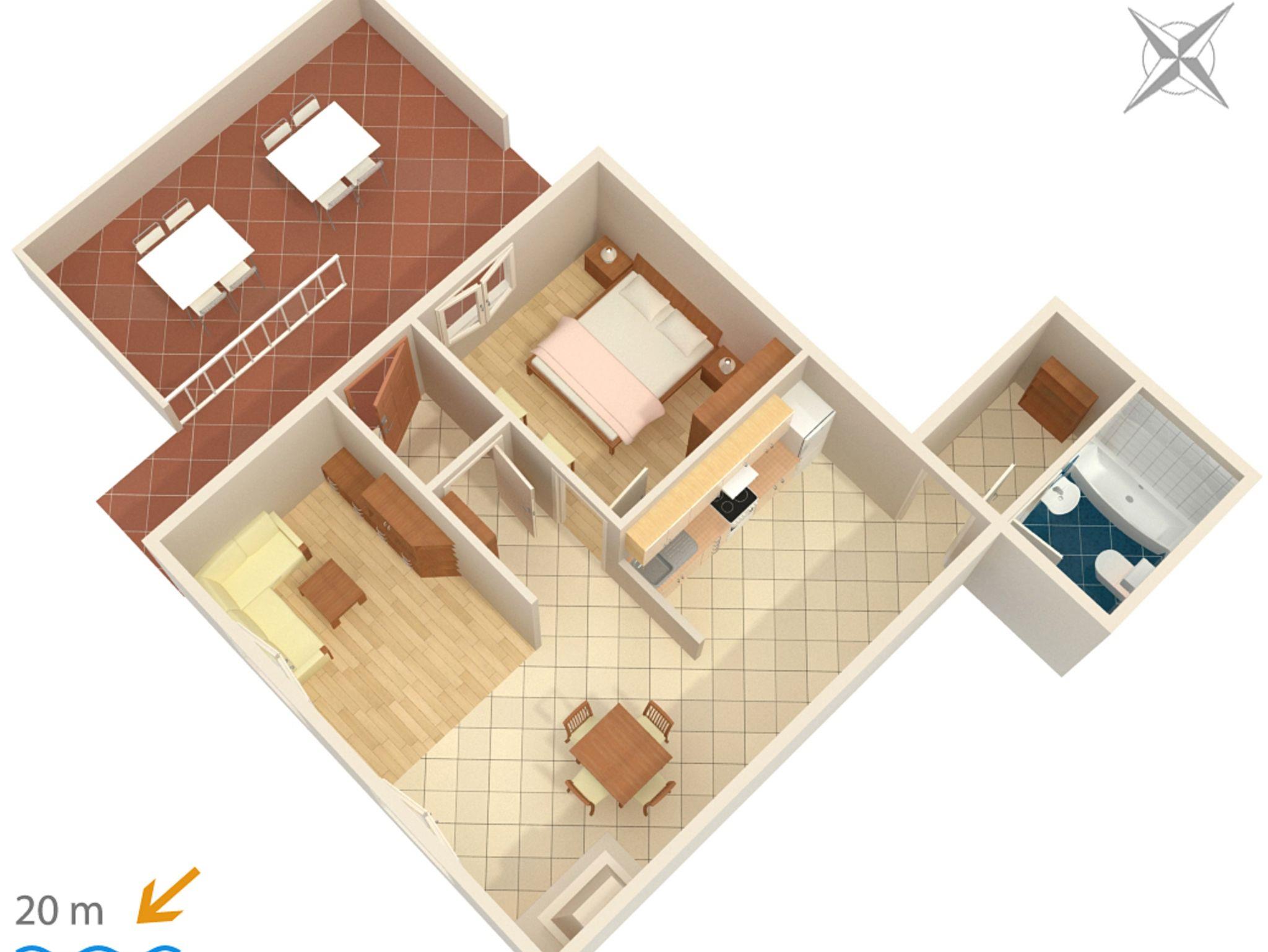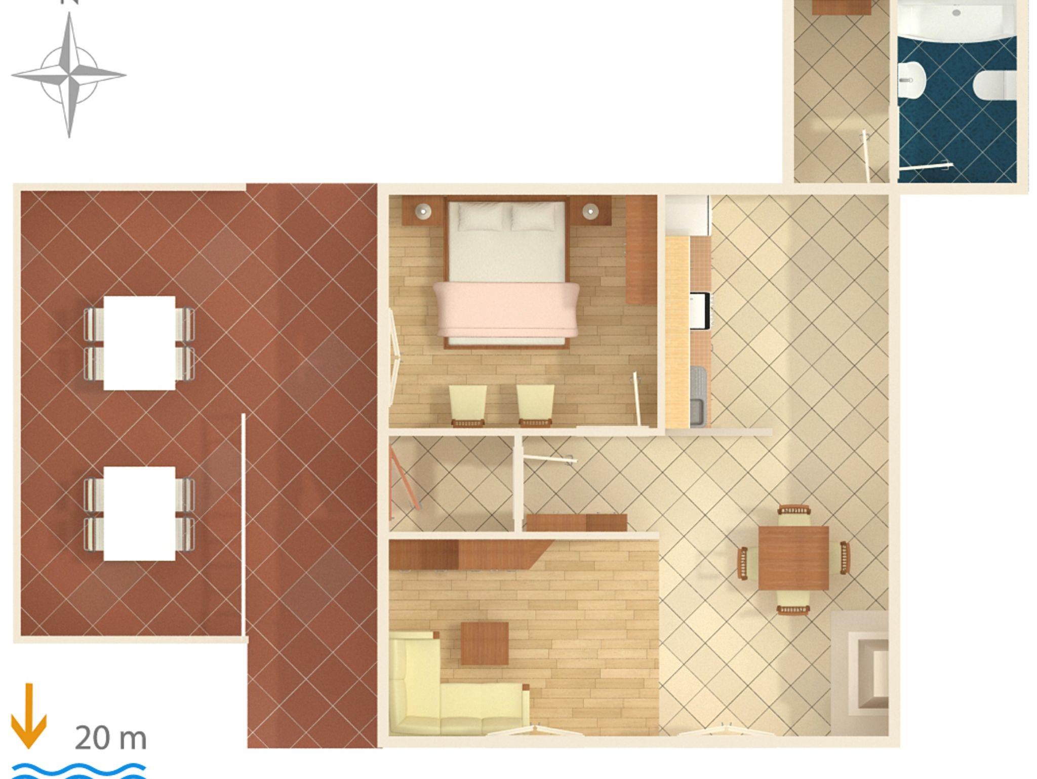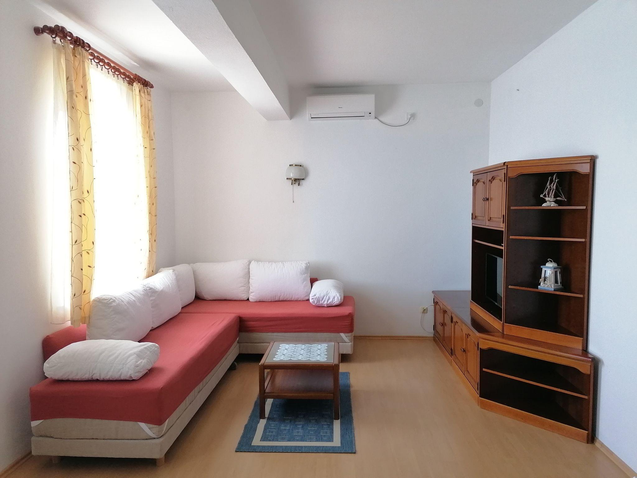 Ferienwohnung bietet Platz für 4 Gäste. Die Betten sind in Schlafzimmern, die es 1 gibt, und in Wohnzimmer, innerhalb einer Gesamtfläche von 54m2, angeordnet. Die Gäste haben eine eigene Terrasse zur Verfügung, auf der sie in warmen Sommernächten genießen können. Das Apartment bietet Meerblick. Es ist erlaubt, Speisen auf dem Gemeinschafts-Grill vorzubereiten. Unterkunftseinheit hat Räume, die von dem Rest der Einheit abgetrennt werden. IM PREIS INBEGRIFFEN: Kurtaxe, Endreinigung, Klimatisierung, Parkplatz, Internet. VERBINDLICHE ZUSÄTZLICHE KOSTEN: Aufzahlung für Kurzaufenthalte (prozentualer Zuschlag pro Nächtigungsanzahl: 30% - 1, 20% - 2, 10% - 3). Die Verfügbarkeit zusätzlicher Dienstleistungen in Ihrem reservierten Termin und die Preise derselben (falls nicht aufgeführt) müssen im Voraus überprüft werden. Zusätzliche Dienstleistungen die in der Zahlungsaufforderung nicht aufgeführt sind werden direkt beim Vermieter bezahlt, angenommen der Gast nutzt auch diese. Ermäßigung auf den Grundpreis: Gratistag 14=13 (bei einem Aufenthalt von 14 Tagen oder mehr erhalten Sie einen Gratistag für den Aufenthalt bis 31.12.26).
