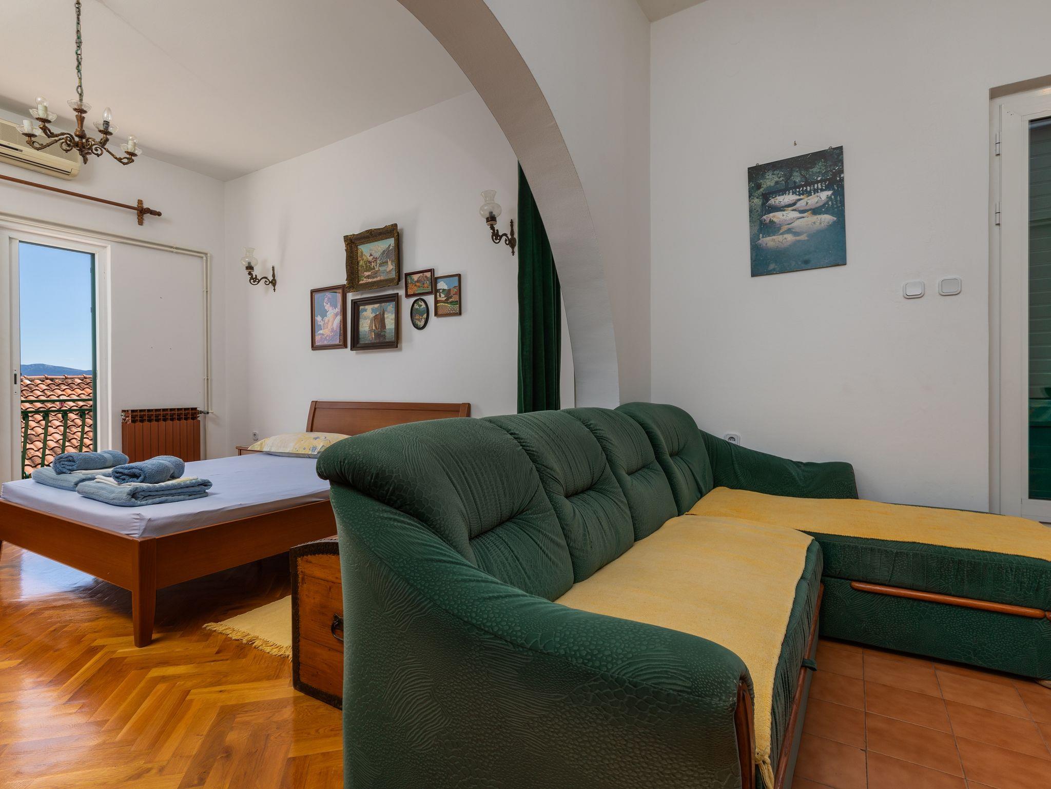 Studio bietet Platz für 2 Gäste. Die Betten sind in Schlafzimmern, die es 1 gibt, innerhalb einer Gesamtfläche von 29m2, angeordnet. Die Gäste haben eine eigene Terrasse zur Verfügung, auf der sie in warmen Sommernächten genießen können. Das Studio-Apartment bietet Meerblick. Es ist erlaubt, Speisen auf dem Gemeinschafts-Grill vorzubereiten. IM PREIS INBEGRIFFEN: Kurtaxe, Endreinigung, Klimatisierung, Parkplatz, Internet, Föhn, tragbarer Grill. Die Verfügbarkeit zusätzlicher Dienstleistungen in Ihrem reservierten Termin und die Preise derselben (falls nicht aufgeführt) müssen im Voraus überprüft werden. Zusätzliche Dienstleistungen die in der Zahlungsaufforderung nicht aufgeführt sind werden direkt beim Vermieter bezahlt, angenommen der Gast nutzt auch diese.