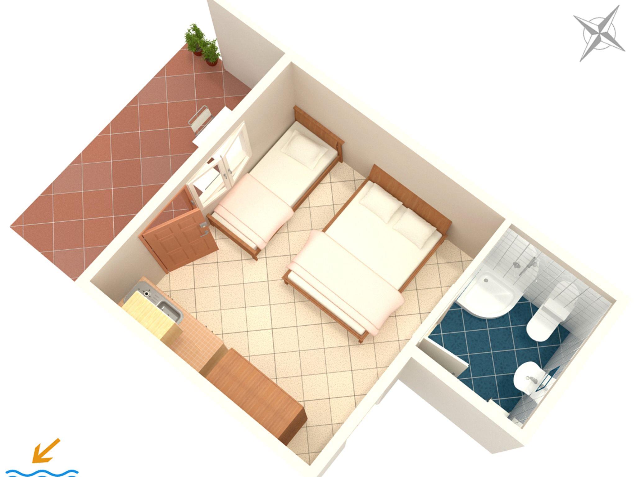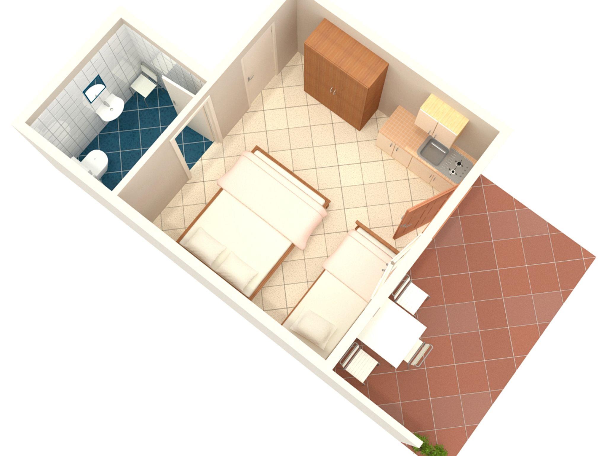 Studio bietet Platz für 3 Gäste. Die Betten sind in Schlafzimmern, die es 1 gibt, innerhalb einer Gesamtfläche von 18m2, angeordnet. Die Gäste haben eine eigene Terrasse zur Verfügung, auf der sie in warmen Sommernächten genießen können. Es ist erlaubt, Speisen auf dem Gemeinschafts-Grill vorzubereiten. IM PREIS INBEGRIFFEN: Kurtaxe, Endreinigung, Parkplatz, Internet, Bügeleisen, Bügelbrett, Föhn, tragbarer Grill. VERBINDLICHE ZUSÄTZLICHE KOSTEN: Aufzahlung für Kurzaufenthalte (prozentualer Zuschlag pro Nächtigungsanzahl: 30% - 1, 20% - 2, 10% - 3). UNVERBINDLICHE ZUSÄTZLICHE KOSTEN: Wäschewaschen (7,00 € Waschen), Zusatzbett (6,00 € pro Nacht). Die Verfügbarkeit zusätzlicher Dienstleistungen in Ihrem reservierten Termin und die Preise derselben (falls nicht aufgeführt) müssen im Voraus überprüft werden. Zusätzliche Dienstleistungen die in der Zahlungsaufforderung nicht aufgeführt sind werden direkt beim Vermieter bezahlt, angenommen der Gast nutzt auch diese. Ermäßigung auf den Grundpreis: Gratistag 28=25 (bei einem Aufenthalt von 28 oder mehr Tagen erhalten Sie 3 kostenlose Tage für den Aufenthalt bis 31.12.26).