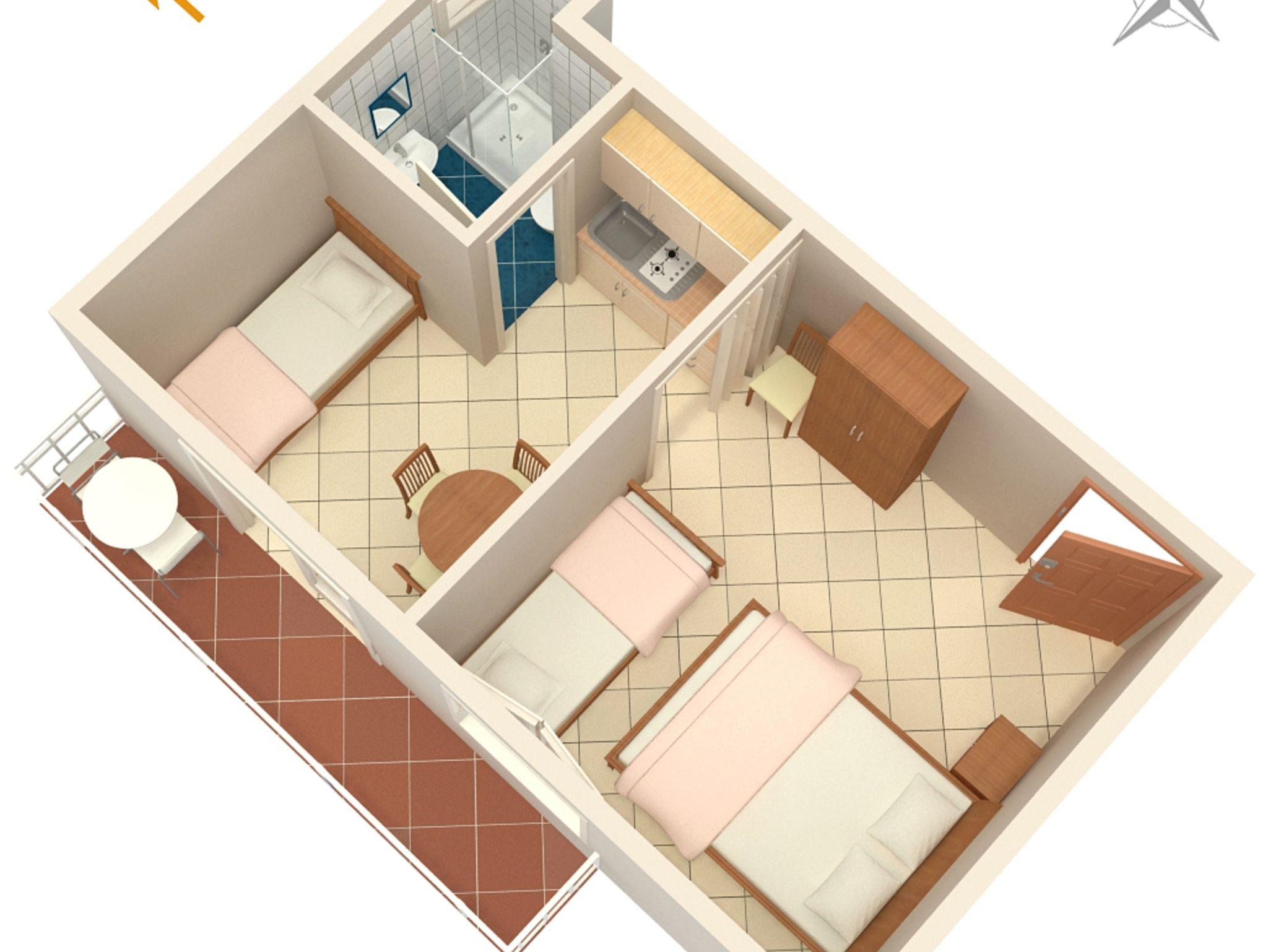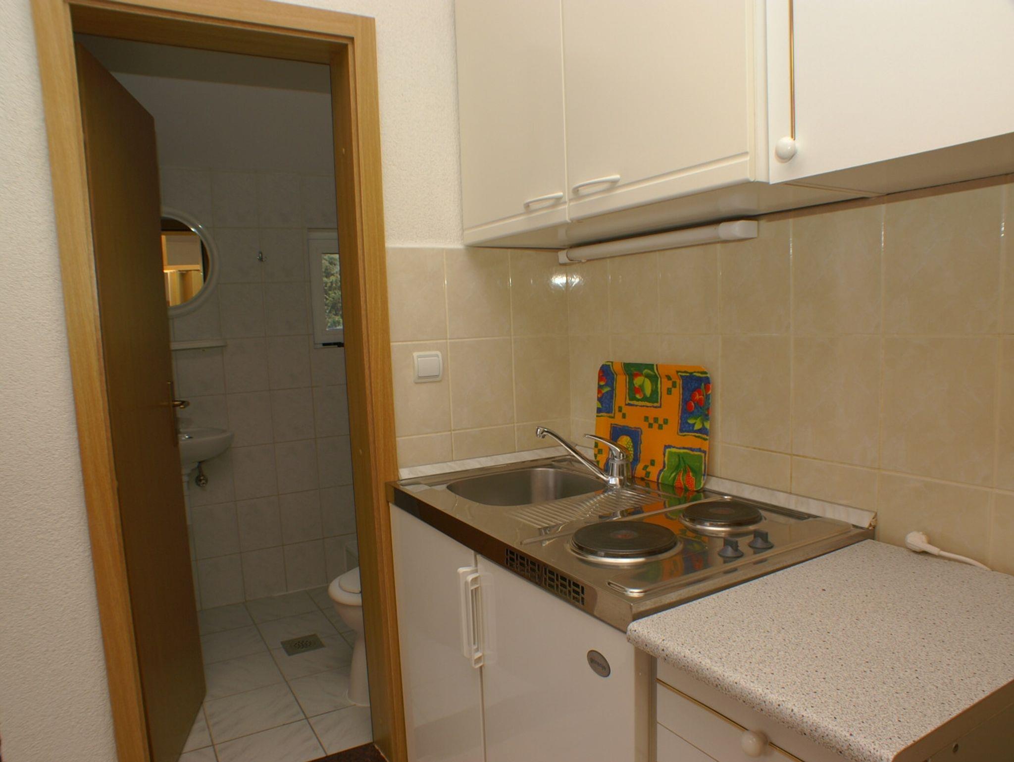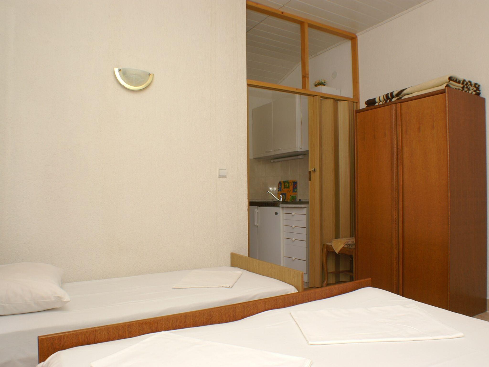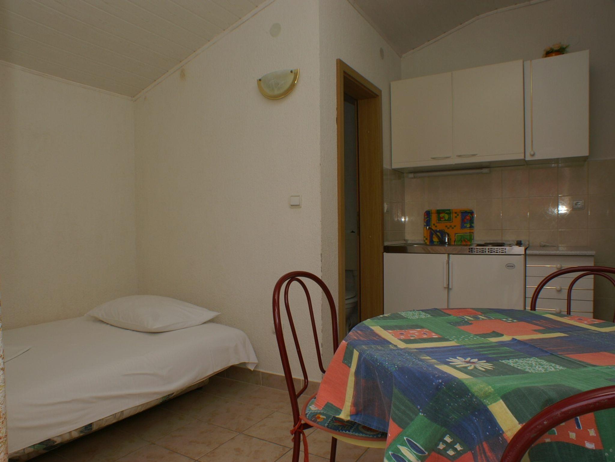 Studio bietet Platz für 4 Gäste. Die Betten sind in Schlafzimmern, die es 1 gibt, und in Esszimmer, innerhalb einer Gesamtfläche von 26m2, angeordnet. Die Gäste haben einen eigenen Balkon zur Verfügung, auf der sie in warmen Sommernächten genießen können. Das Studio-Apartment bietet Meerblick. Es ist erlaubt, Speisen auf dem Gemeinschafts-Grill vorzubereiten. IM PREIS INBEGRIFFEN: Kurtaxe, Endreinigung, Klimatisierung, Parkplatz, Internet, Kinderbett, tragbarer Grill. VERBINDLICHE ZUSÄTZLICHE KOSTEN: Aufzahlung für Kurzaufenthalte (prozentualer Zuschlag pro Nächtigungsanzahl: 30% - 1, 20% - 2, 10% - 3). UNVERBINDLICHE ZUSÄTZLICHE KOSTEN: Wäschewaschen (5,00 € Waschen). Die Verfügbarkeit zusätzlicher Dienstleistungen in Ihrem reservierten Termin und die Preise derselben (falls nicht aufgeführt) müssen im Voraus überprüft werden. Zusätzliche Dienstleistungen die in der Zahlungsaufforderung nicht aufgeführt sind werden direkt beim Vermieter bezahlt, angenommen der Gast nutzt auch diese. Ermäßigung auf den Grundpreis: Gratistag 21=19 (bei einem Aufenthalt von 21 Tagen oder mehr erhalten Sie 2 Gratistage für den Aufenthalt bis 31.12.26).