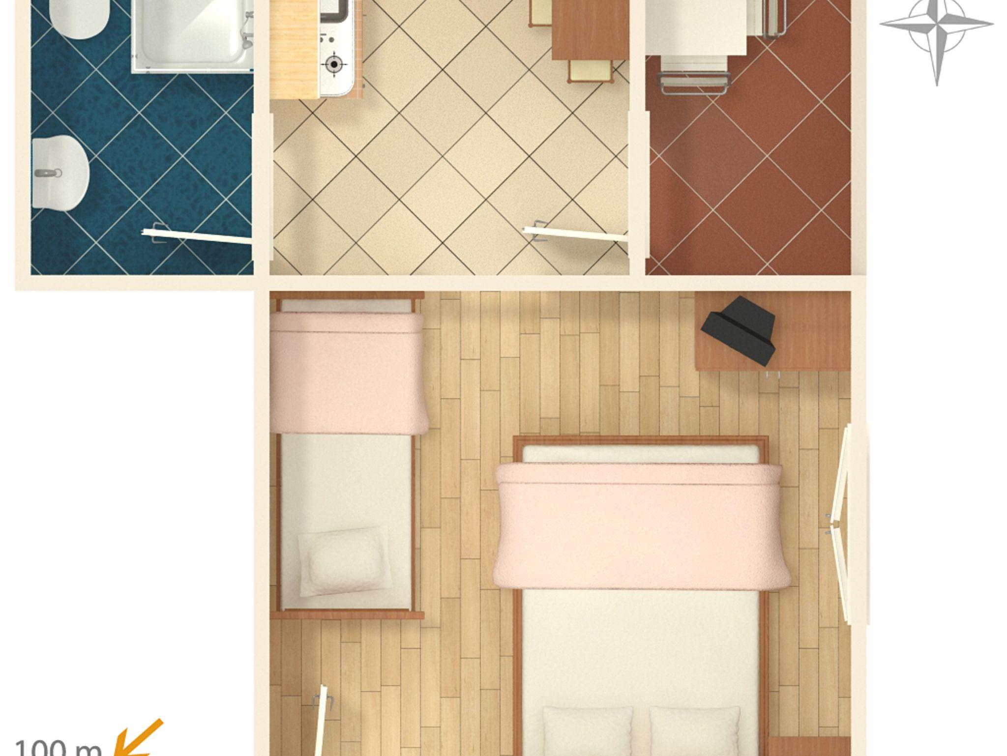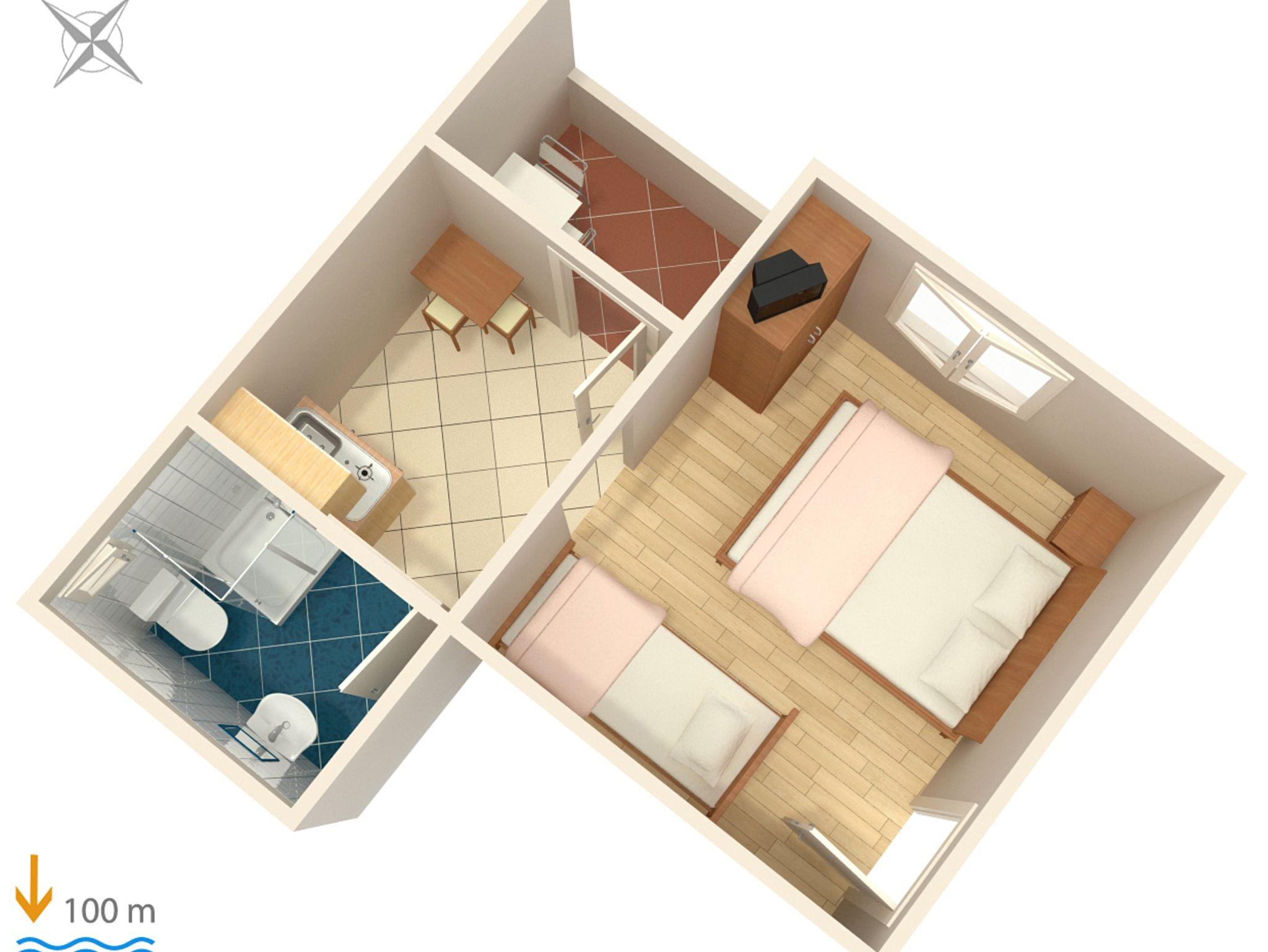 Studio bietet Platz für 3 Gäste. Die Betten sind in Schlafzimmern, die es 1 gibt, innerhalb einer Gesamtfläche von 16m2, angeordnet. Die Gäste haben einen eigenen Balkon zur Verfügung, auf der sie in warmen Sommernächten genießen können. Es ist erlaubt, Speisen auf dem Gemeinschafts-Grill vorzubereiten. IM PREIS INBEGRIFFEN: Kurtaxe, Endreinigung, Parkplatz, Internet, Wäschewaschen. VERBINDLICHE ZUSÄTZLICHE KOSTEN: Aufzahlung für Kurzaufenthalte (prozentualer Zuschlag pro Nächtigungsanzahl: 30% - 1, 20% - 2, 10% - 3). Die Verfügbarkeit zusätzlicher Dienstleistungen in Ihrem reservierten Termin und die Preise derselben (falls nicht aufgeführt) müssen im Voraus überprüft werden. Zusätzliche Dienstleistungen die in der Zahlungsaufforderung nicht aufgeführt sind werden direkt beim Vermieter bezahlt, angenommen der Gast nutzt auch diese. Ermäßigung auf den Grundpreis: Gratistag 14=13 (bei einem Aufenthalt von 14 Tagen oder mehr erhalten Sie einen Gratistag für den Aufenthalt bis 31.12.26).