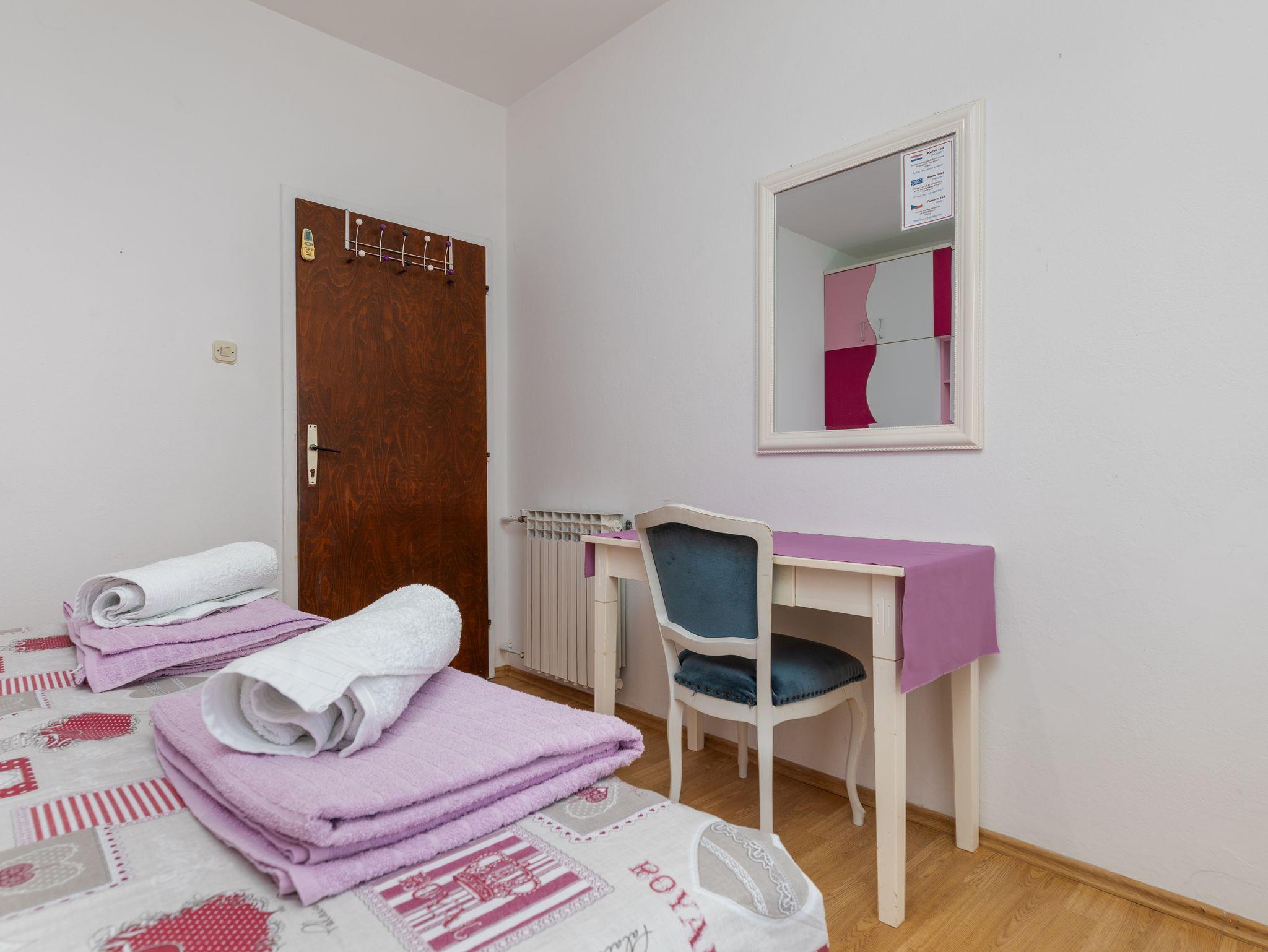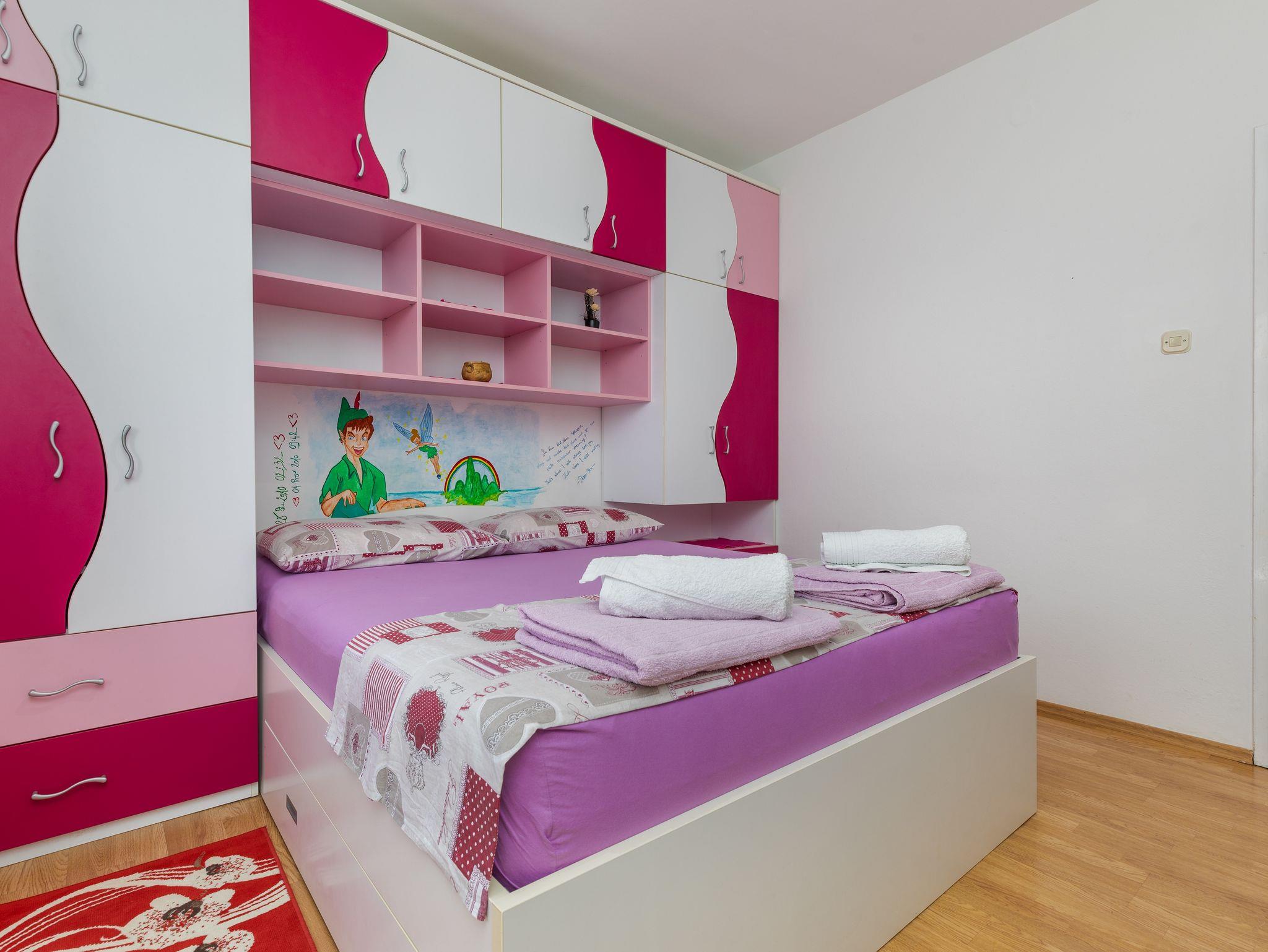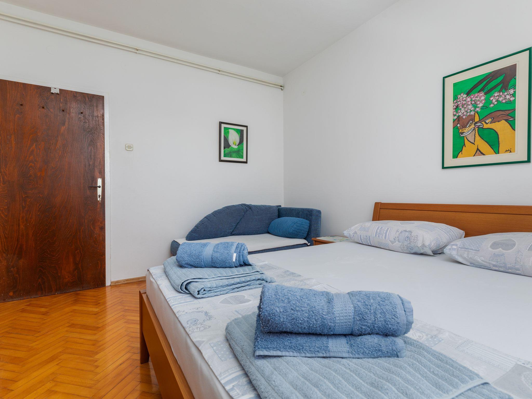 Ferienwohnung bietet Platz für 4 Gäste. Die Betten sind in Schlafzimmern, die es 2 gibt, innerhalb einer Gesamtfläche von 43m2, angeordnet. Die Gäste haben eine eigene Terrasse zur Verfügung, auf der sie in warmen Sommernächten genießen können. Das Apartment bietet Meerblick. Es ist erlaubt, Speisen auf dem Gemeinschafts-Grill vorzubereiten. IM PREIS INBEGRIFFEN: Kurtaxe, Endreinigung, Klimatisierung, Parkplatz, Internet, Föhn, tragbarer Grill. Die Verfügbarkeit zusätzlicher Dienstleistungen in Ihrem reservierten Termin und die Preise derselben (falls nicht aufgeführt) müssen im Voraus überprüft werden. Zusätzliche Dienstleistungen die in der Zahlungsaufforderung nicht aufgeführt sind werden direkt beim Vermieter bezahlt, angenommen der Gast nutzt auch diese.
