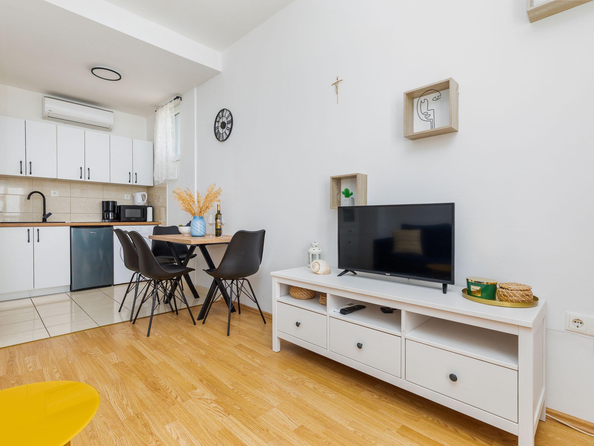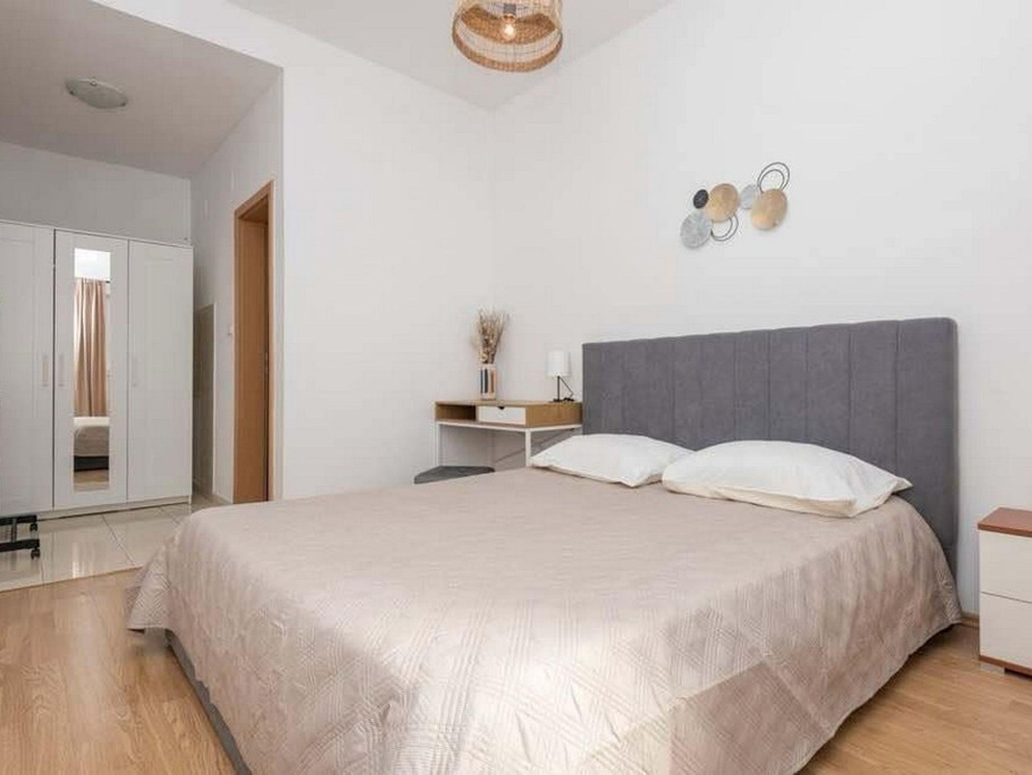 Ferienwohnung bietet Platz für 4 Gäste. Die Betten sind in Schlafzimmern, die es 1 gibt, und in Wohnzimmer, innerhalb einer Gesamtfläche von 42m2, angeordnet. Die Gäste haben eine eigene Terrasse zur Verfügung, auf der sie in warmen Sommernächten genießen können. Das Apartment bietet Meerblick. Räume der gebuchten Unterkunftseinheit werden nicht in eine Ganze verbunden. Unterkunftseinheit hat Räume, die von dem Rest der Einheit abgetrennt werden. IM PREIS INBEGRIFFEN: Kurtaxe, Endreinigung, Klimatisierung, Parkplatz, Internet, Kinderbett, Bügeleisen, Föhn. Die Verfügbarkeit zusätzlicher Dienstleistungen in Ihrem reservierten Termin und die Preise derselben (falls nicht aufgeführt) müssen im Voraus überprüft werden. Zusätzliche Dienstleistungen die in der Zahlungsaufforderung nicht aufgeführt sind werden direkt beim Vermieter bezahlt, angenommen der Gast nutzt auch diese.