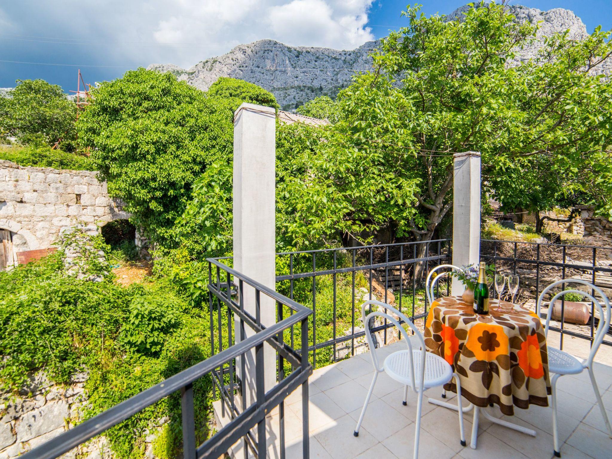 Terrace with garden furniture and sunshade ,barbeque,beautifulview on the sea islands and mountain Biokovo1763m
