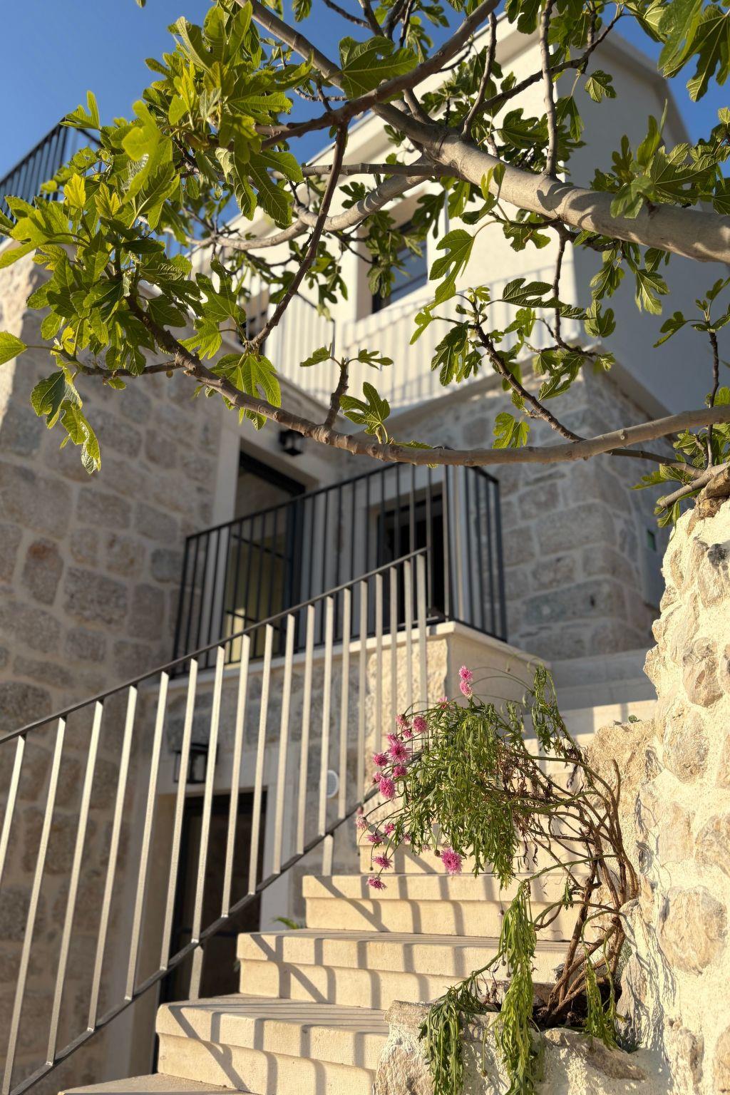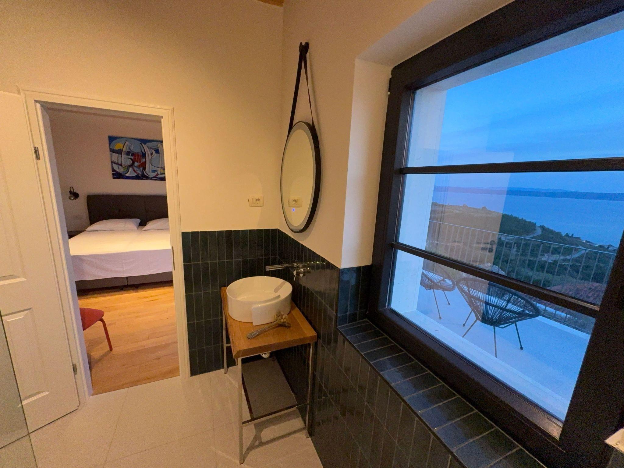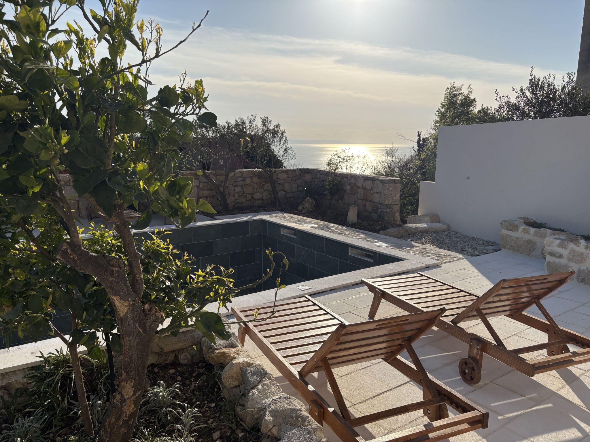 In addition to its location, this beautiful villa offers its guests a holiday in the unforgettable ambience of an old Dalmatian farmhouse, which was renovated in 2025 in a very modern way, respecting the tradition of old Dalmatian architecture. In the villa there are three very modernly equipped bedrooms, each with its own bathroom and toilet, as well as a very modern kitchen, dining area and living room. The rooms have traditional stone walls that create a cosy atmosphere where you can enjoy romantic sunsets with a glass of wine. On the ground floor there are two bedrooms each with its own bathroom, from here you can access the beautiful courtyard with the heated pool and sun loungers and garden with rosemary, laurel and lavender. The third bedroom is located on the top floor and also has its own bathroom and large balcony with beautiful sea views. On the first floor there is a living room with sofa, TV, very modern equipped kitchen and dining area, which leads to a balcony with sea view, which has a barbecue and a table for 8 people.