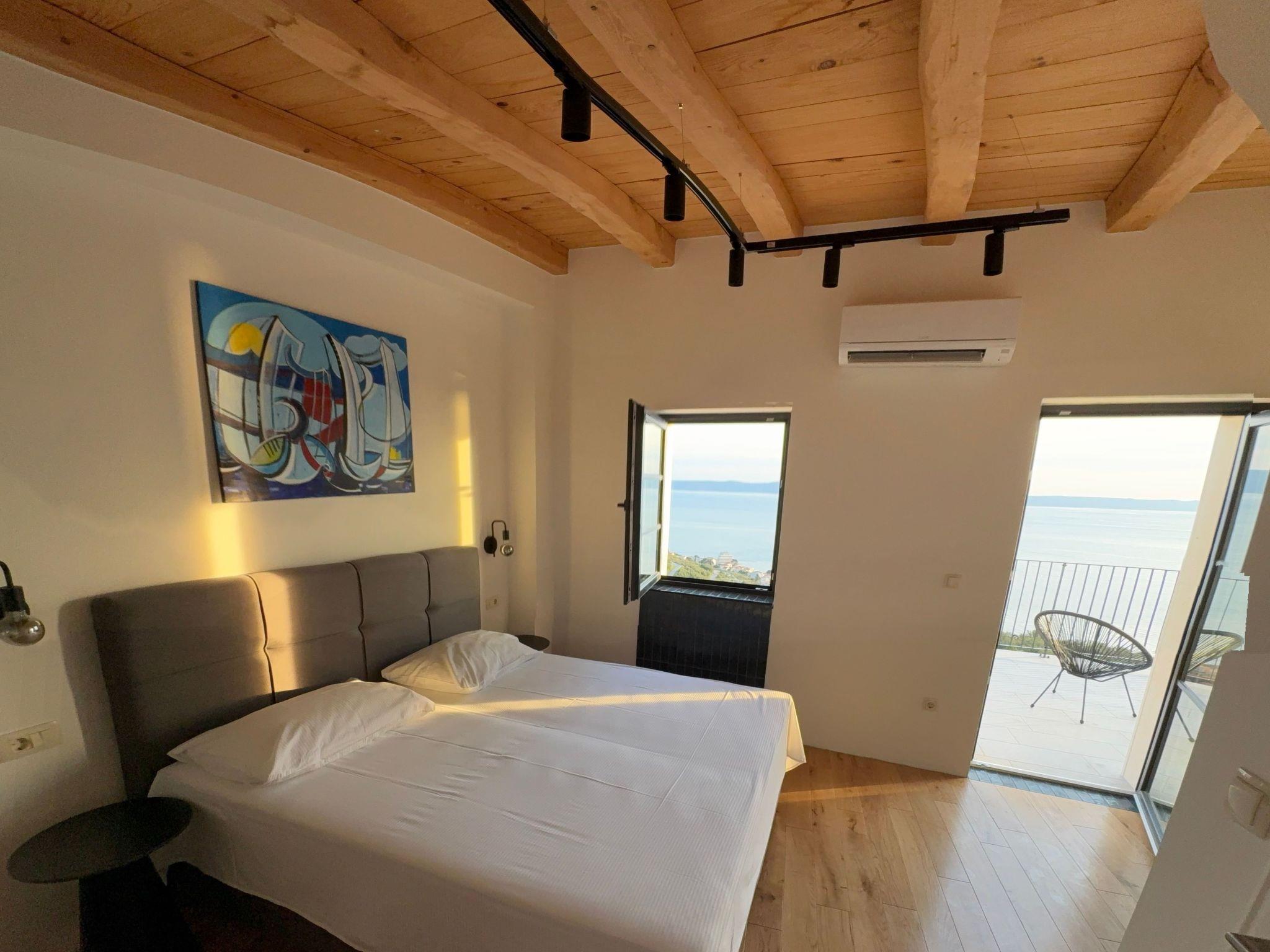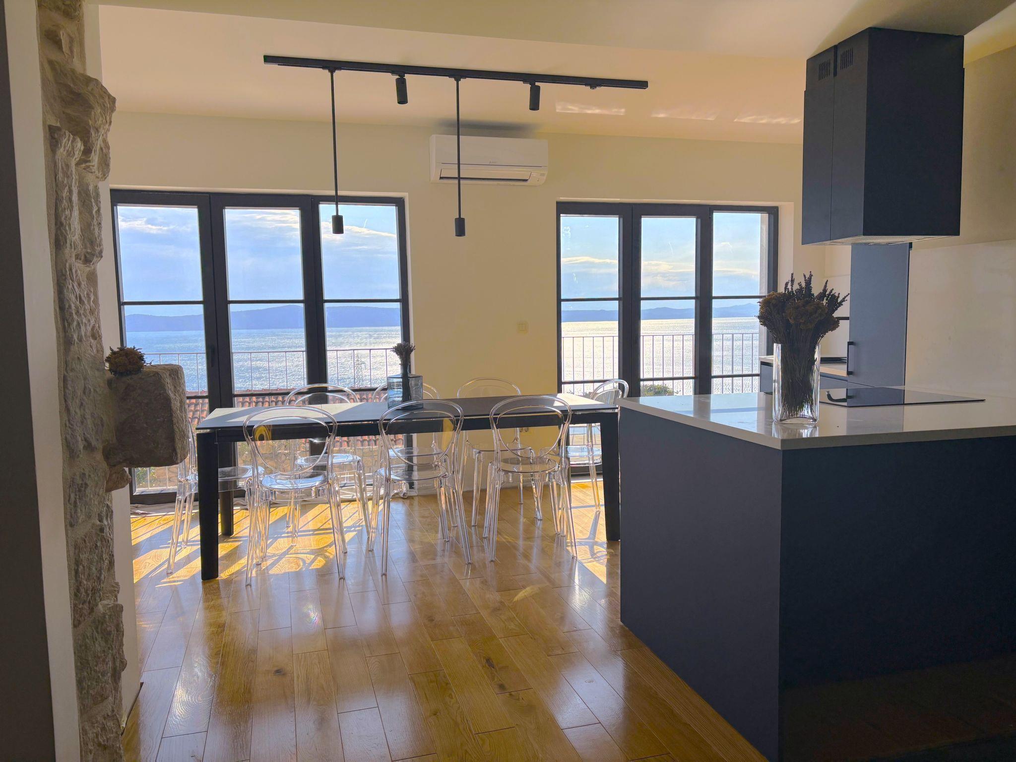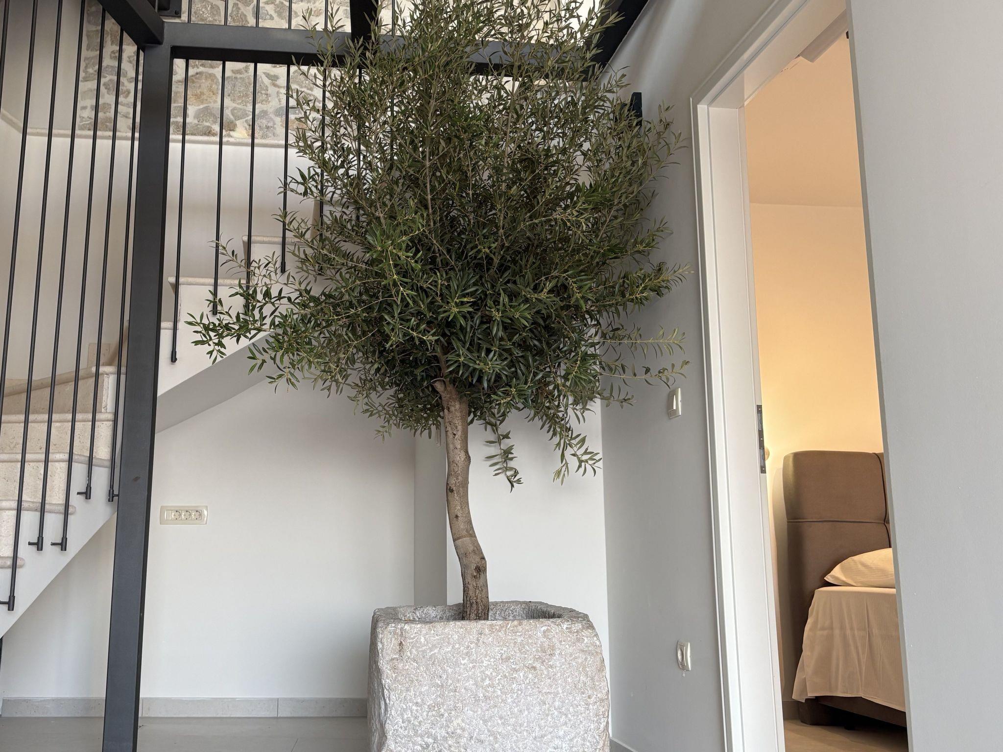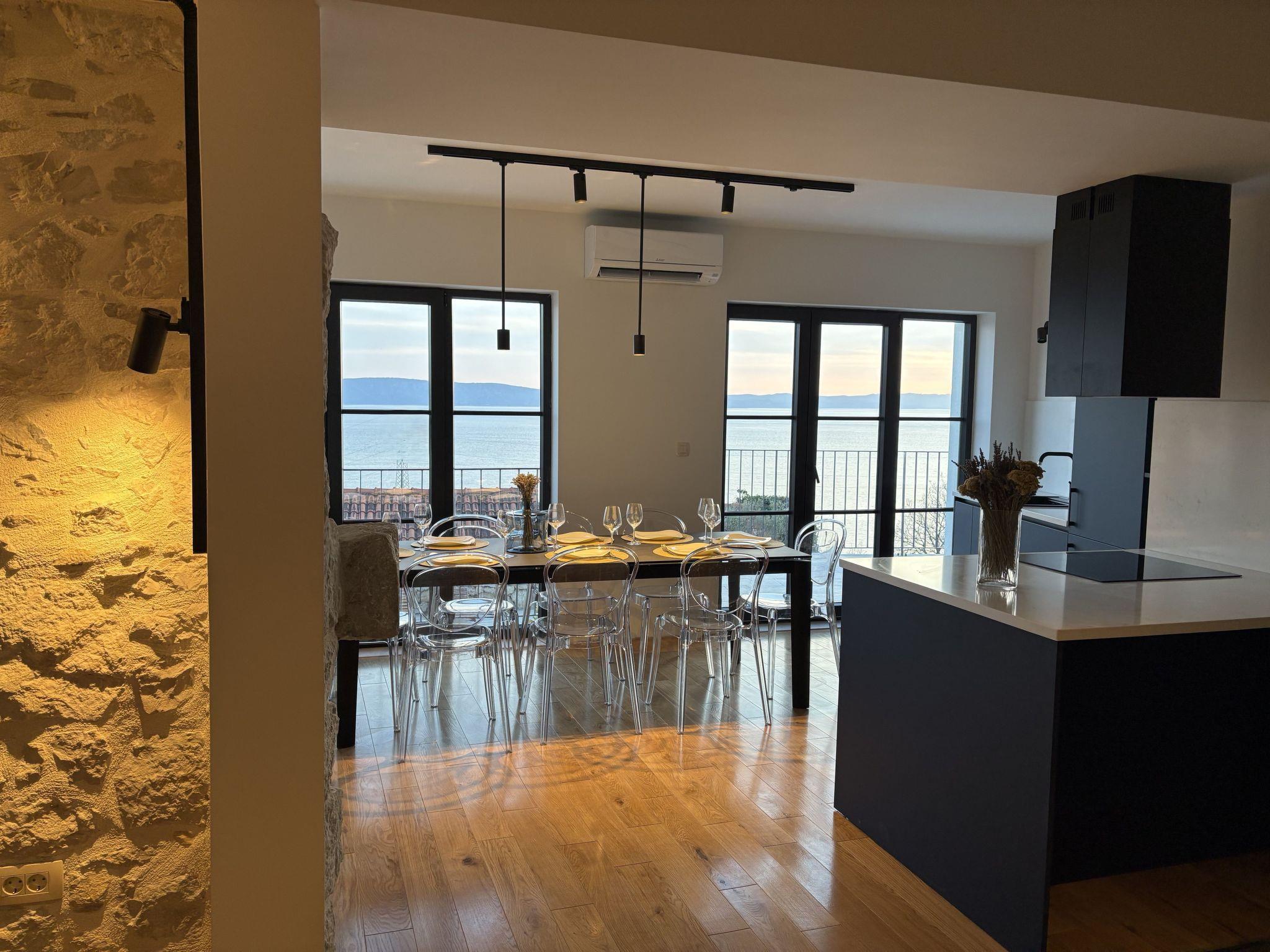 In addition to its location, this beautiful villa offers its guests a holiday in the unforgettable ambience of an old Dalmatian farmhouse, which was renovated in 2025 in a very modern way, respecting the tradition of old Dalmatian architecture. In the villa there are three very modernly equipped bedrooms, each with its own bathroom and toilet, as well as a very modern kitchen, dining area and living room. The rooms have traditional stone walls that create a cosy atmosphere where you can enjoy romantic sunsets with a glass of wine. On the ground floor there are two bedrooms each with its own bathroom, from here you can access the beautiful courtyard with the heated pool and sun loungers and garden with rosemary, laurel and lavender. The third bedroom is located on the top floor and also has its own bathroom and large balcony with beautiful sea views. On the first floor there is a living room with sofa, TV, very modern equipped kitchen and dining area, which leads to a balcony with sea view, which has a barbecue and a table for 8 people.