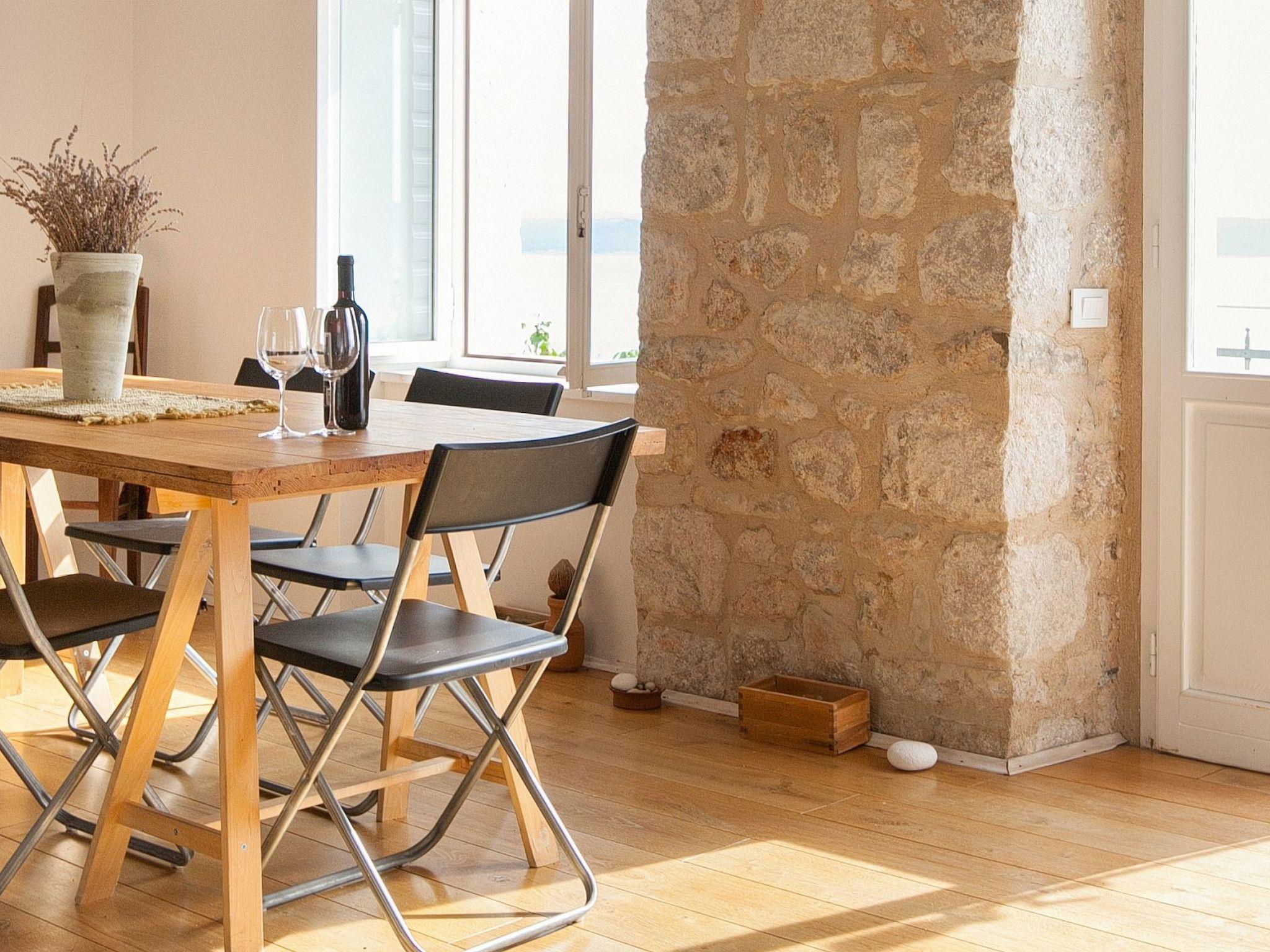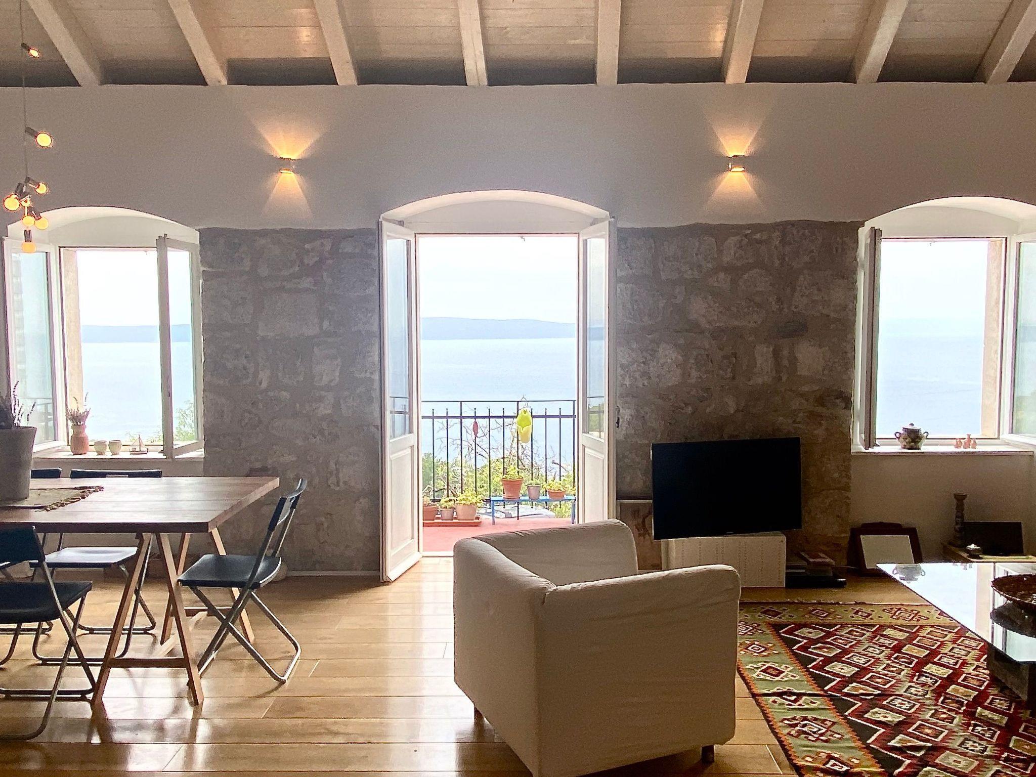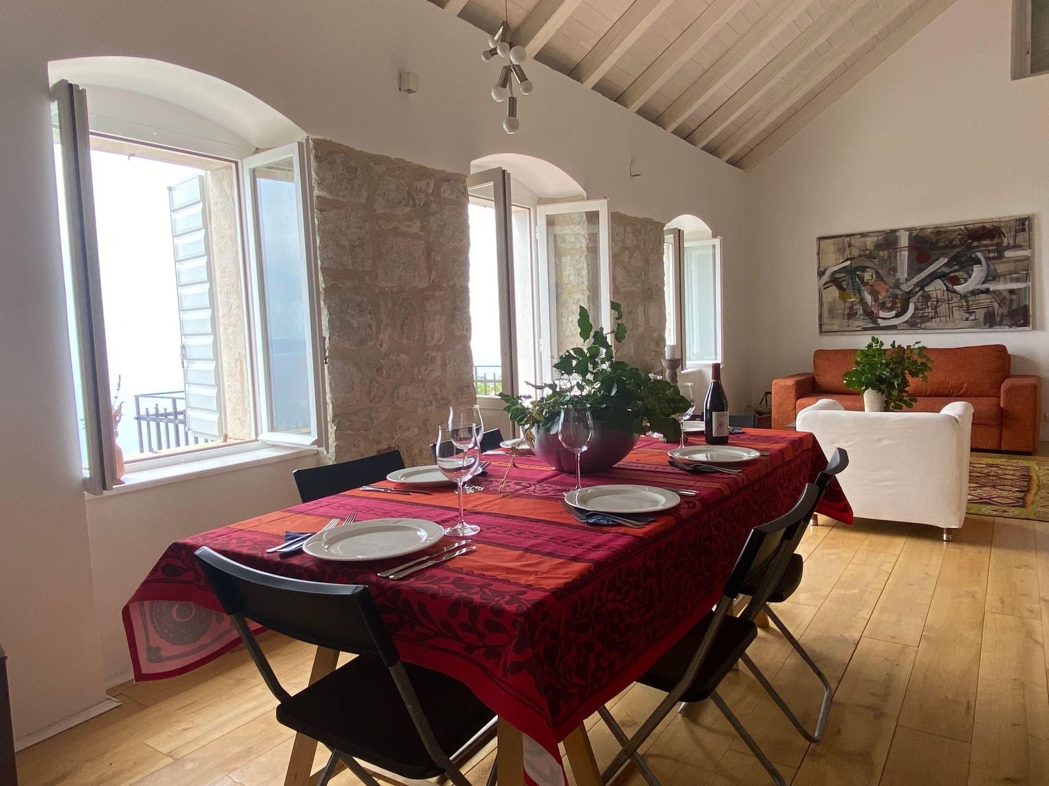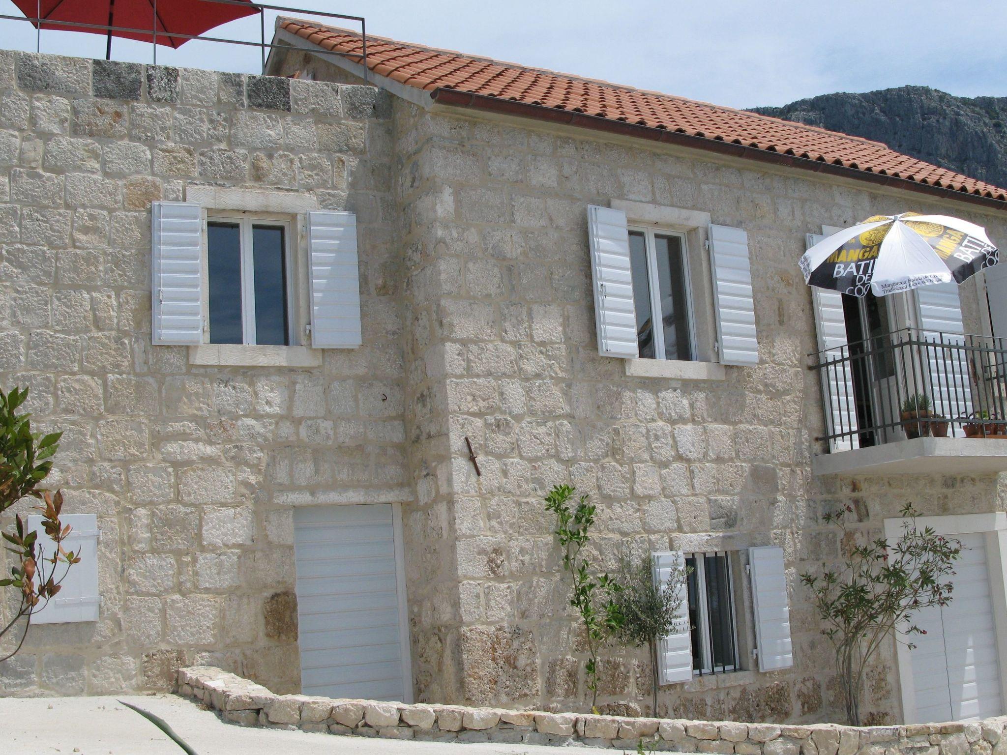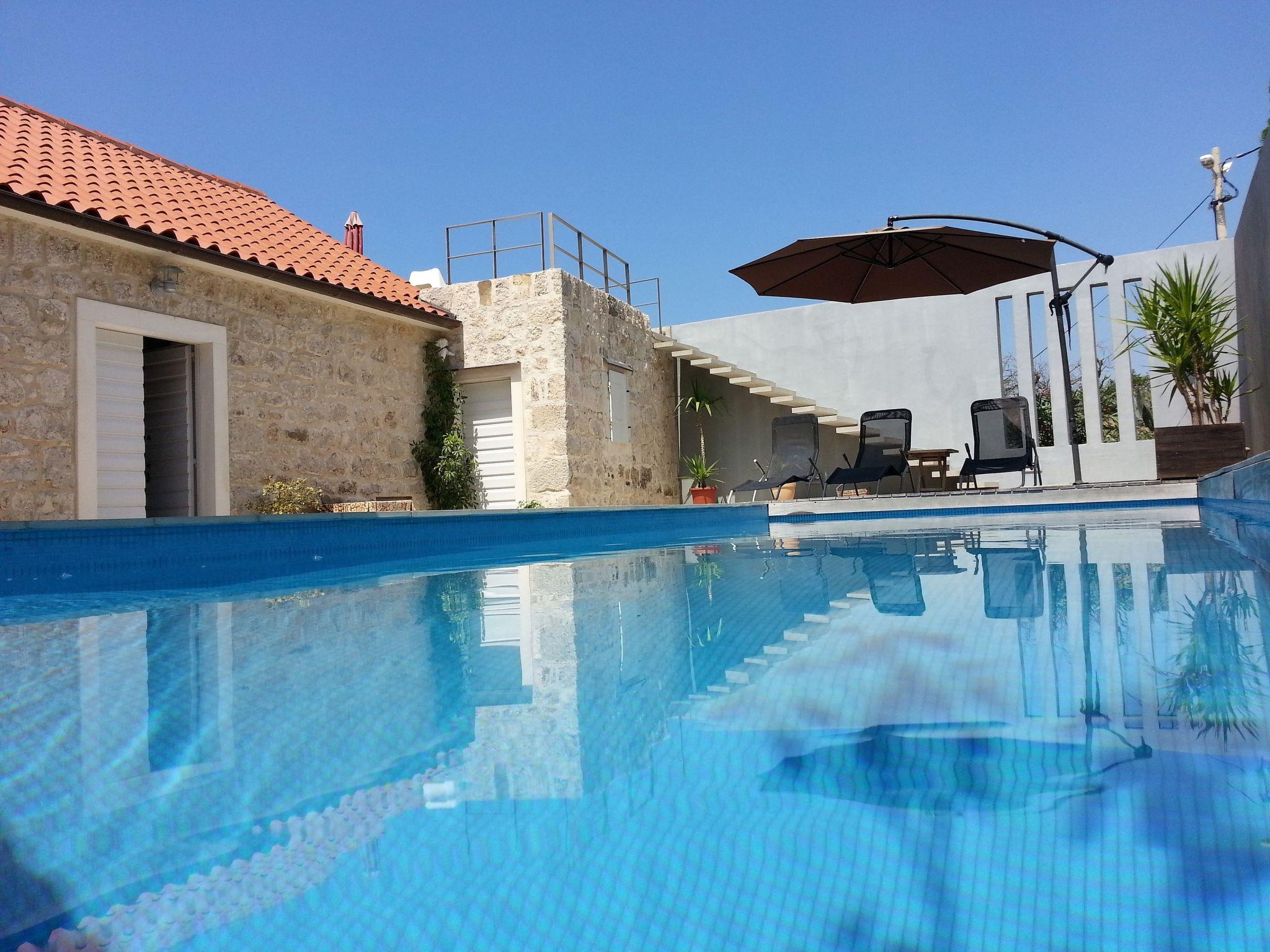 100 year old villa with pool and stunning panoramic viewsThe villa was chosen by British 'Sunday Times' to be amongst 100 most beautiful in Europe. Published in 'Design & Arhitecture'. The Villa Jan which dates from the 1890s, is an ideal location that offers magnificent view of the sea and amazing sunsets. It is located inside the old upper Podgora village but at the same time it is totally secluded, thus guaranteeing absolute privacy to its visitors. This Villa has been designed aiming to offer the ideal accommodation solution to people who set high standards with respect to their vacations, people who wish to combine relaxation at an idyllic spot with adventure as well as comfort with luxury. It is definitely not for those who seek to enjoy the intensity of night life, to mingle in the noisy swarm of tourists and to visit luxurious shops, and night clubs . This Villa will take you on a journey to discover the unspoiled Dalmatian landscape, to discover enchanting secluded beaches, to get to know its people and to charge your batteries and to find relaxation and serenity in nature The architects used dominant design elements such as-stone, wood and iron, strong and dynamic materials that have given a distinctive aspect and character to the building allowing for an exceptional architectural design,-- the light that gives an outdoor aspect inside the house through spectacular openings and offers magnificent view of the pool, the garden and the sea; the sound of the water creates a sensation of serenity and relaxation by itself; at the same time, it offers continuity in the view of the sea and the horizon.-- Together with the terrace with stunning view of islands Bra, Hvar and Pelješac; the veranda, the patio and the pool, the Villa has something from the aura of a Roman mansion that stands still in absolute harmony. Behind the property, is the 8m x 3m swimming pool with roman steps,shower and sunbeds; at one end is wooden decking with outdoor chairs and steps that go up to an upper terrace with panoramic views, at the other end is another terrace with a barbecue plus dining table and chairs for outdoor dining