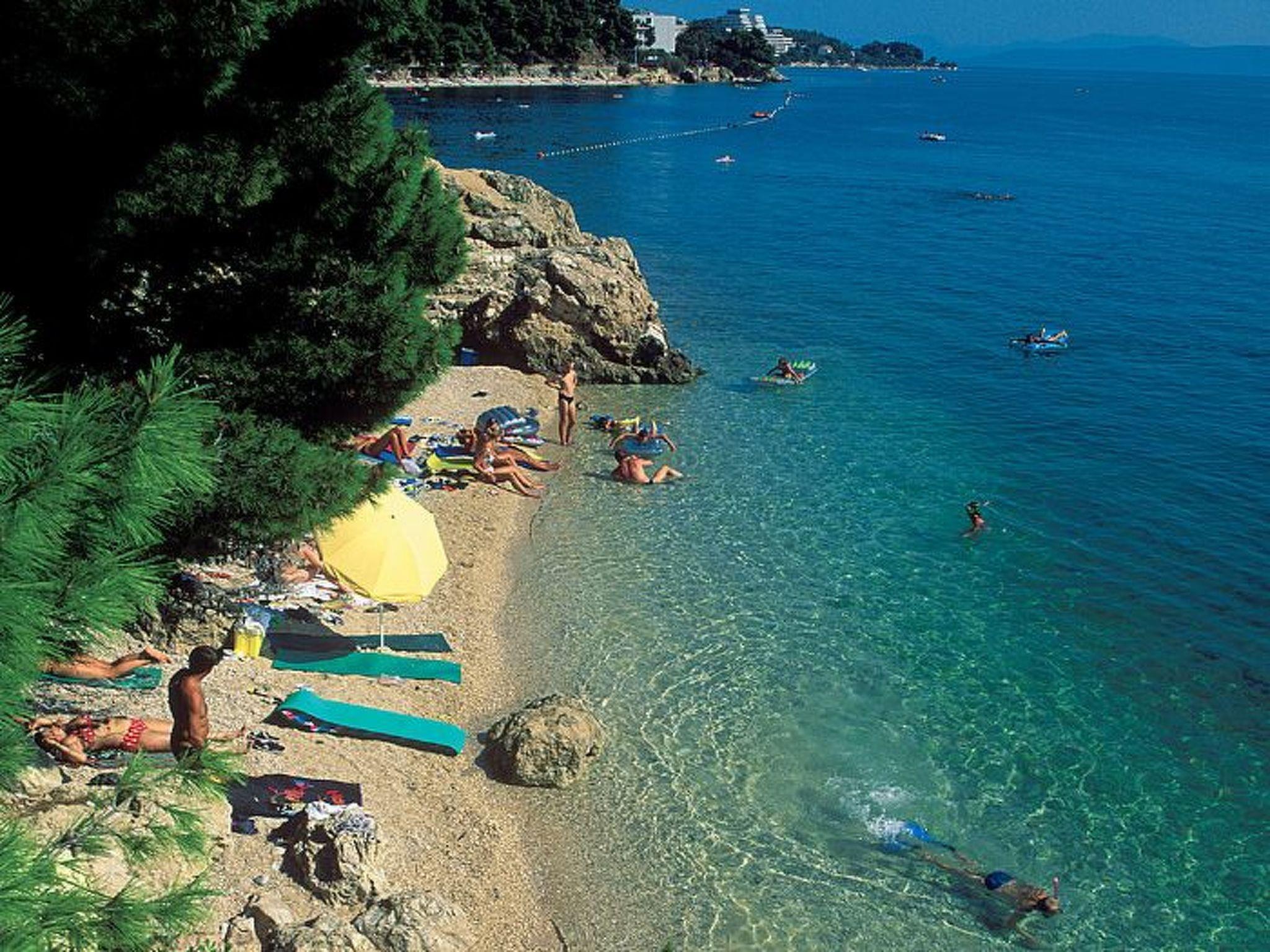 The renting house with apartments is situated above the family host house, and both houses together between two roads: upper is main road (Adriatic road), down bellow is local road. When you come down to the road, you have only 50-100 meters to the first beach (and supermarket, as there is also the center of the place, bus station, taxi station etc.). On the upper road there is 100 meters distanced intercity line bus station so you can easily come from Split's airport by intercity bus line.