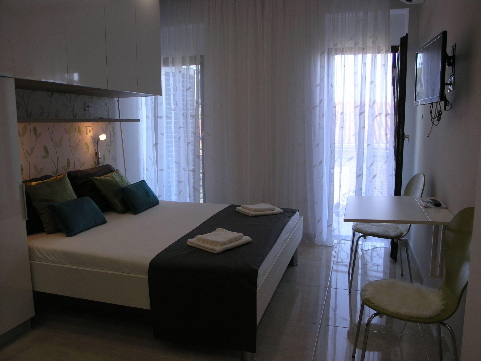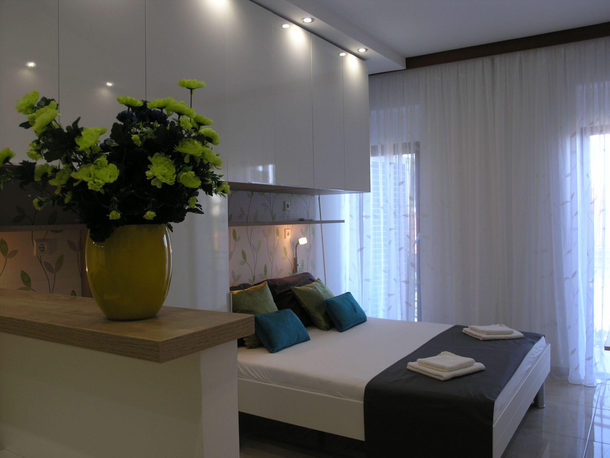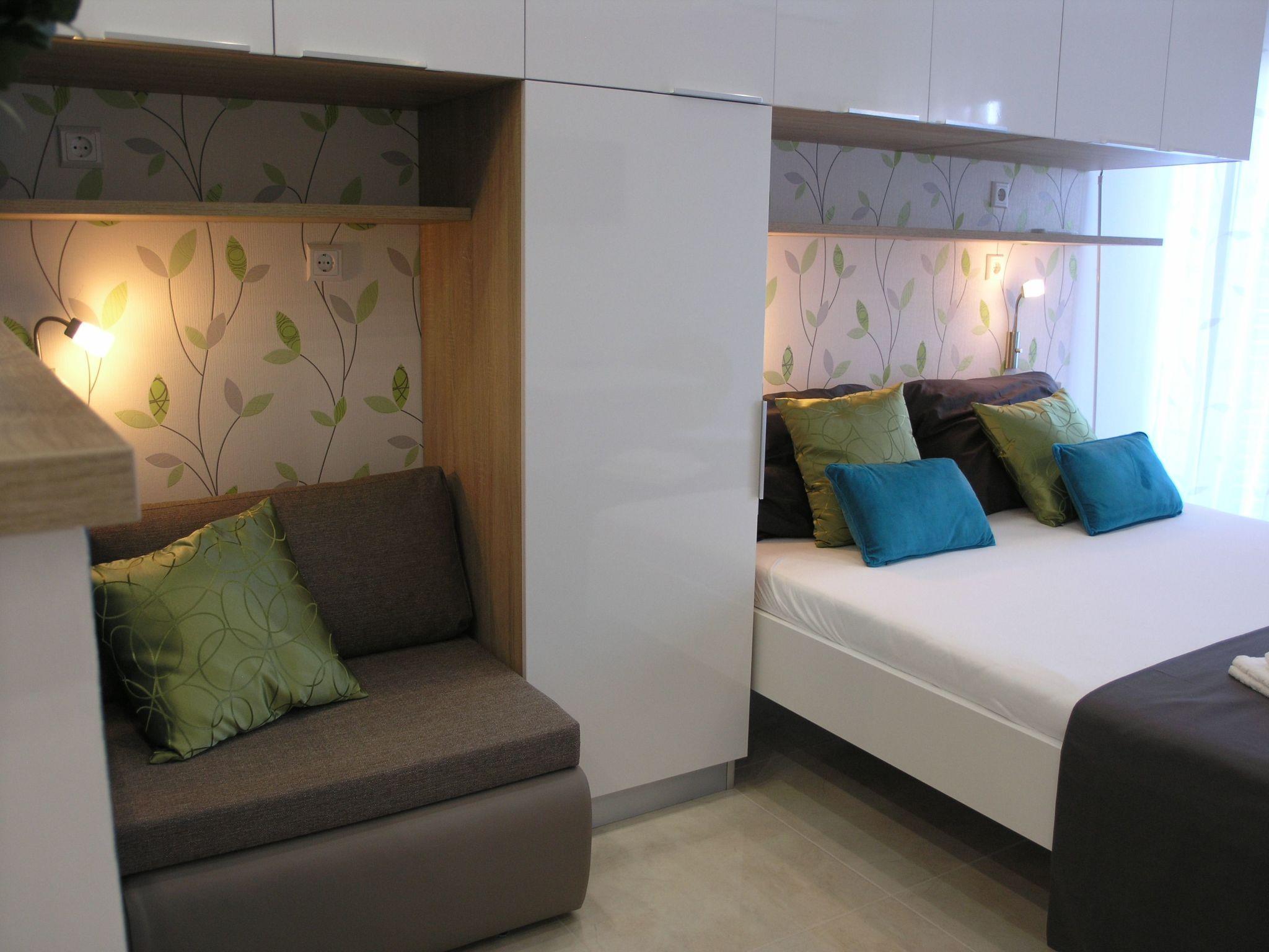 Brand new renovated studio apartment for 2+1. New kitchen has a big fridge with three deep freeze drawers, oven, induction cooker with 4 rings and a lot of space for passionate cooks. You have toaster, coffe and tea pot and most kitchen accessories for cooking. You have air-condition, flat TV with satelite programs as wel as local programs. In the bathroom you have a hair dryer. From the balcony is a beautiful view to sea, mountain Biokovo and Podgora.