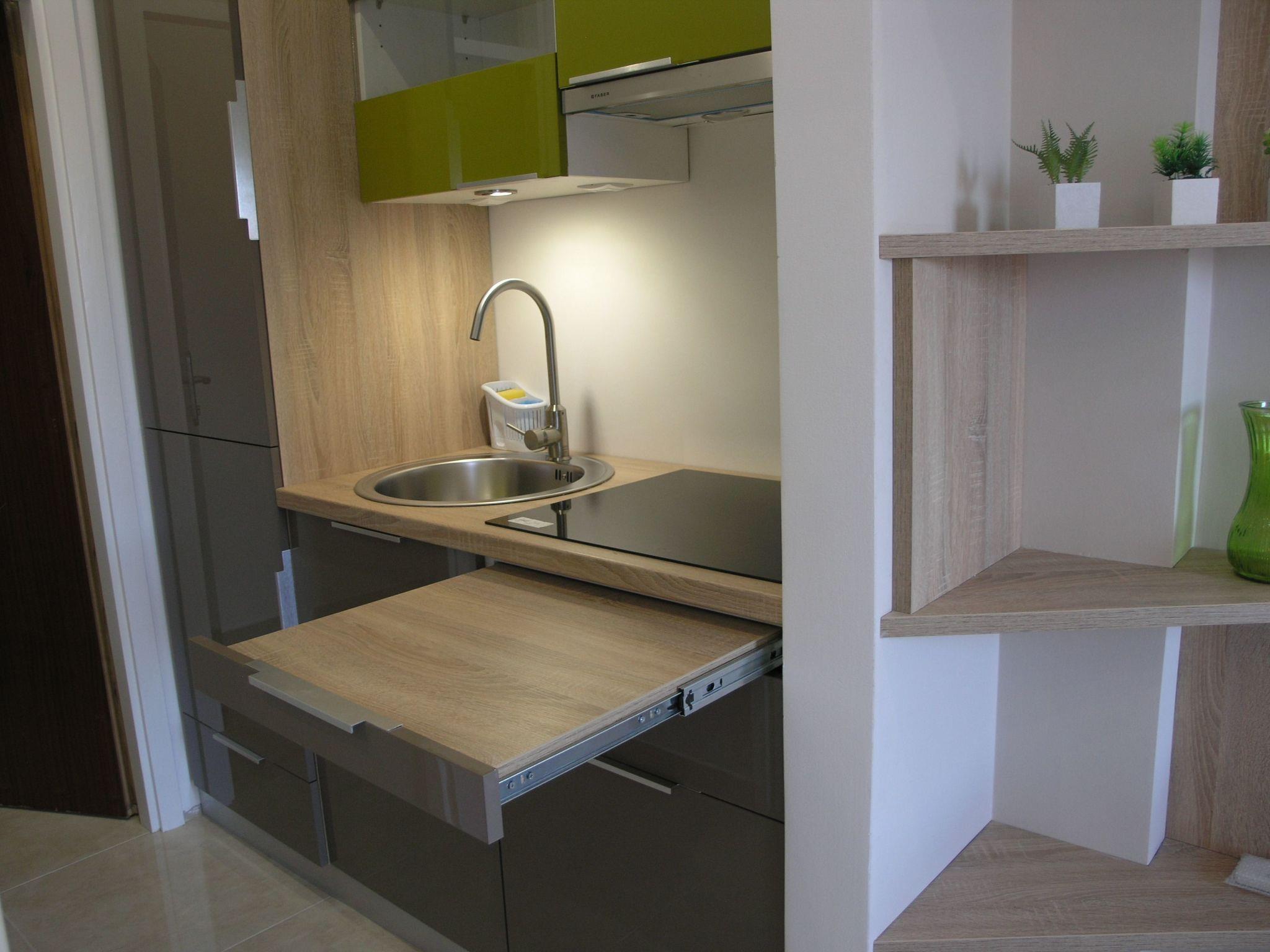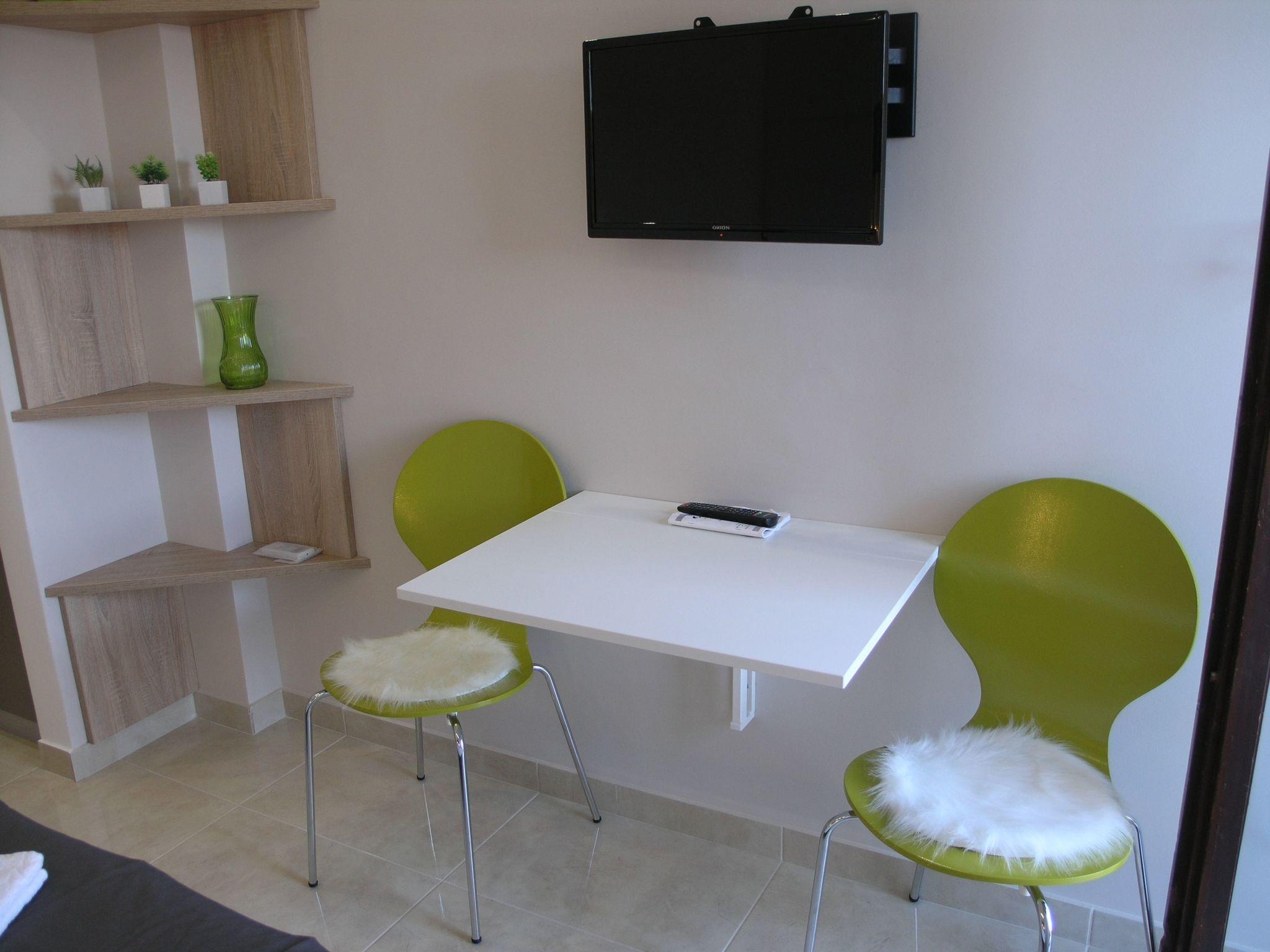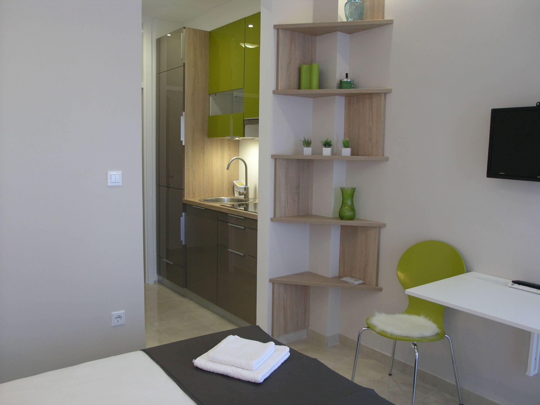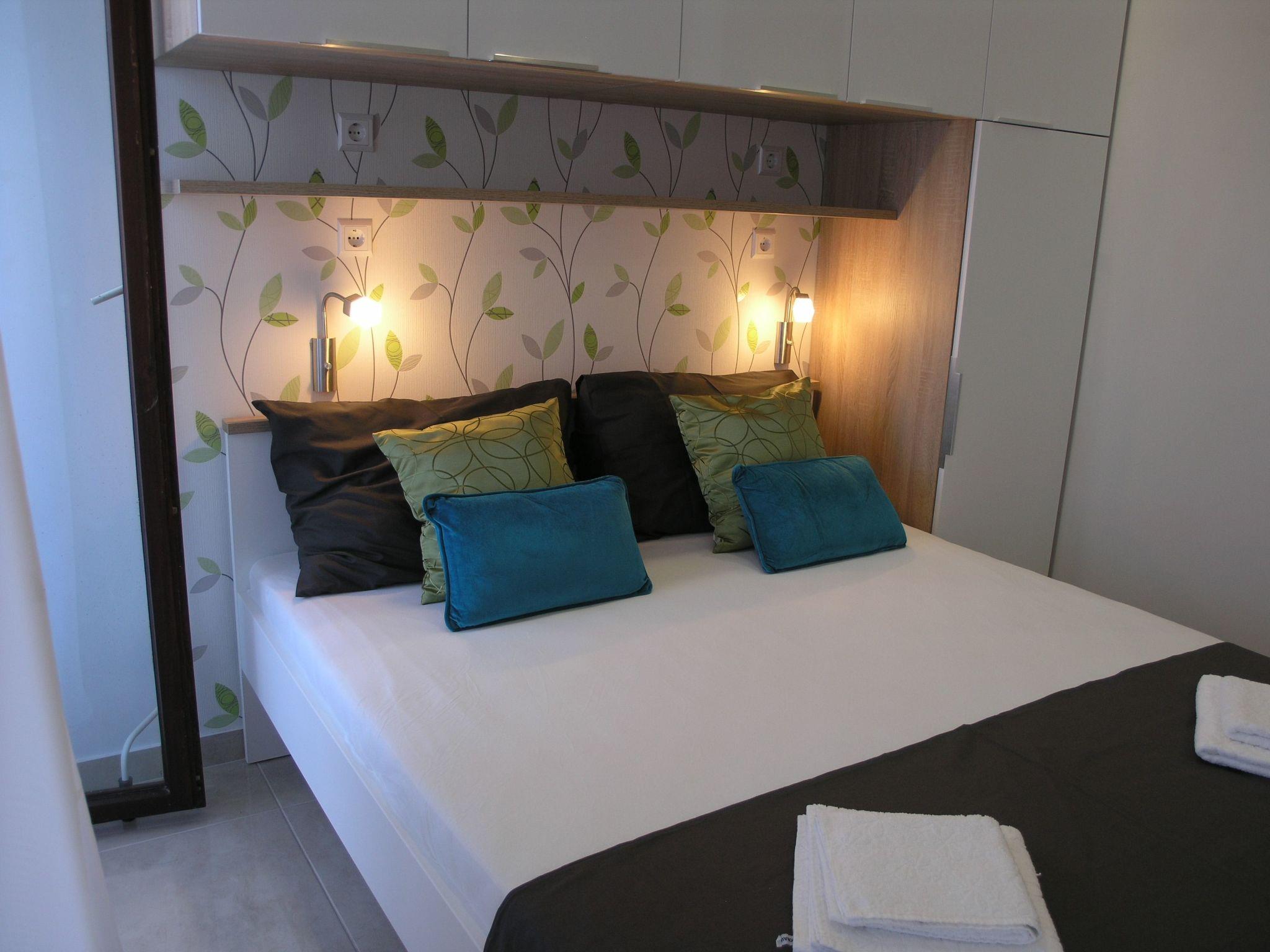 Brand new renovated studio apartment for 2+1. New kitchen has a big fridge with three deep freeze drawers, oven, induction cooker with 4 rings and a lot of space for passionate cooks. You have toaster, coffe and tea pot and all kitchen accessories for cooking. You have air-condition, flat TV with satelite programs as wel as local programs. In the bathroom you have a hair dryer. From the balcony is a beautiful view to sea, mountain Biokovo and Podgora.