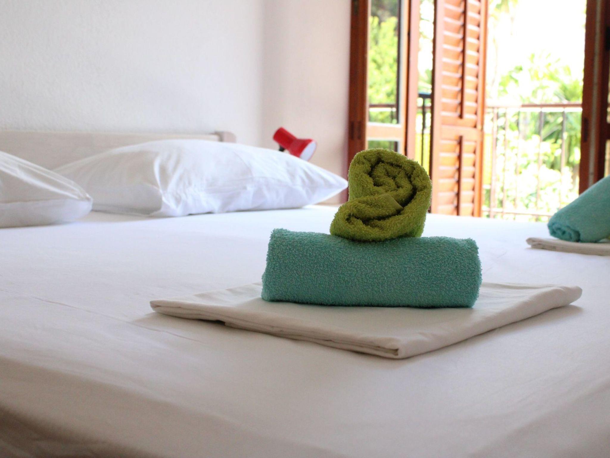 The fully air-conditioned (cool/warm) holiday apartment is on the second floor of the three-storey building. It consists of a living and dining room with an integrated, open kitchen, a bedroom and a daylight bathroom. The living room provides a comfortable sofa, a wide digital flatscreen TV with a satellite receiver and a USB port, and a dining table with four chairs. The kitchen next to it is equipped with a four-zone gas stove with a stainless steel cooker hood, an electric oven, a fridge with a freezer compartment, a kettle and plenty of crockery and cutlery. The bedroom is furnished with a double bed, bedside tables with reading lamps and a cupboard with plenty of storage space for your clothing and luggage. The sofa in the living room can be converted into an additional double bed for two further people. The bathroom has a shower cubicle, a washbasin with a wall mirror and a toilet. A cot can be provided on request. Plenty of bed linen and towels are provided and you can use the reliable wireless Internet connection in the apartment free of charge.