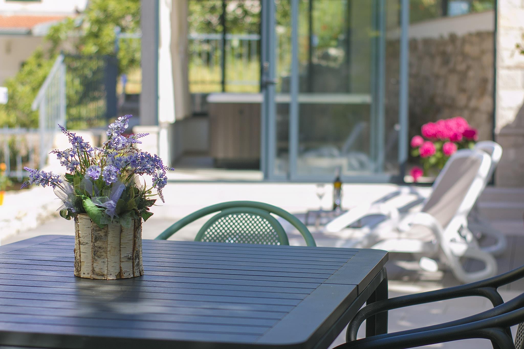 Dette moderne renoverede traditionelle stenhus er beliggende i Øvre Podgora, lille landsby på bjergsiden af bjerg Biokovo med en smuk panoramaudsigt over øerne og havet. På stueetagen er der parkering og "gammelt røget køkken" heks er almindeligt for stenhuse . Der er åben grill og opholdsstue, hvor du kan nyde rigtig smag af Dalmatien. På første sal er åbent køkken fuldt udstyret med stue / spisestue. To soveværelser og badeværelse er beliggende på anden sal og på den lille mezzanine er soveværelse med badeværelse og flot udsigt terrasse. Upper Podgora er kun tre km fra kysten og Makarska riviera heks er fuld af fine strande restauranter og caféer. Nærheden af byen Makarska (9 km) samt naturparken Biokovo og Cetina-kløften kan tilbyde et bredt udvalg af underholdning, sportsaktiviteter og turmuligheder i regionen.