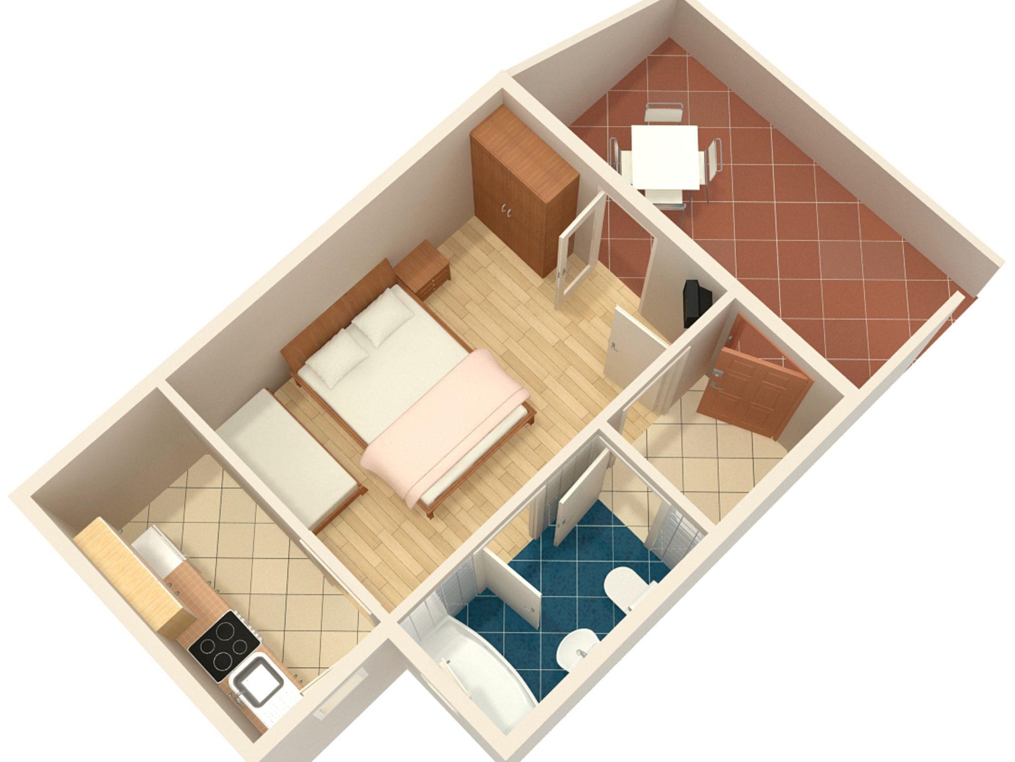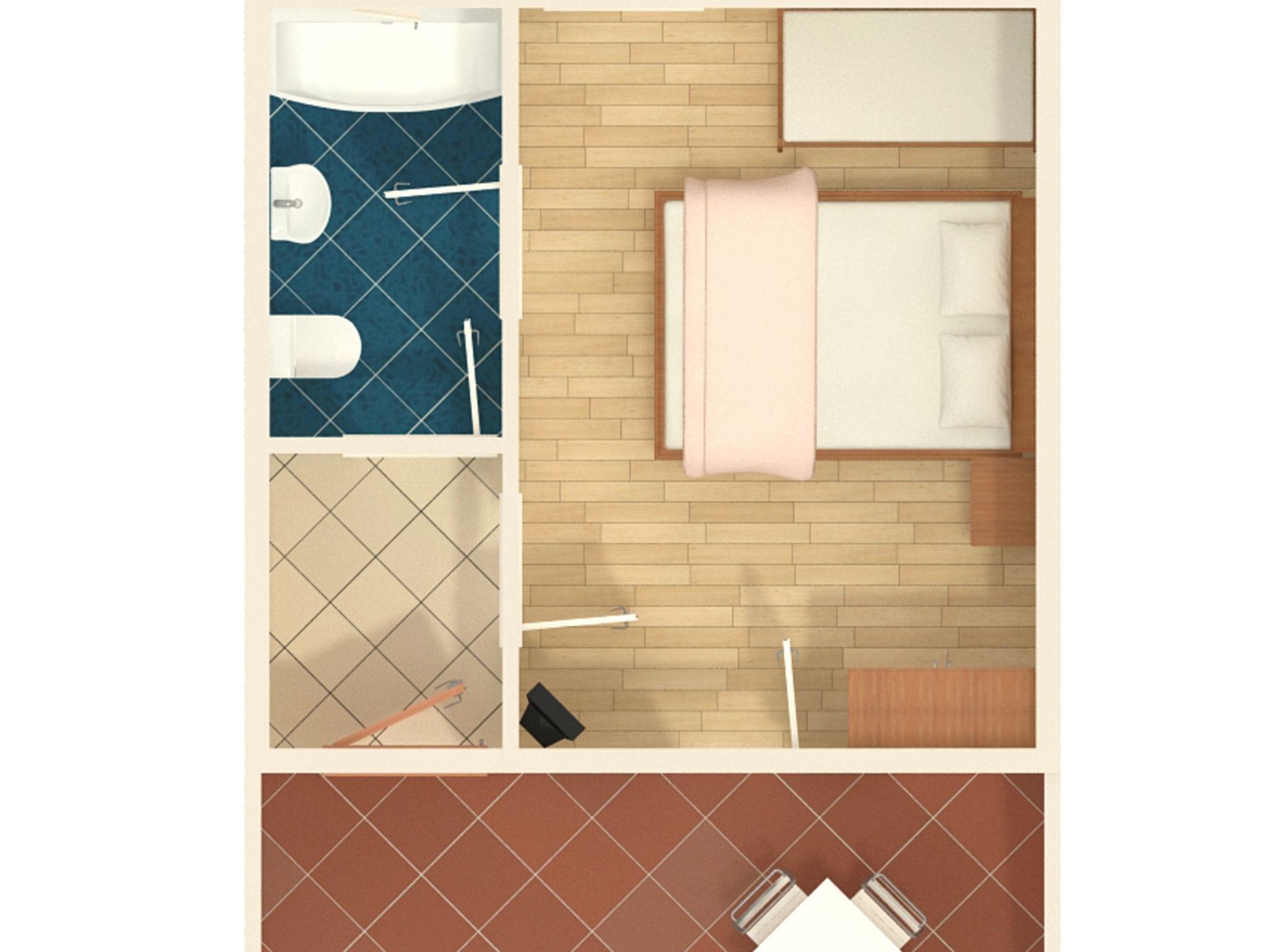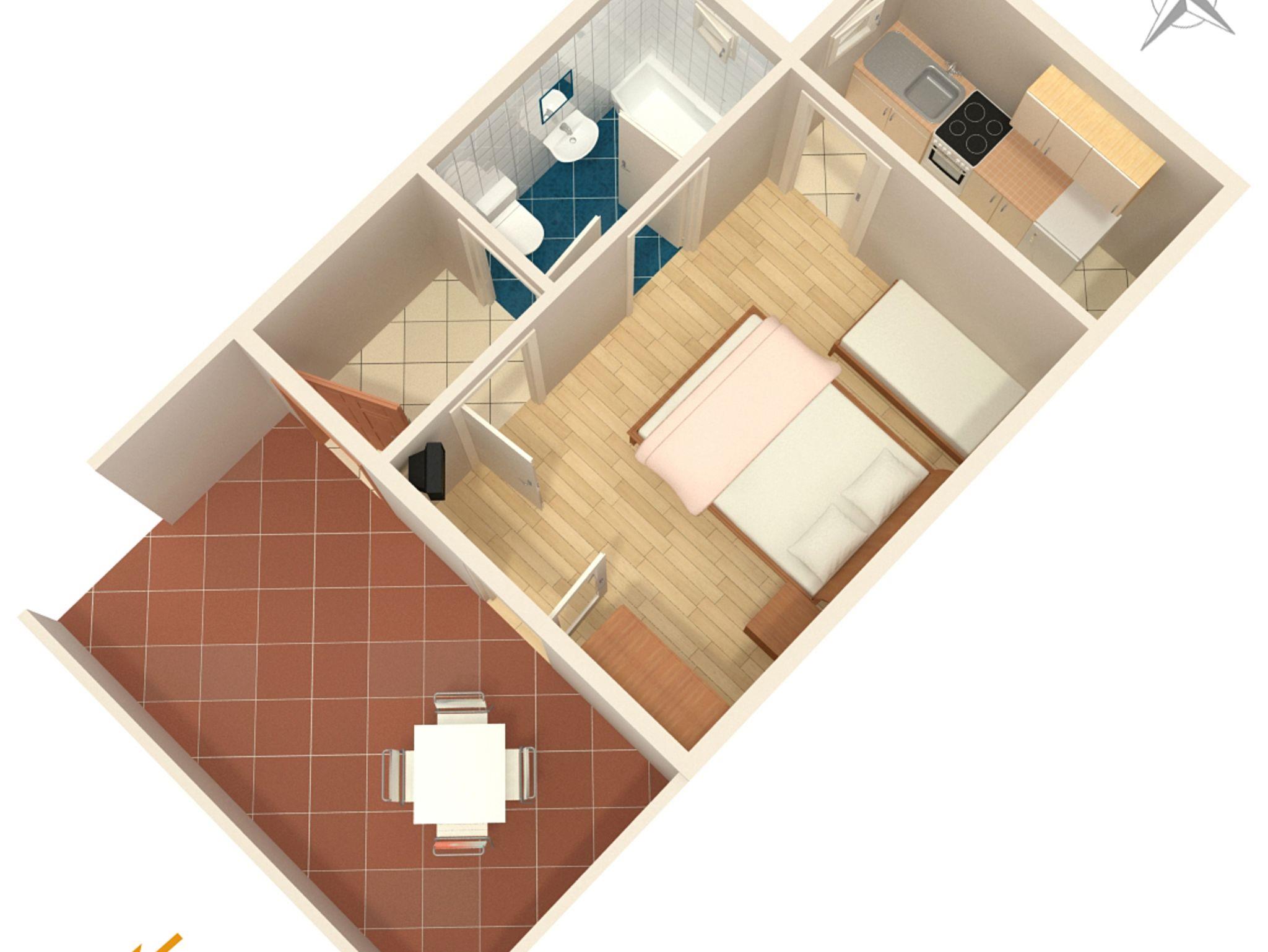 Studio bietet Platz für 3 Gäste. Die Betten sind in Schlafzimmern, die es 1 gibt, innerhalb einer Gesamtfläche von 23m2, angeordnet. Die Gäste haben eine eigene Terrasse zur Verfügung, auf der sie in warmen Sommernächten genießen können. Das Studio-Apartment bietet Meerblick. IM PREIS INBEGRIFFEN: Kurtaxe, Endreinigung, Klimatisierung, Parkplatz, Internet, Föhn. VERBINDLICHE ZUSÄTZLICHE KOSTEN: Aufzahlung für Kurzaufenthalte (prozentualer Zuschlag pro Nächtigungsanzahl: 30% - 1, 20% - 2, 10% - 3). Die Verfügbarkeit zusätzlicher Dienstleistungen in Ihrem reservierten Termin und die Preise derselben (falls nicht aufgeführt) müssen im Voraus überprüft werden. Zusätzliche Dienstleistungen die in der Zahlungsaufforderung nicht aufgeführt sind werden direkt beim Vermieter bezahlt, angenommen der Gast nutzt auch diese.