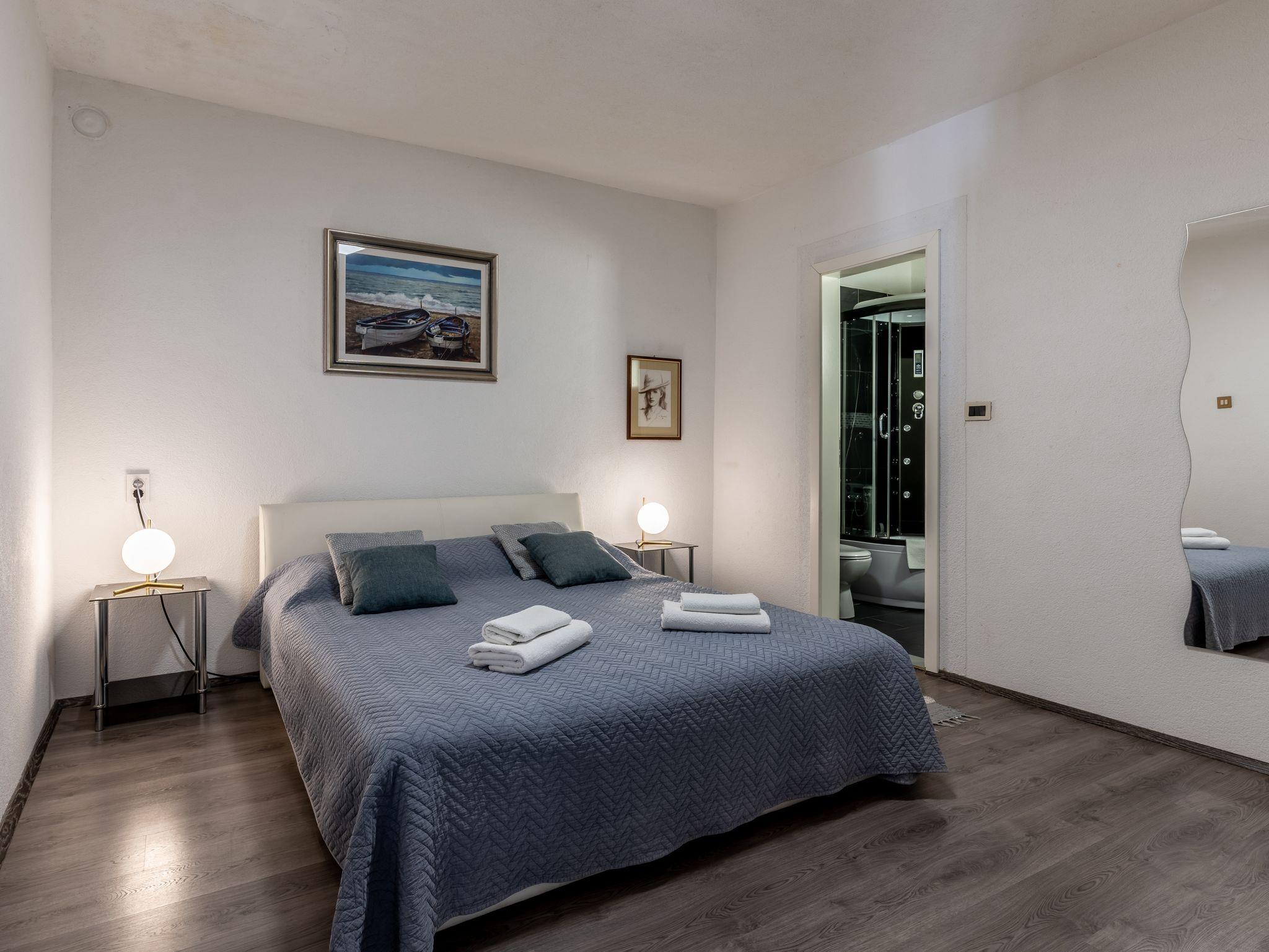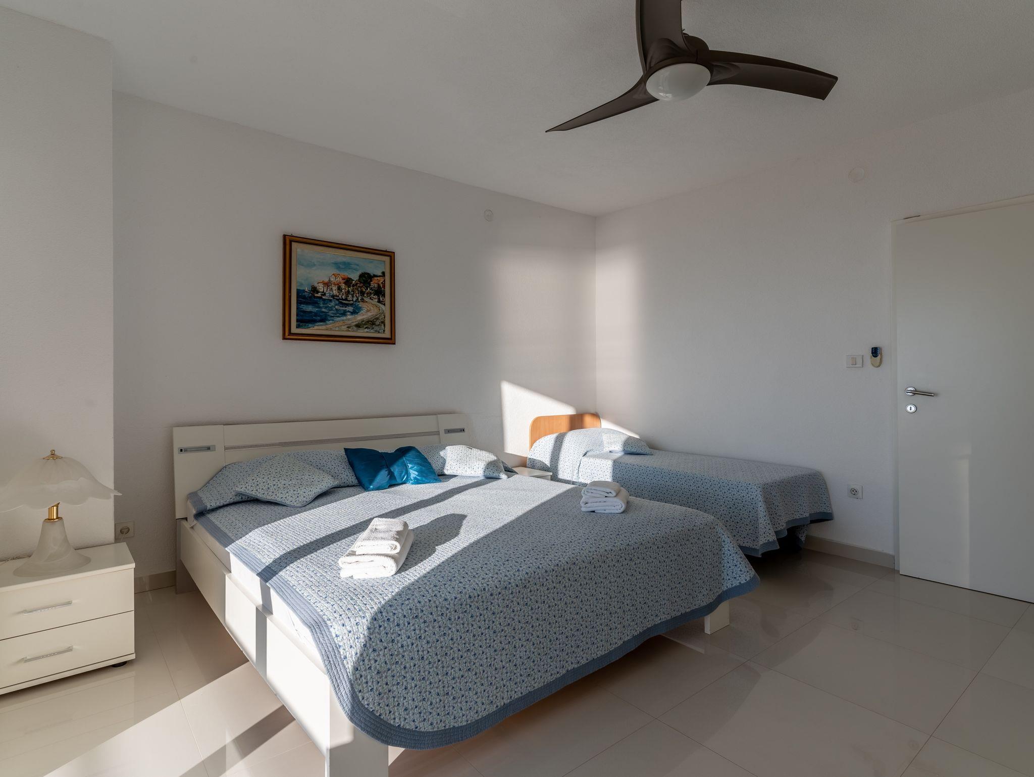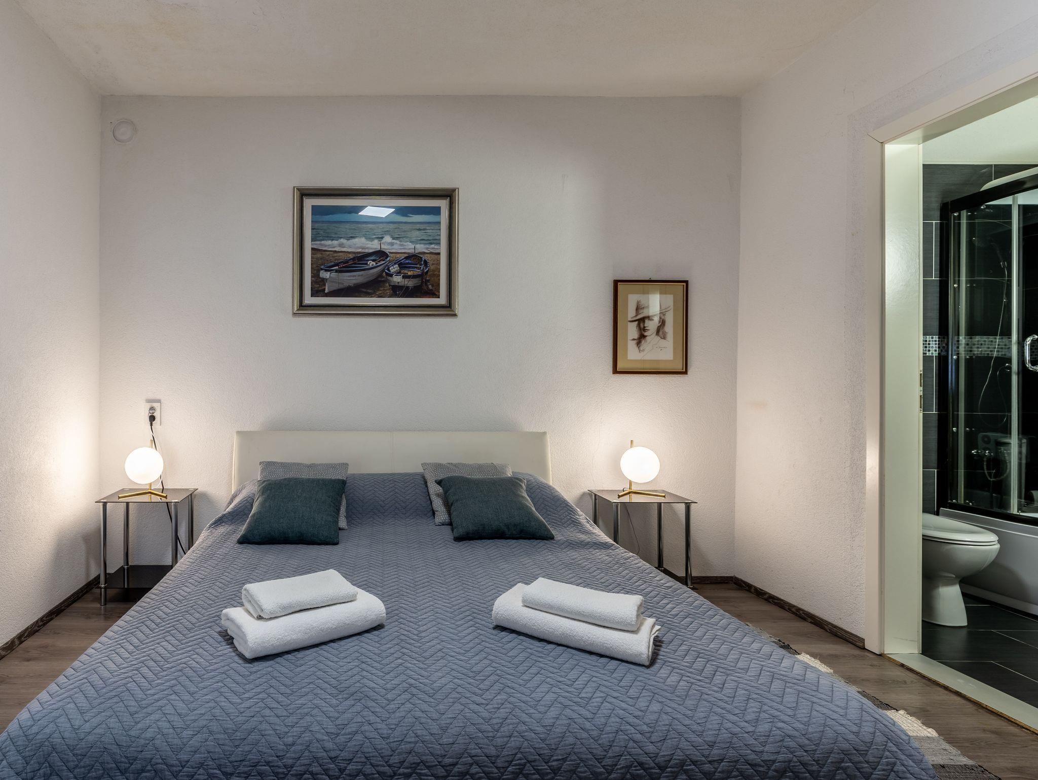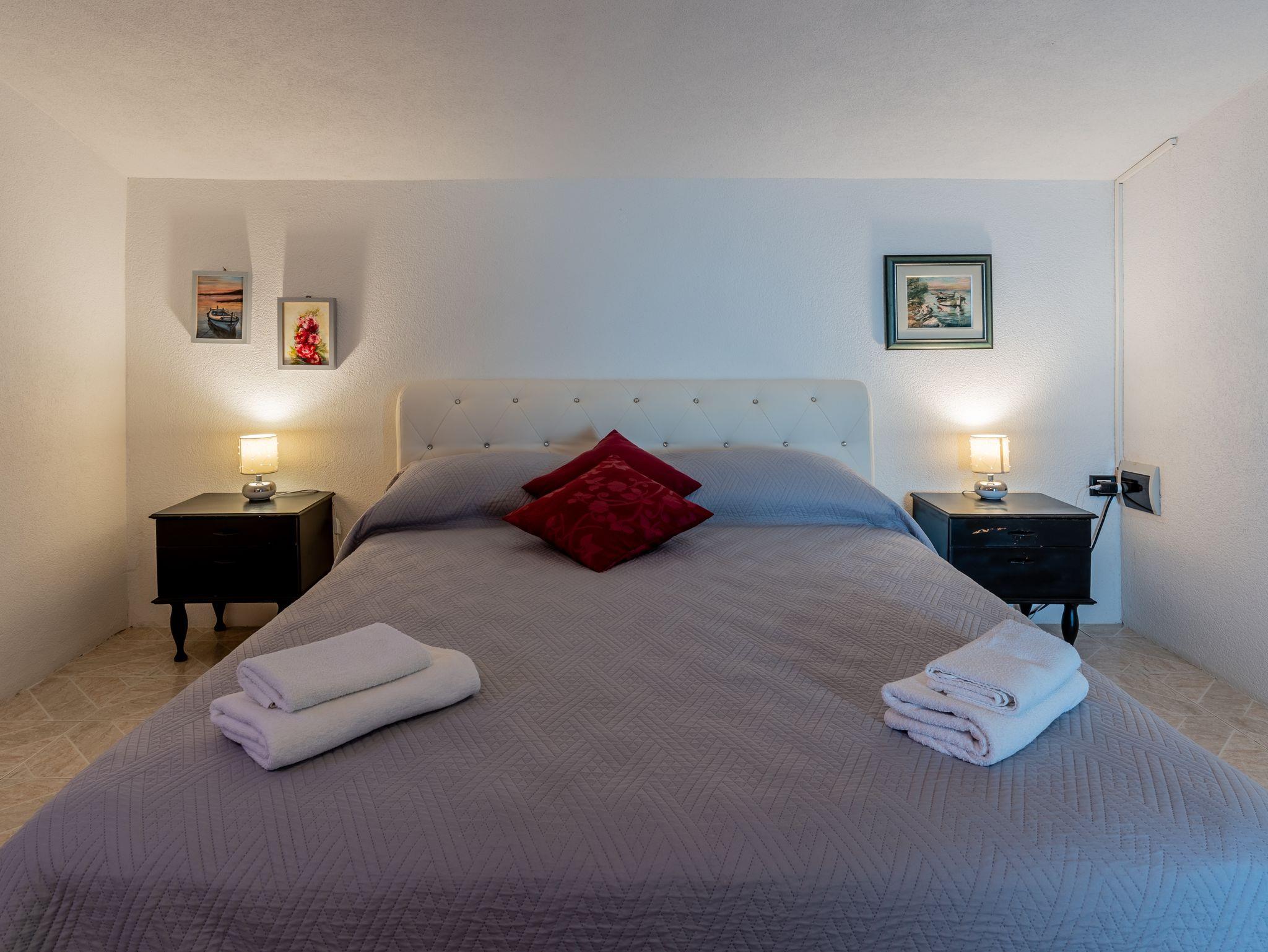 Haus bietet Platz für 12 Gäste. Die Betten sind in Schlafzimmern, die es 6 gibt, innerhalb einer Gesamtfläche von 182m2, angeordnet. Die Gäste haben eine eigene Terrasse zur Verfügung, auf der sie in warmen Sommernächten genießen können. Das Haus bietet Meerblick. Für vollen Genuss und Entspannung gibt es einen privaten Grill für Gäste dieser Unterkunft. Während ihres Aufenthalts können sich Gäste im privaten Schwimmbad entspannen. IM PREIS INBEGRIFFEN: Kurtaxe, Endreinigung, Klimatisierung, Pool, Parkplatz, Internet, Kinderbett, Bügeleisen, Bügelbrett, Föhn. Die Verfügbarkeit zusätzlicher Dienstleistungen in Ihrem reservierten Termin und die Preise derselben (falls nicht aufgeführt) müssen im Voraus überprüft werden. Zusätzliche Dienstleistungen die in der Zahlungsaufforderung nicht aufgeführt sind werden direkt beim Vermieter bezahlt, angenommen der Gast nutzt auch diese.